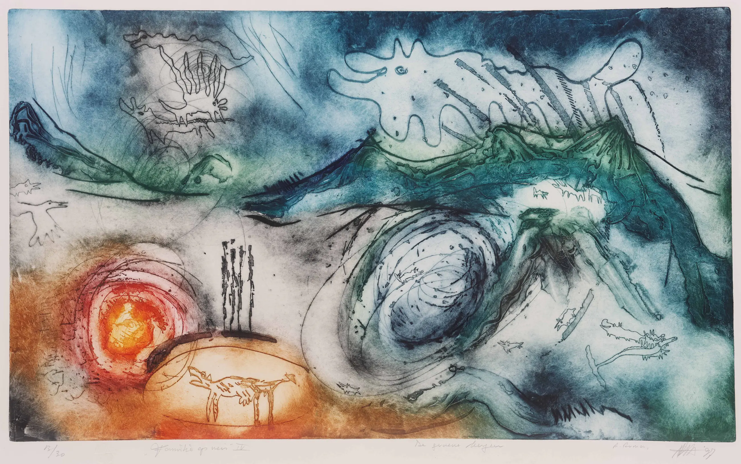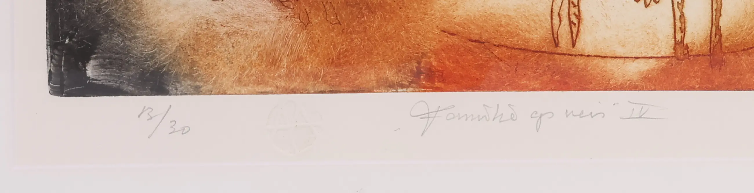 Dit is een zeefdruk van Ad Arma, een veelzijdig kunstenaar die zich voor zijn werk graag onderdompelt in de sfeer en stilte van de nacht. Zijn oeuvre is breed en omvat grafisch werk, bronzen sculpturen, gouaches, schilderijen, keramiek en glaskunst. In al zijn werk klinkt de overtuiging door dat alles met elkaar samenhangt en één geheel vormt. Een ‘Ad Arma’ is dan ook direct herkenbaar door zijn unieke stijl.