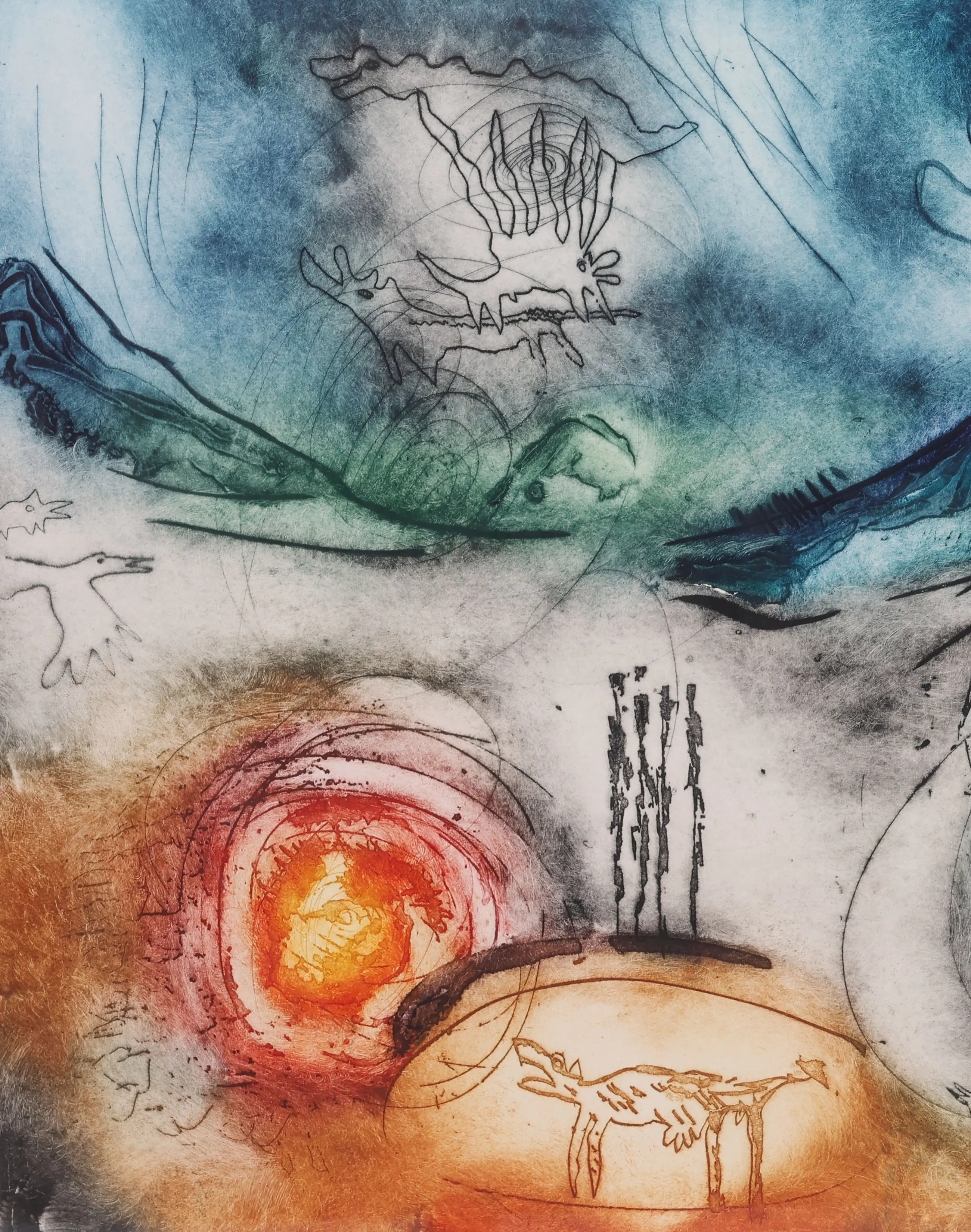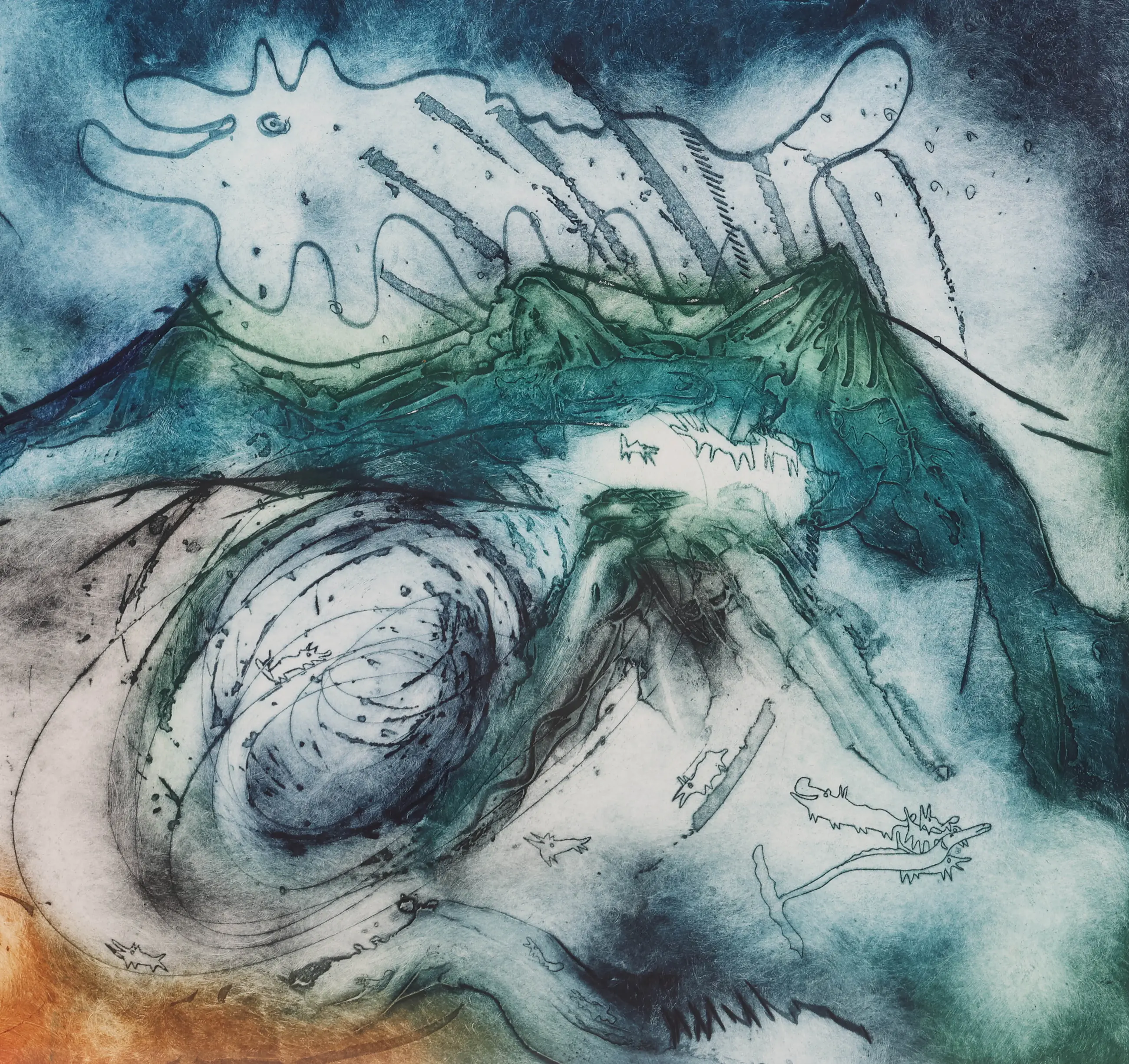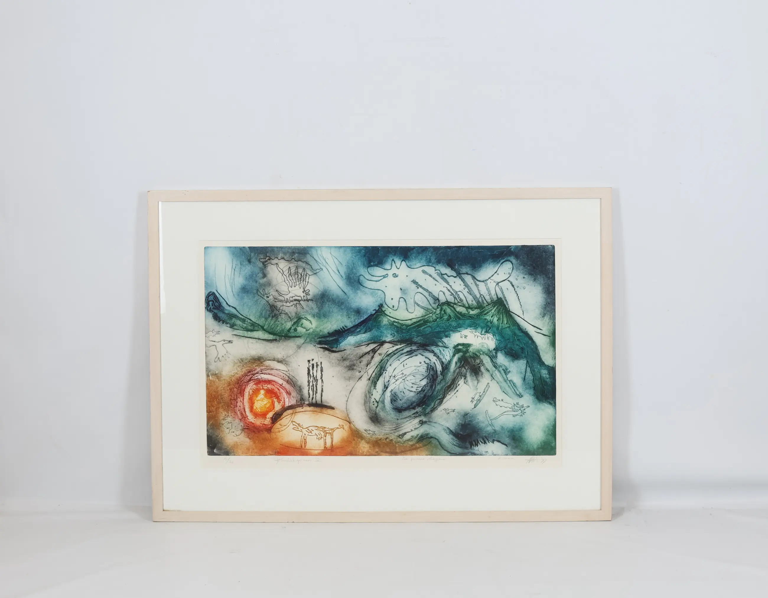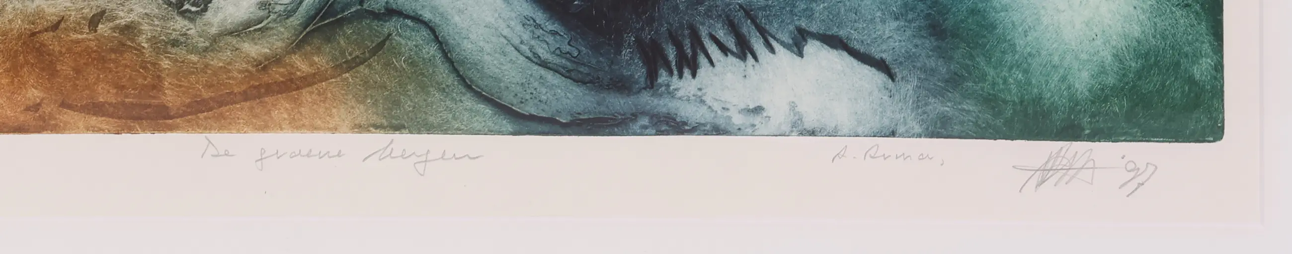Deze zeefdruk van Ad Arma (1954) is rechtsonder gesigneerd. Ad Arma heeft in de loop der jaren een indrukwekkend oeuvre opgebouwd met talloze tentoonstellingen en projecten, en is daarin nog altijd actief. Hij is een veelgevraagd exposant in galerieën en wordt algemeen erkend als een van de toonaangevende kunstenaars van Nederland. In 2007 werd hij uitgeroepen tot Kunstenaar van het Jaar en in 2021 ontving hij de titel Briljanten Kunstenaar van het Jaar. Ook internationaal geniet hij grote bekendheid en is zijn werk op vele locaties te zien. Ad Arma werkt in uiteenlopende disciplines, waaronder grafiek, bronzen sculpturen, gouaches, schilderkunst, keramiek en glaskunst. Centraal in zijn werk staat vaak de gedachte dat alles met elkaar verbonden is.