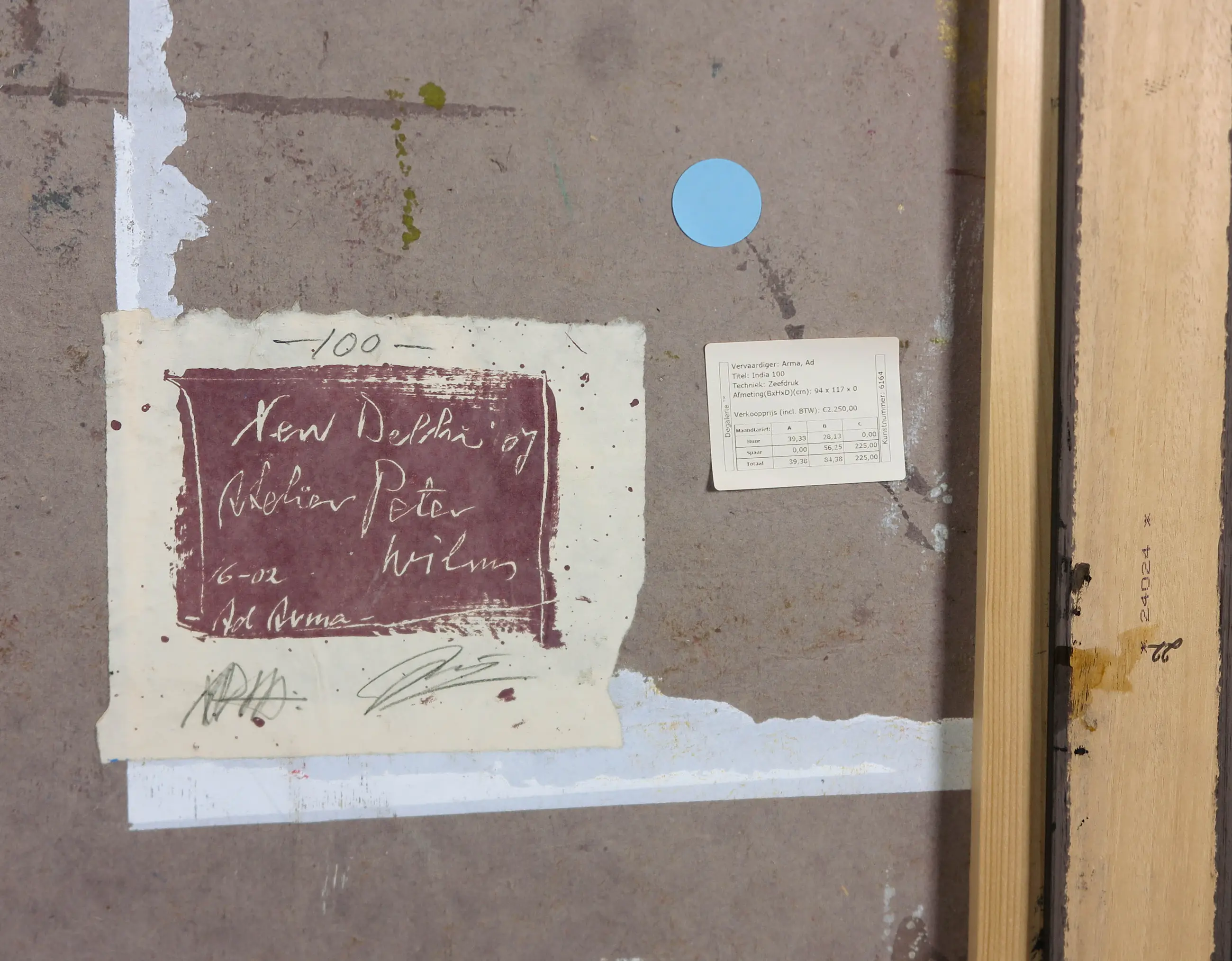 Passe-partout/lijsten: Beschadigingen aan lijsten worden niet beschreven. Indien een werk achter glas is ingelijst en het glas gebroken is, zal dit wel vermeld worden. Passe-partouts worden op geen enkele manier gegarandeerd en ook niet altijd meegezonden.