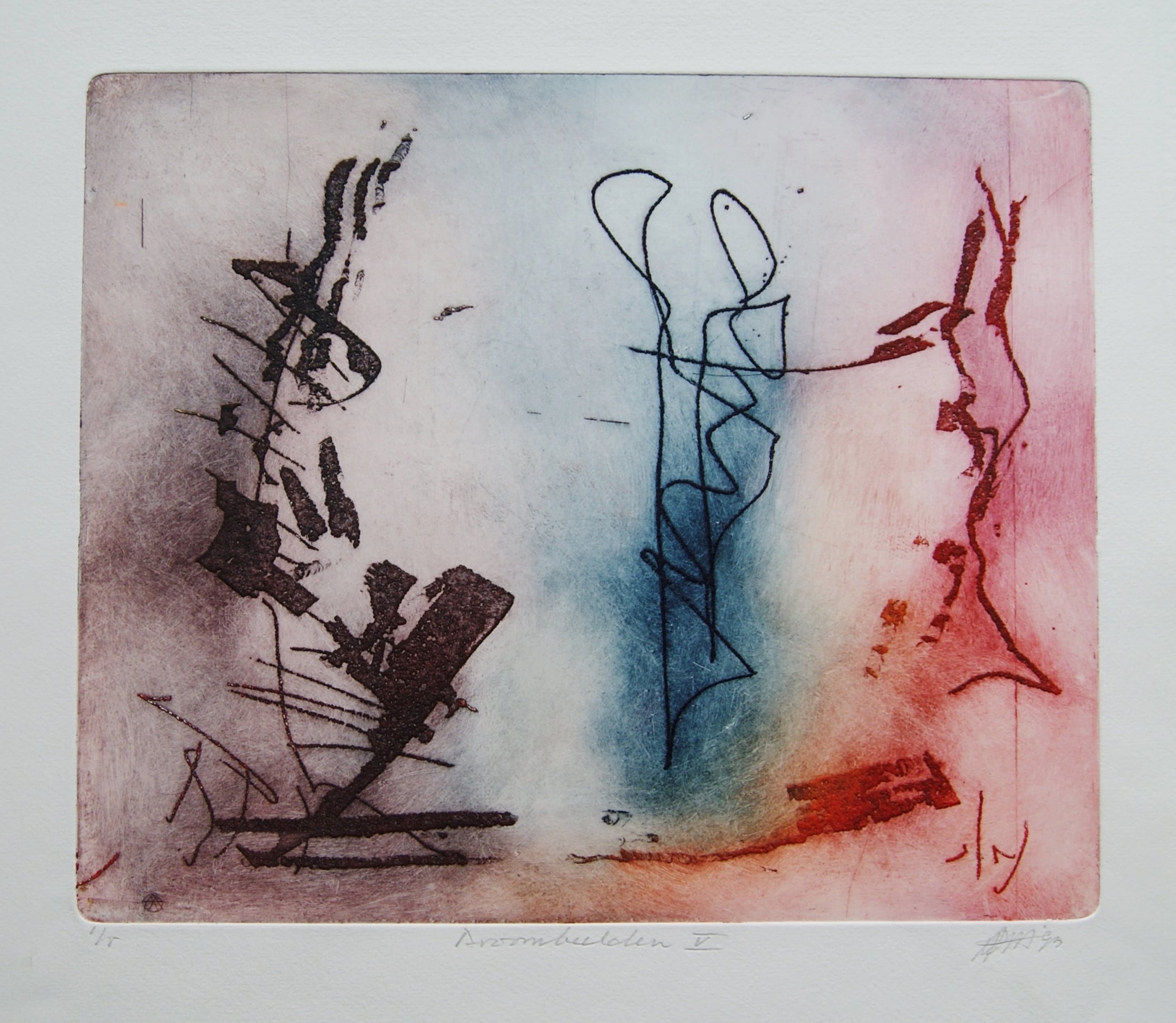 Fraaie kleuren ets van Ad Arma uit 1993.