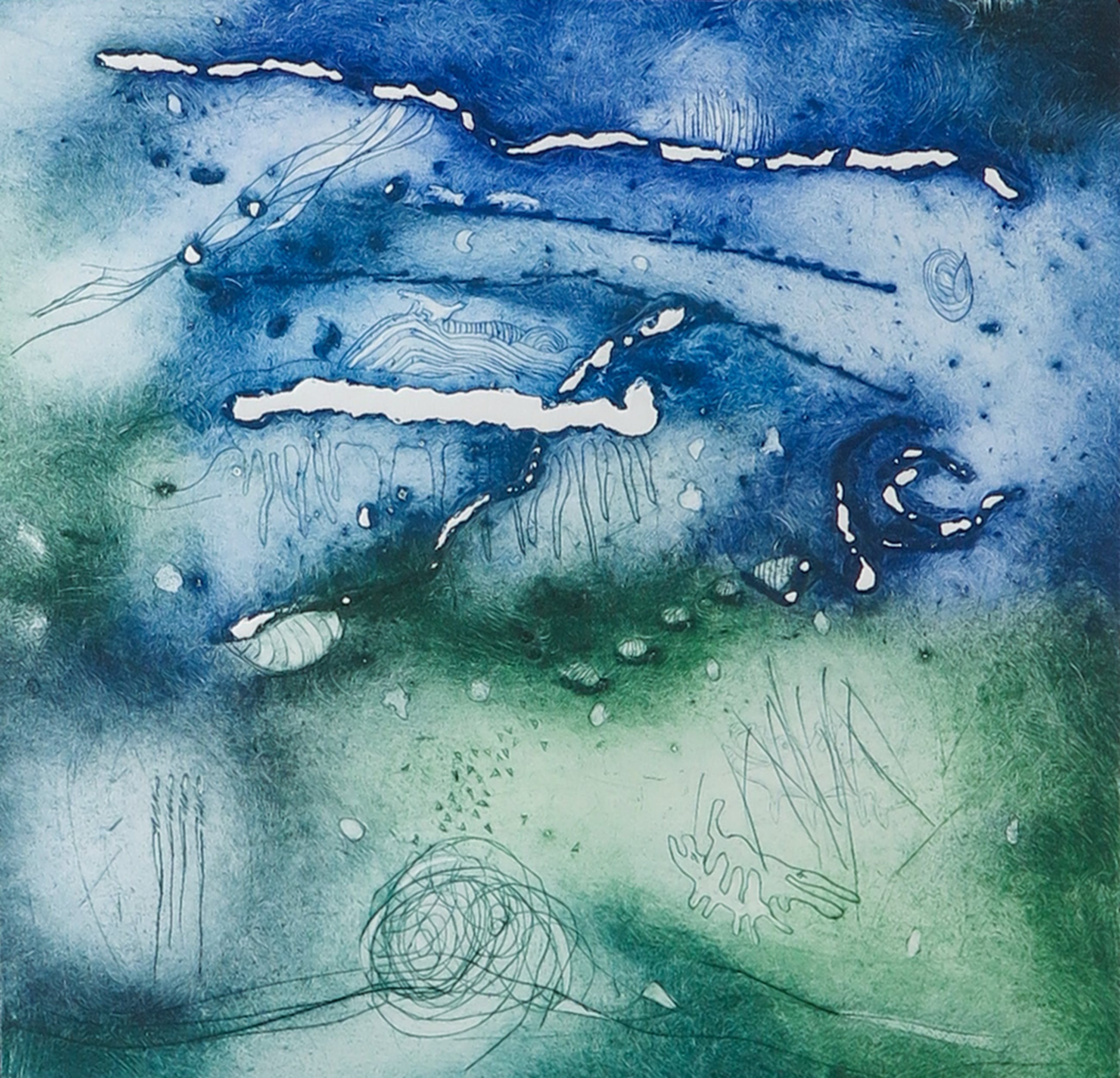 | Lichte golving in het blad, inherent aan de gekozen druktechniek. Zeer klein breukje rechtsonder in de glasplaat. | |