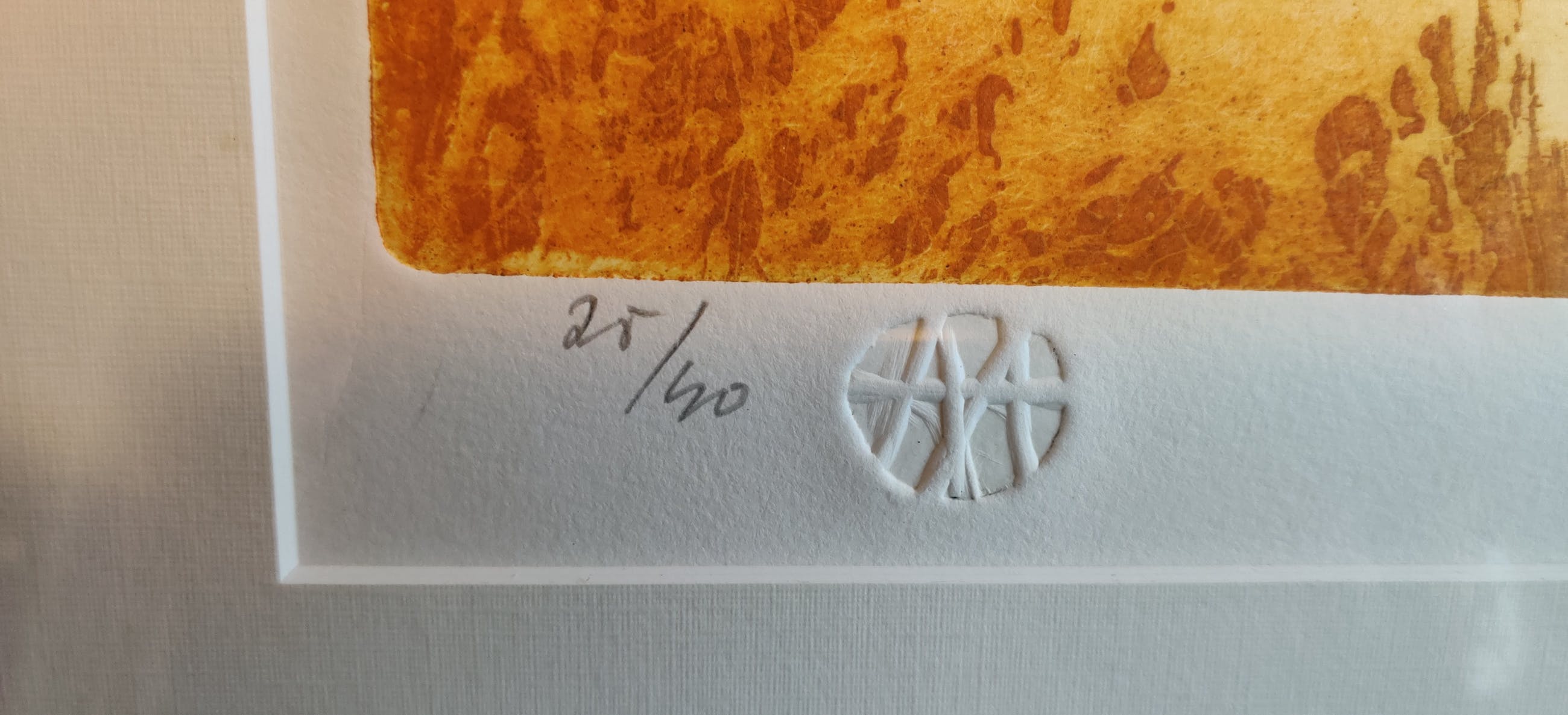 Het betreft een kleurenets in een fraaie metalen lijst.