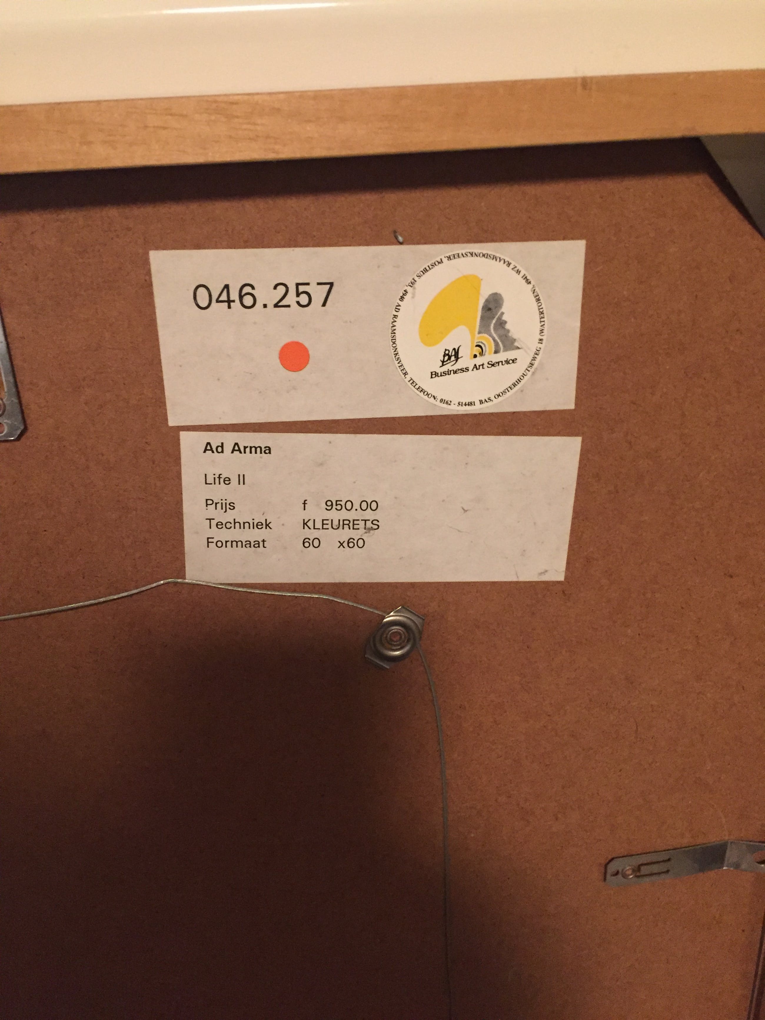 Het werk is af te halen op locatie. Als koper dient u zelf verpakkingsmateriaal mee te nemen. De locatie is: Meerssen, Nederland