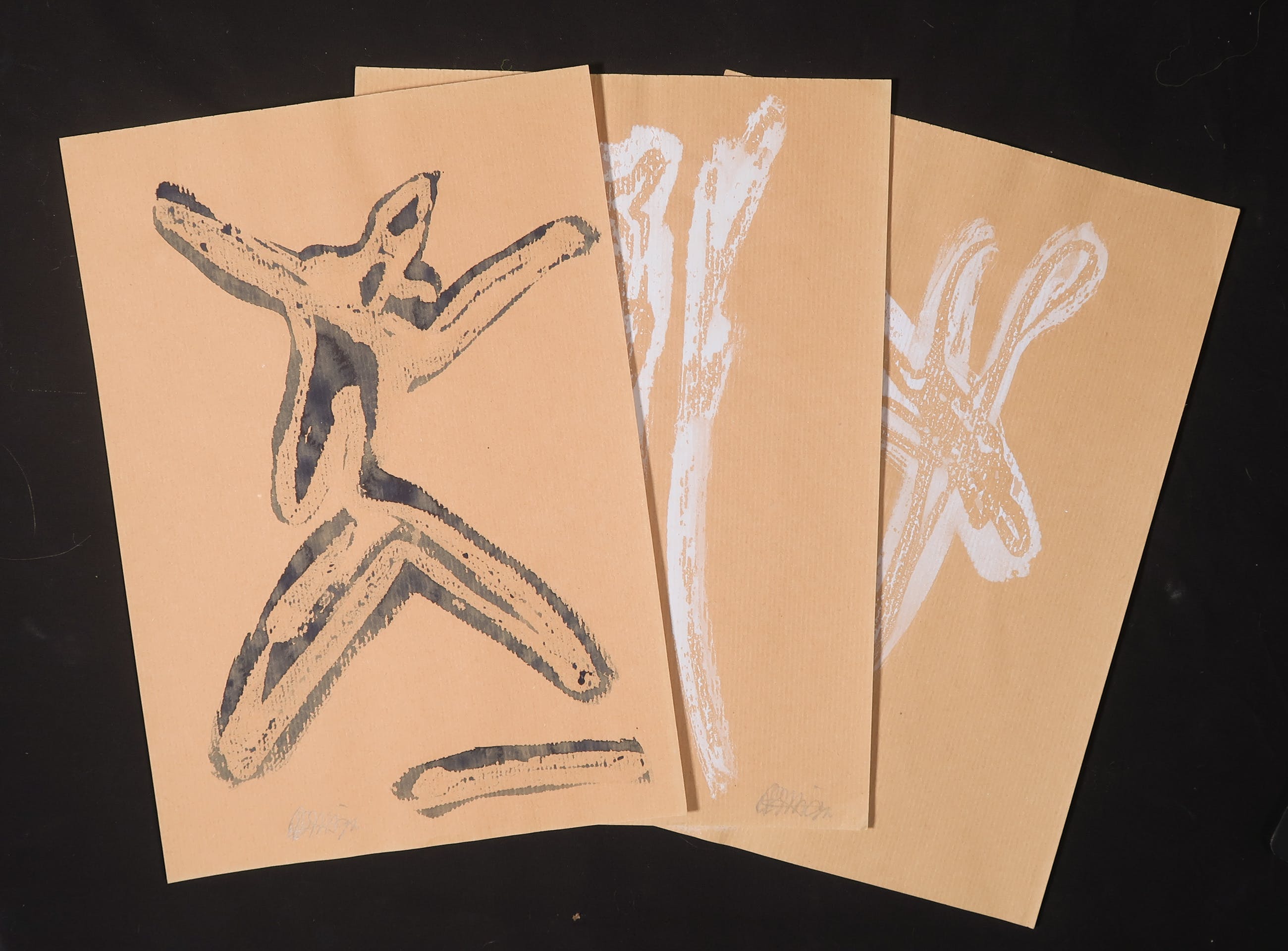 door de gebruikte techniek hebben de drie werken lichte golving van het blad | |||