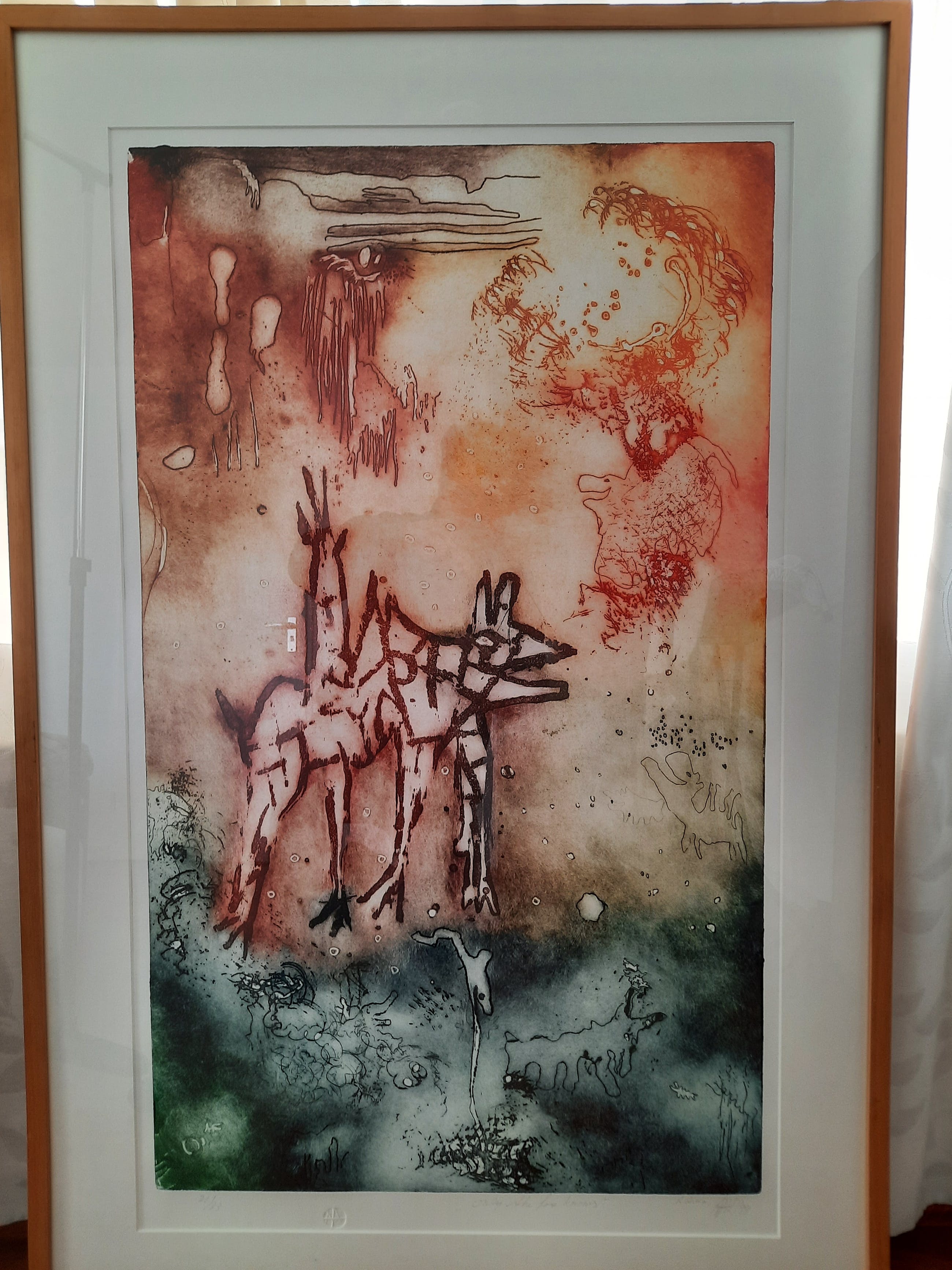 Mooi, groot werk handgesigneerd werk van Ad Arma uit 1999 (31/33) Vekoop is inclusief lijst (hout) en passe partout.