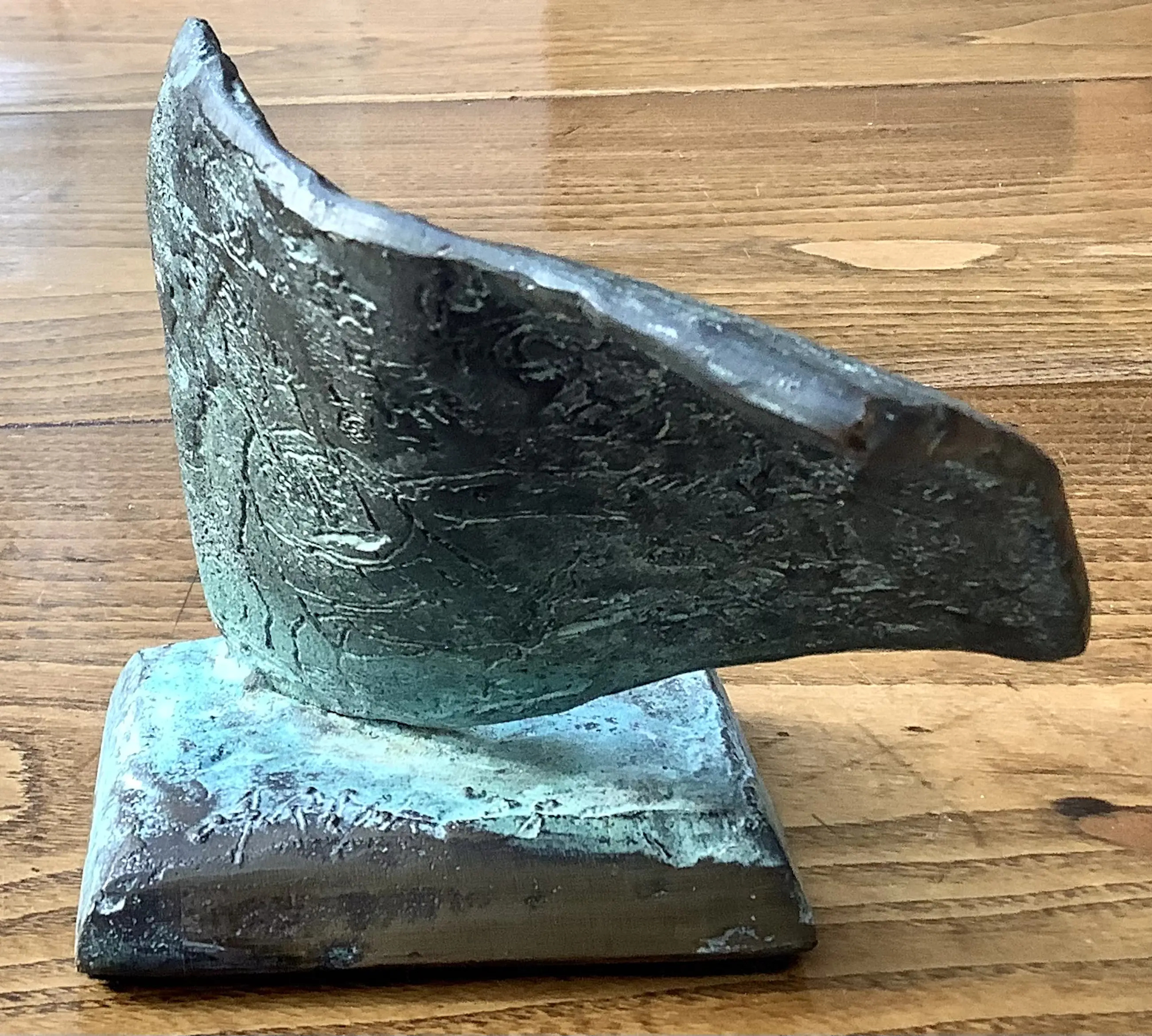Massief bronzen sculptuur van Ad Arma, (pseudoniem van Robert Meersman). Groen gepatineerd. Gesigneerd in de voet en titel ‘Profeet’ aan de voorzijde. Intrigerend object.