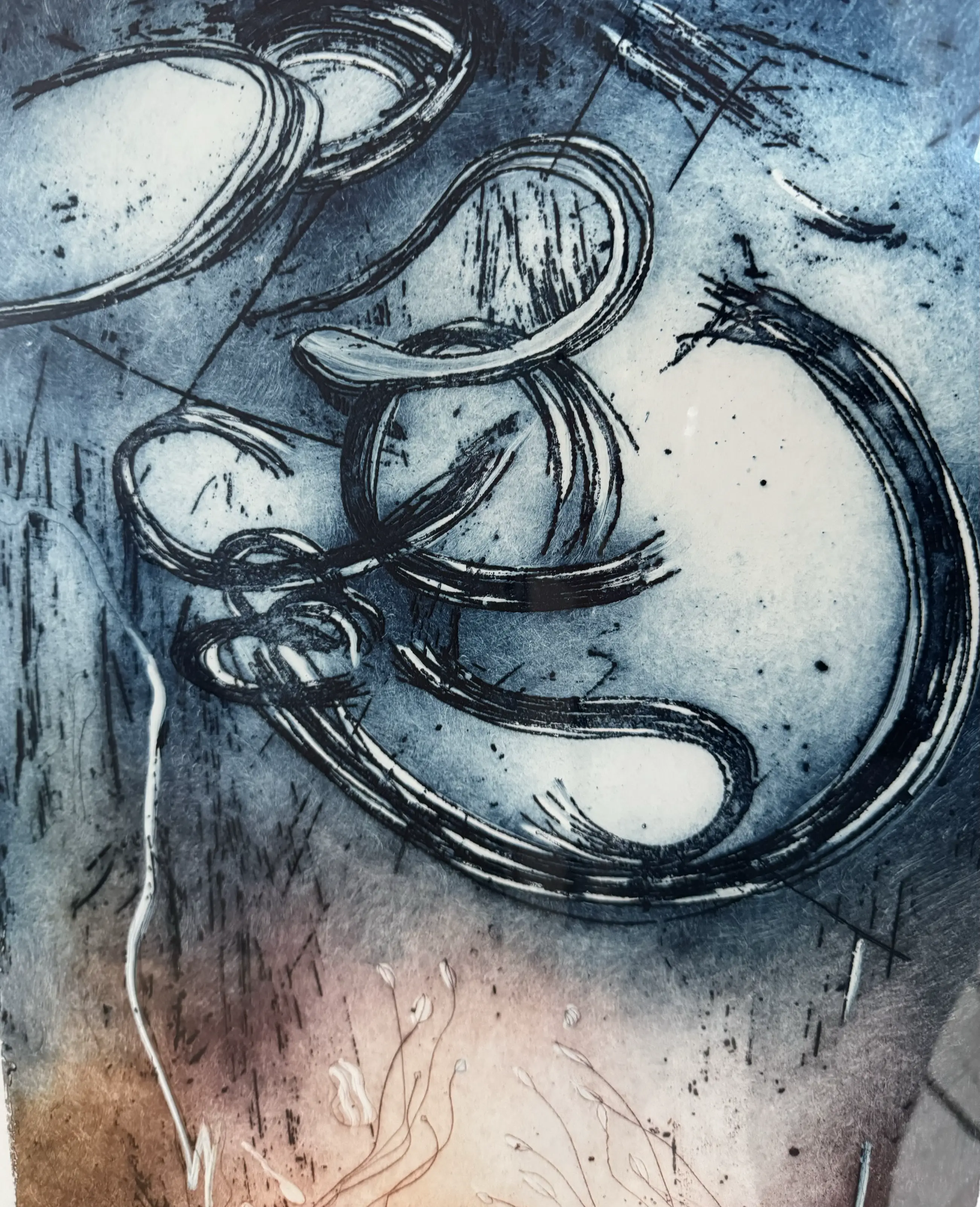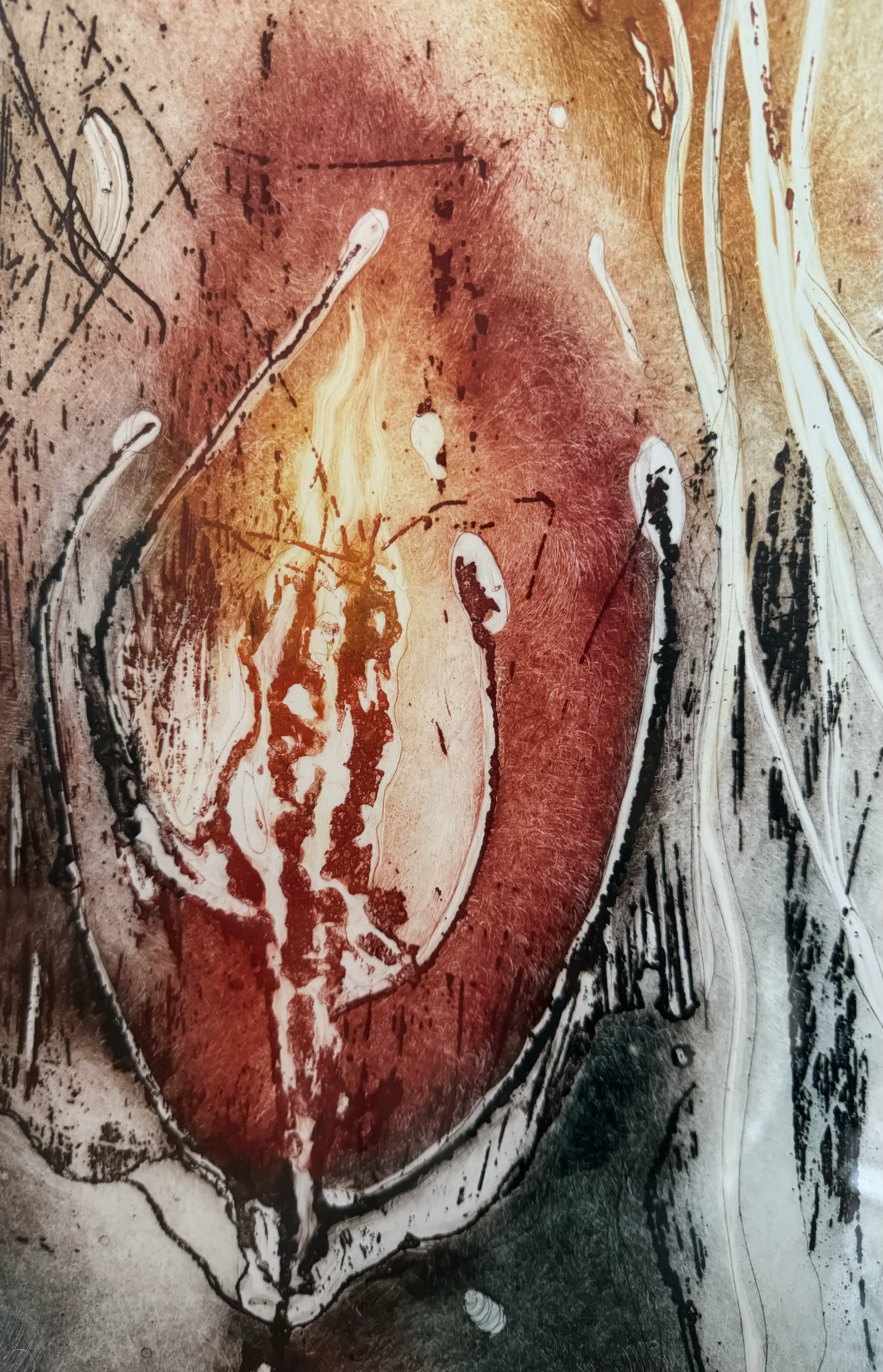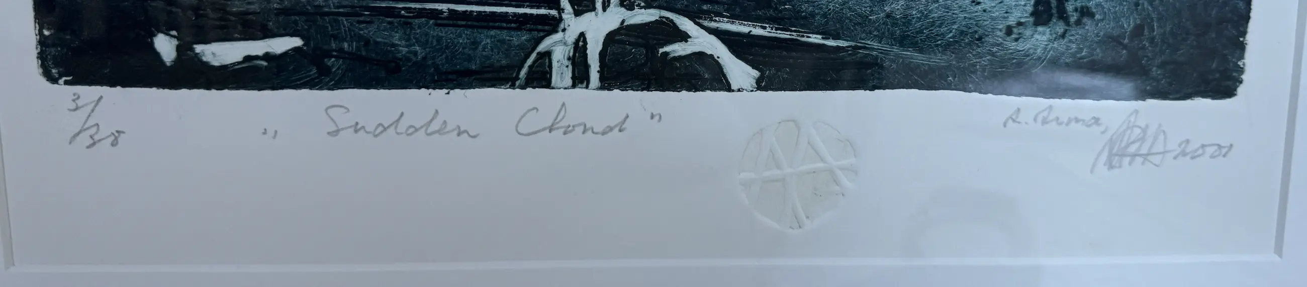 Prachtig kleurrijke ets van Ad Arma in groot formaat, ingelijst met passe partout in aluminium moderne lijst. In uitstekende staat. Handgesigneerd incl Ad Arma's zegel.