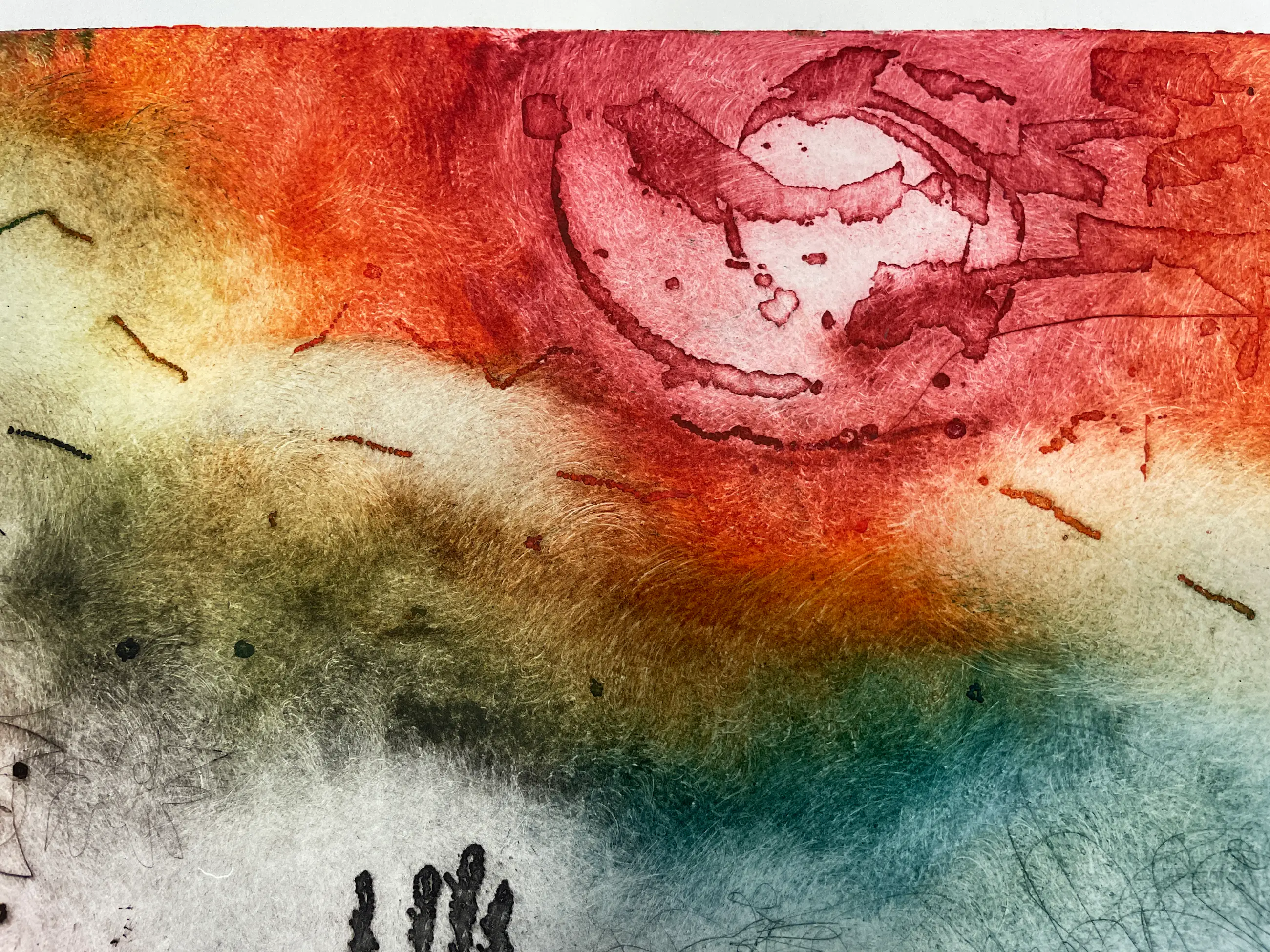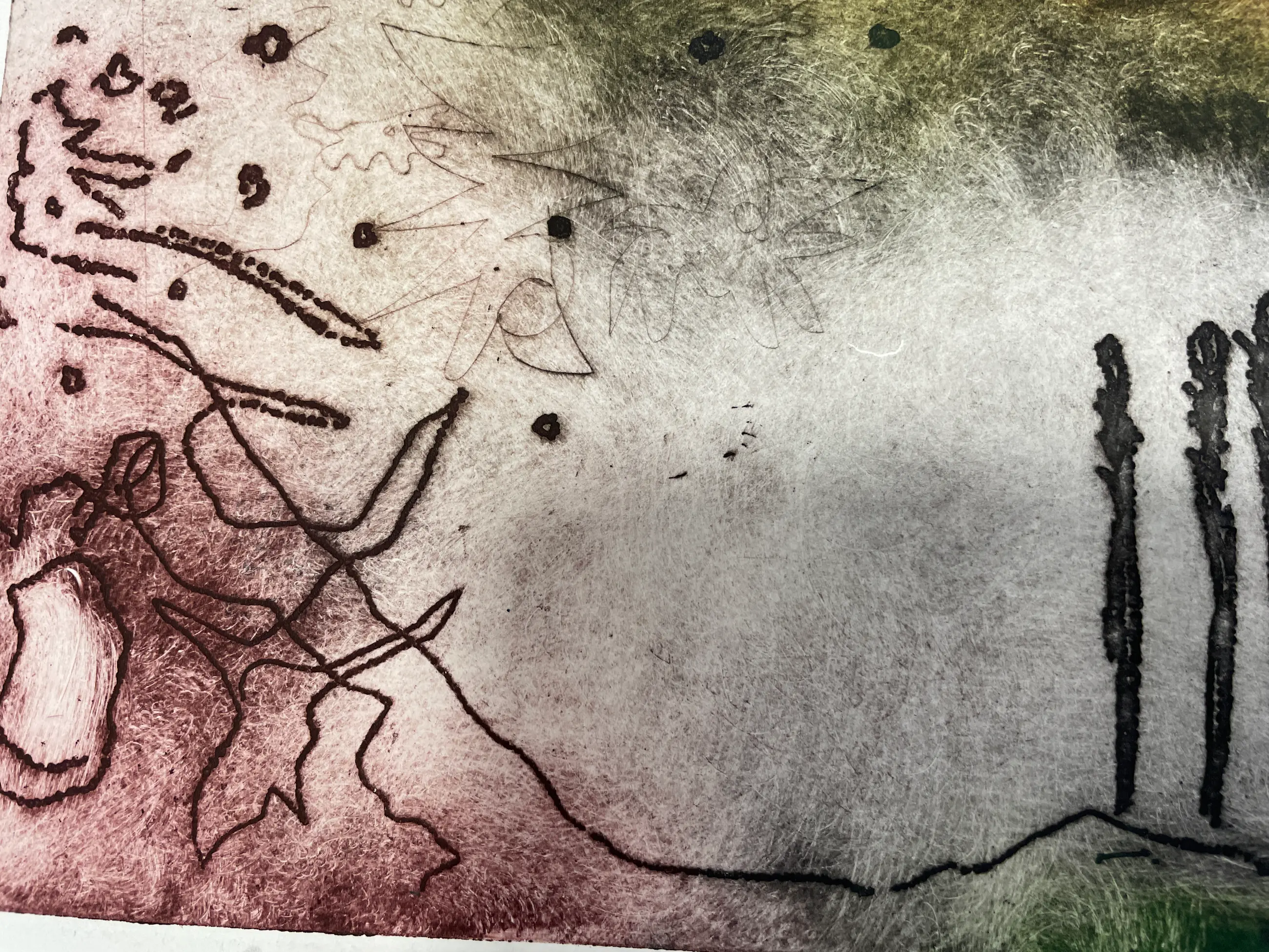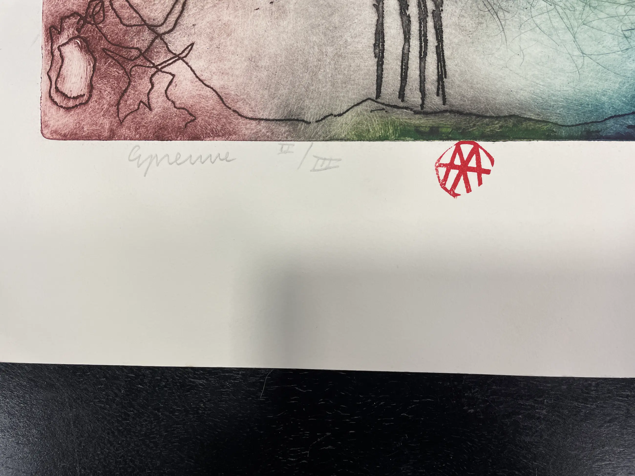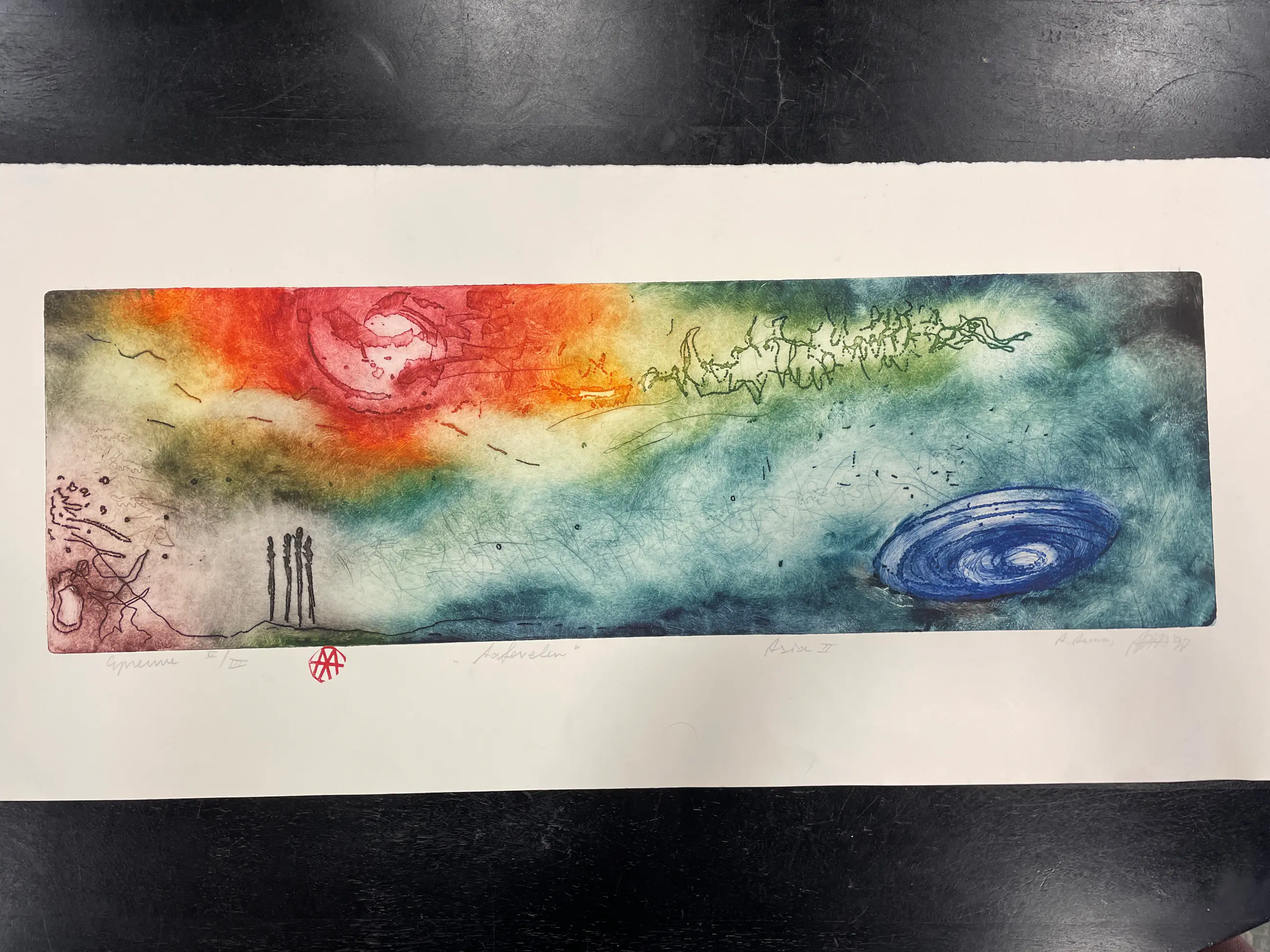 Prachtige ets van Ad Arma met heldere kleuren. Kenmerkende ets van Ad zoals hij ze tegenwoordig in het klein maakt