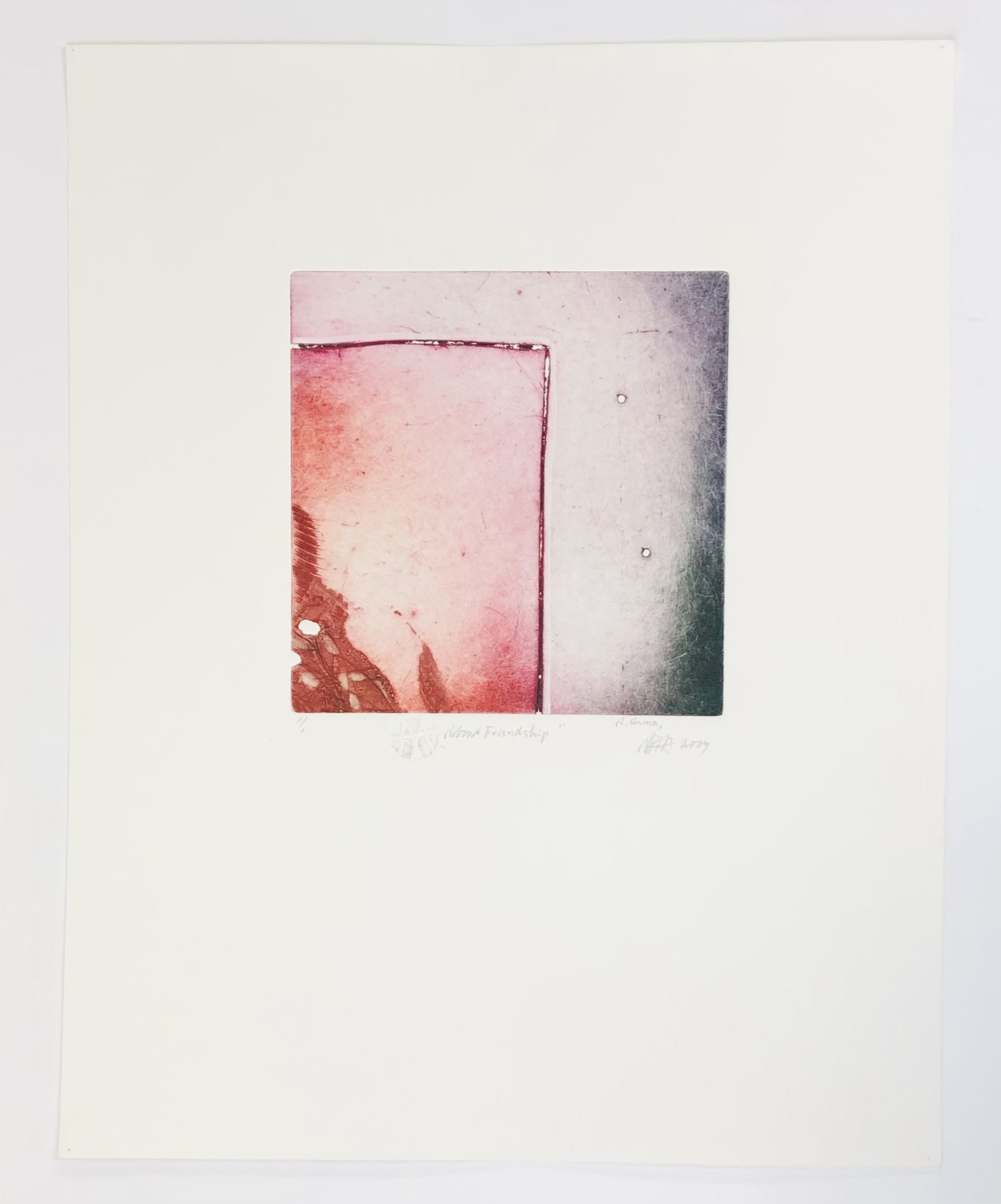 Zeer fraai uitgevoerd werk van de alleskunner Ad Arma. Hij schildert en beeldhouwt net zo makkelijk als hij etsen maakt. Ad Arma is een Nederlandse top-kunstenaar. In dit unieke werk komt de hand van de meester-etser tot uitdrukking. Een serie die hij About friendship heeft genoemd. Voorzien van signatuur, preegdruk en jaartal. De ets indruk zelf is ca 20 x 20 cm. Het werk verkeert in perfecte conditie. U kunt het werk vooraf komen bekijken in de schatkamer van galerie Rotor in Gorinchem of na aankoop ophalen. Het werk kan ook verzonden worden via aangetekende post. Wij kunnen het inlijstwerk voor u uitvoeren.