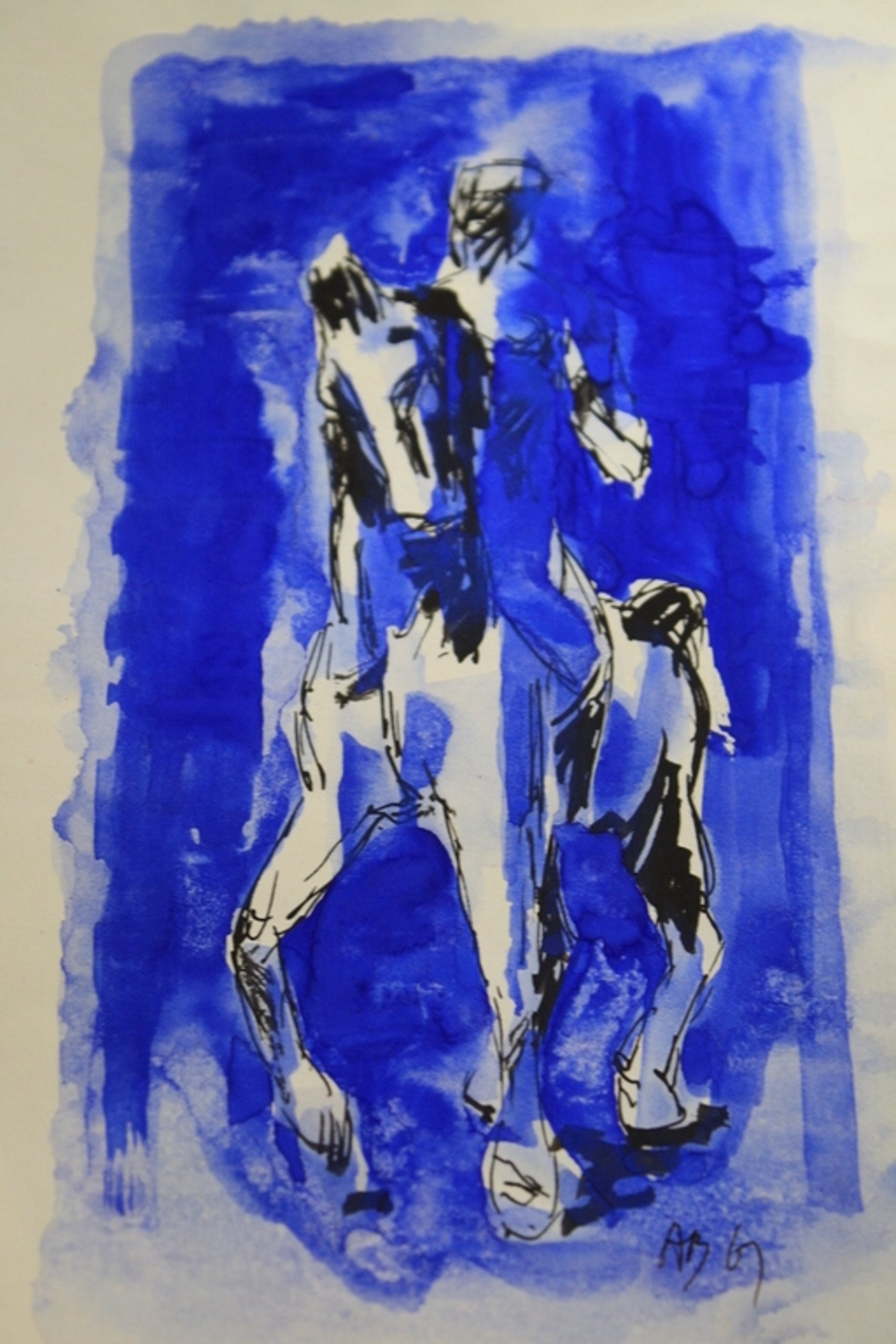 AQUAREL EN INKT TEKENING OP PAPIER IN DE MAAT 10 X 20 CM
