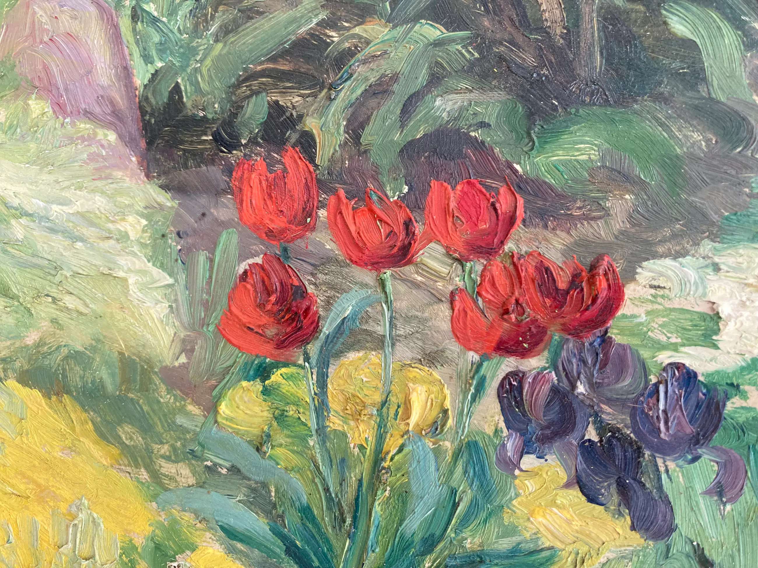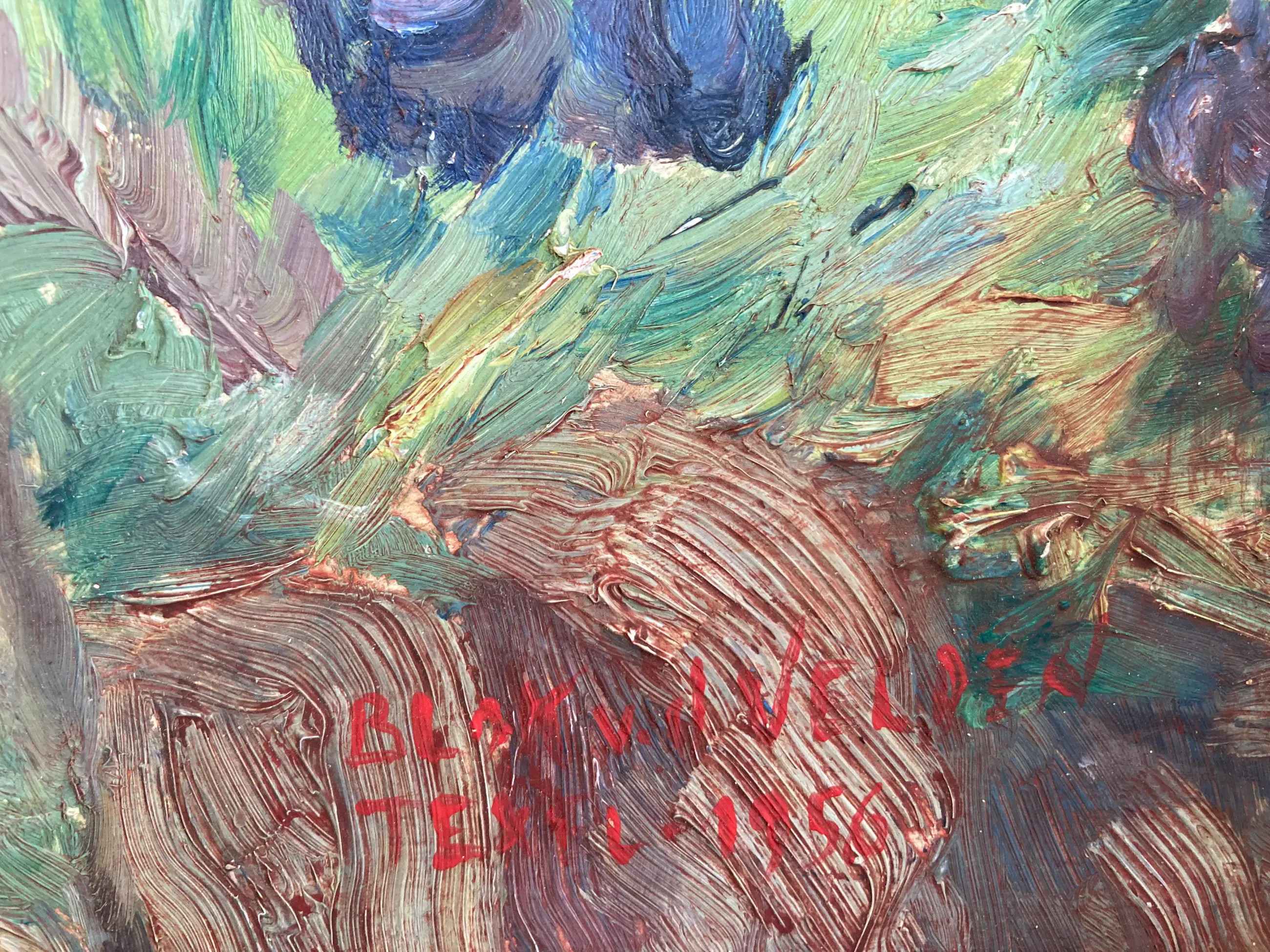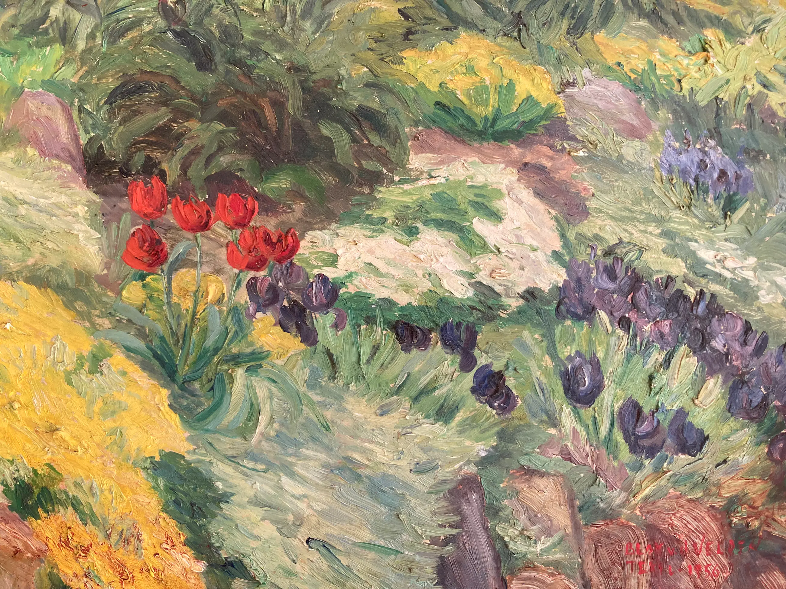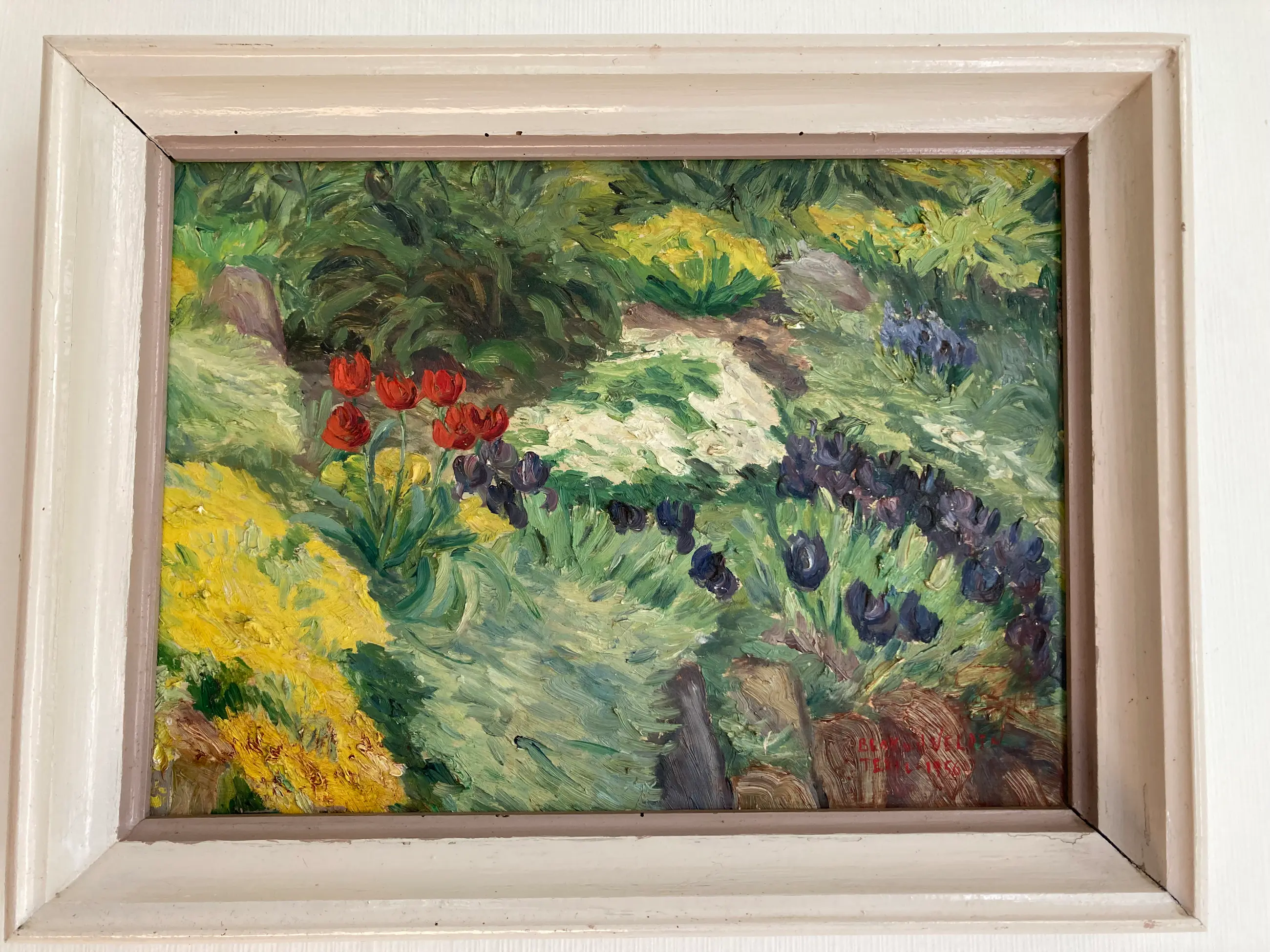 Mooi, kleurrijk werk van Ad Blok van der Velden. Rechtsonder gesigneerd en gedateerd 1956. Het schilderij is in uitstekende conditie en bevindt zich in de originele lijst.