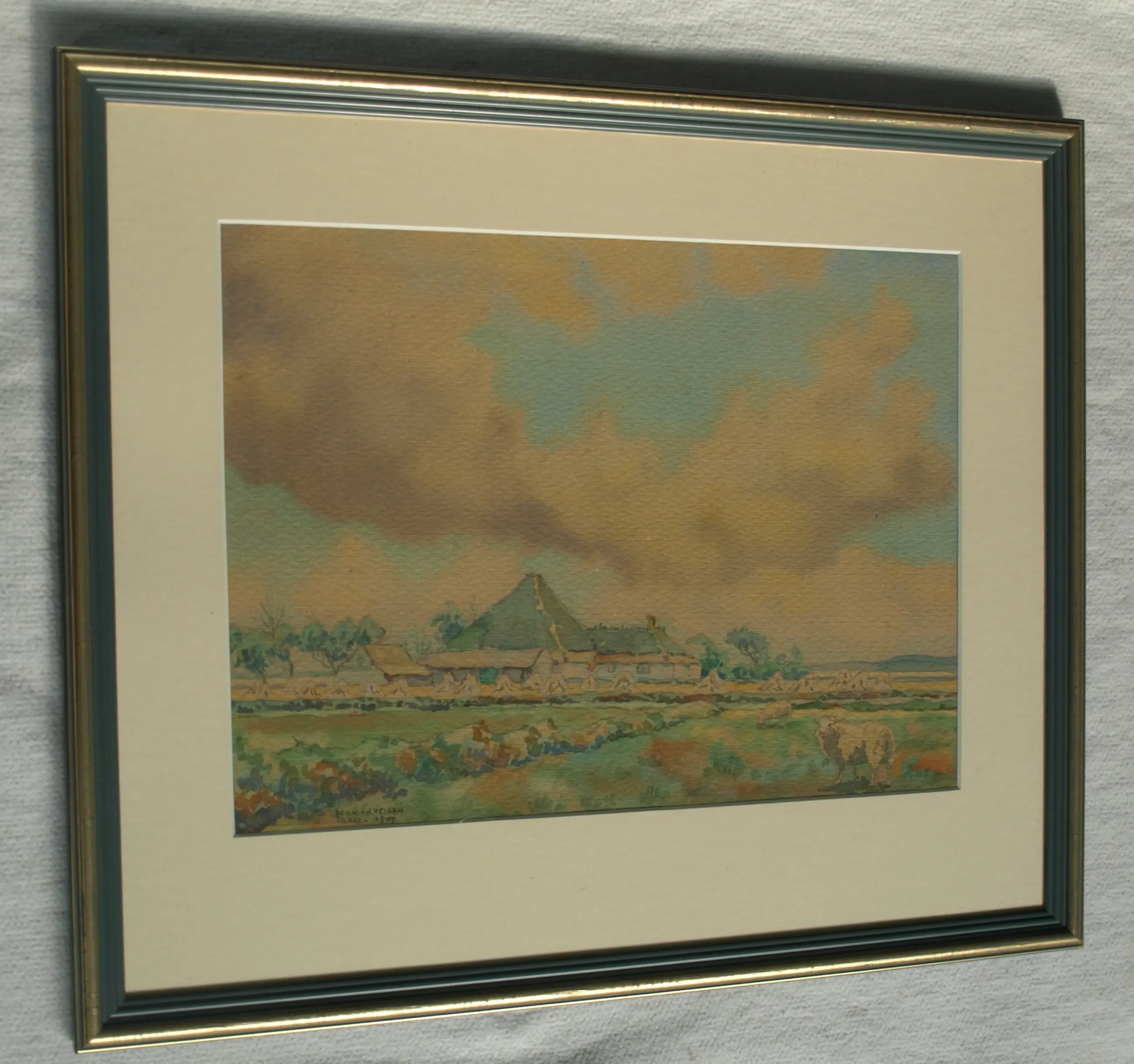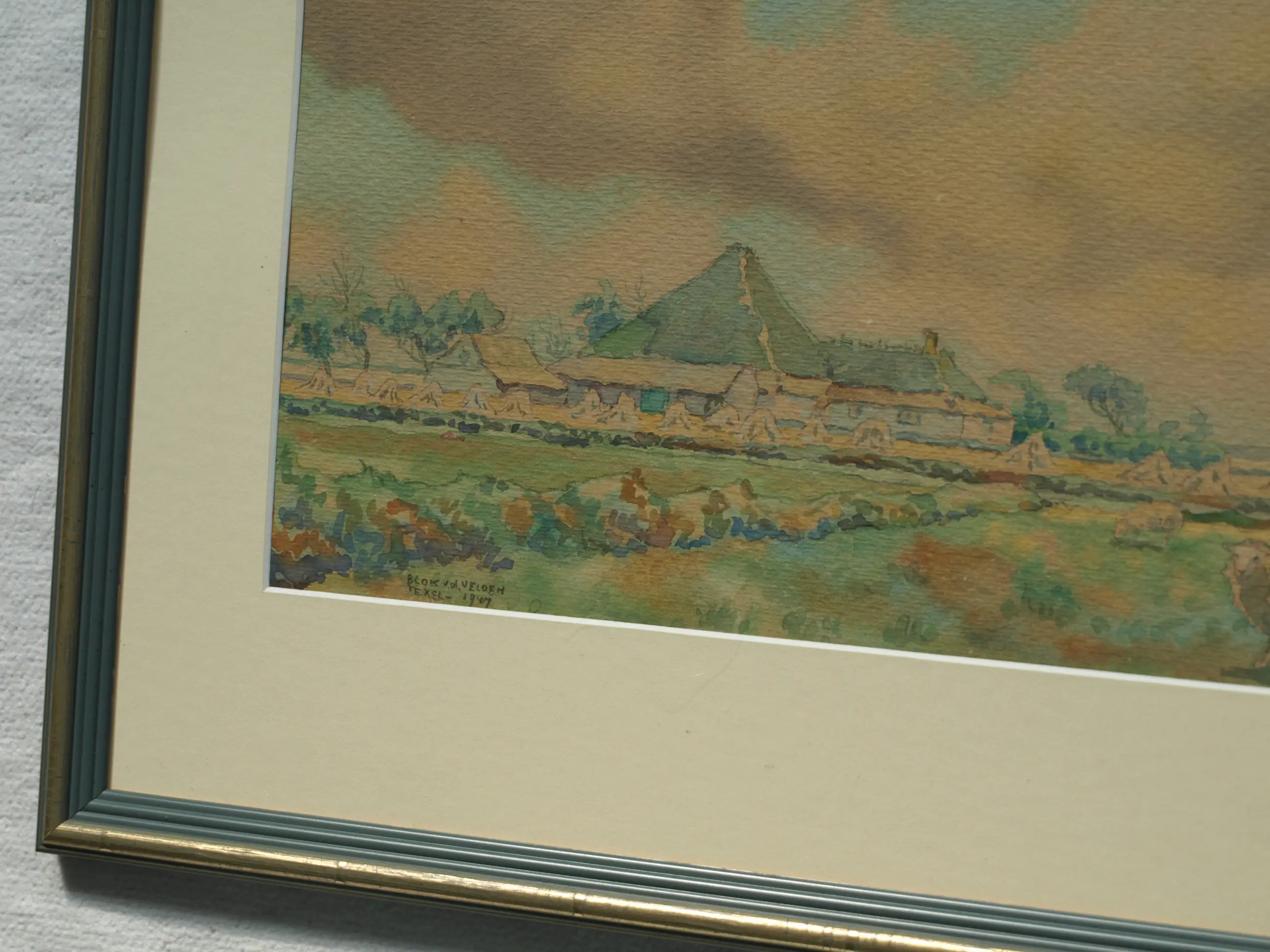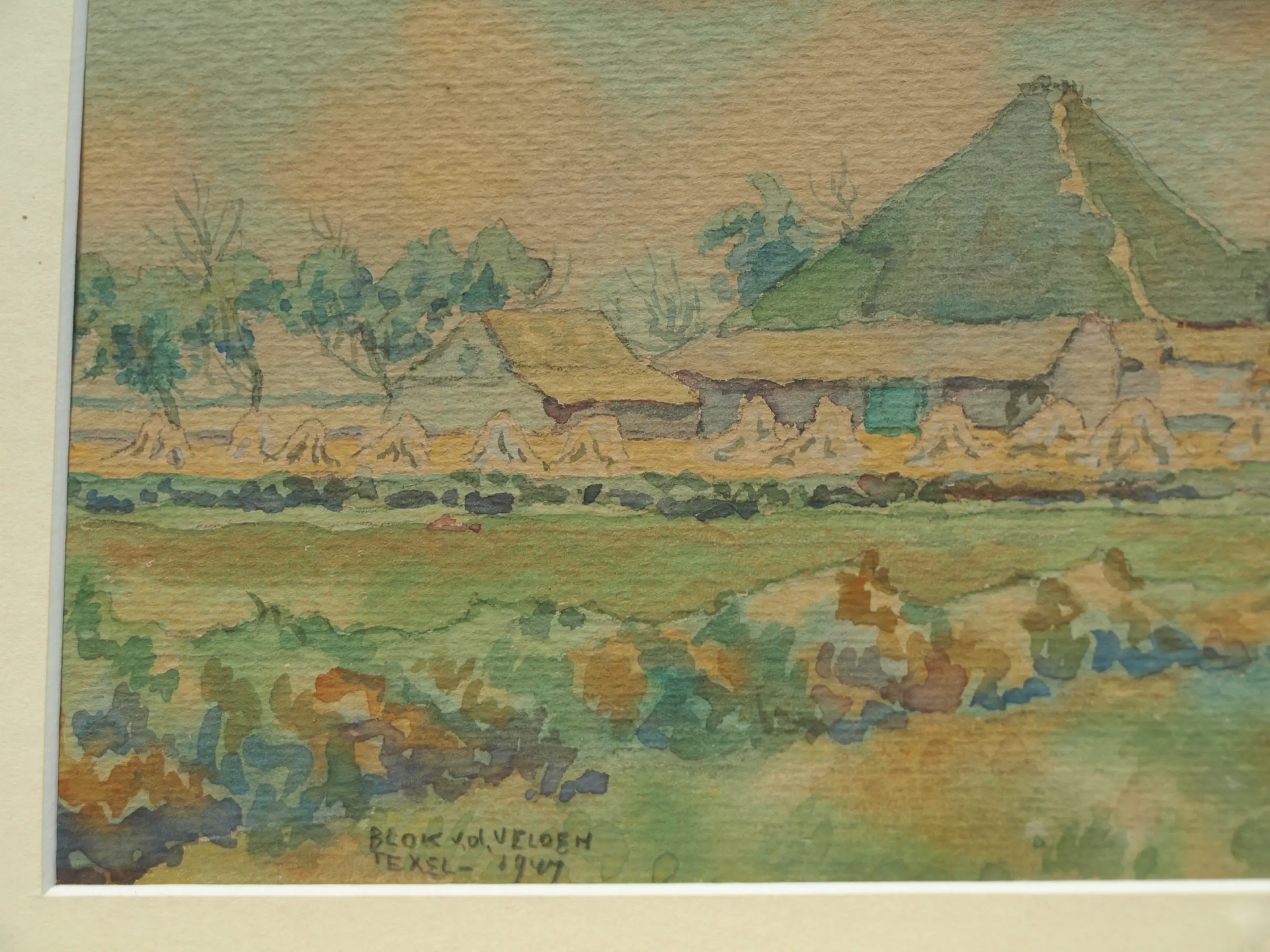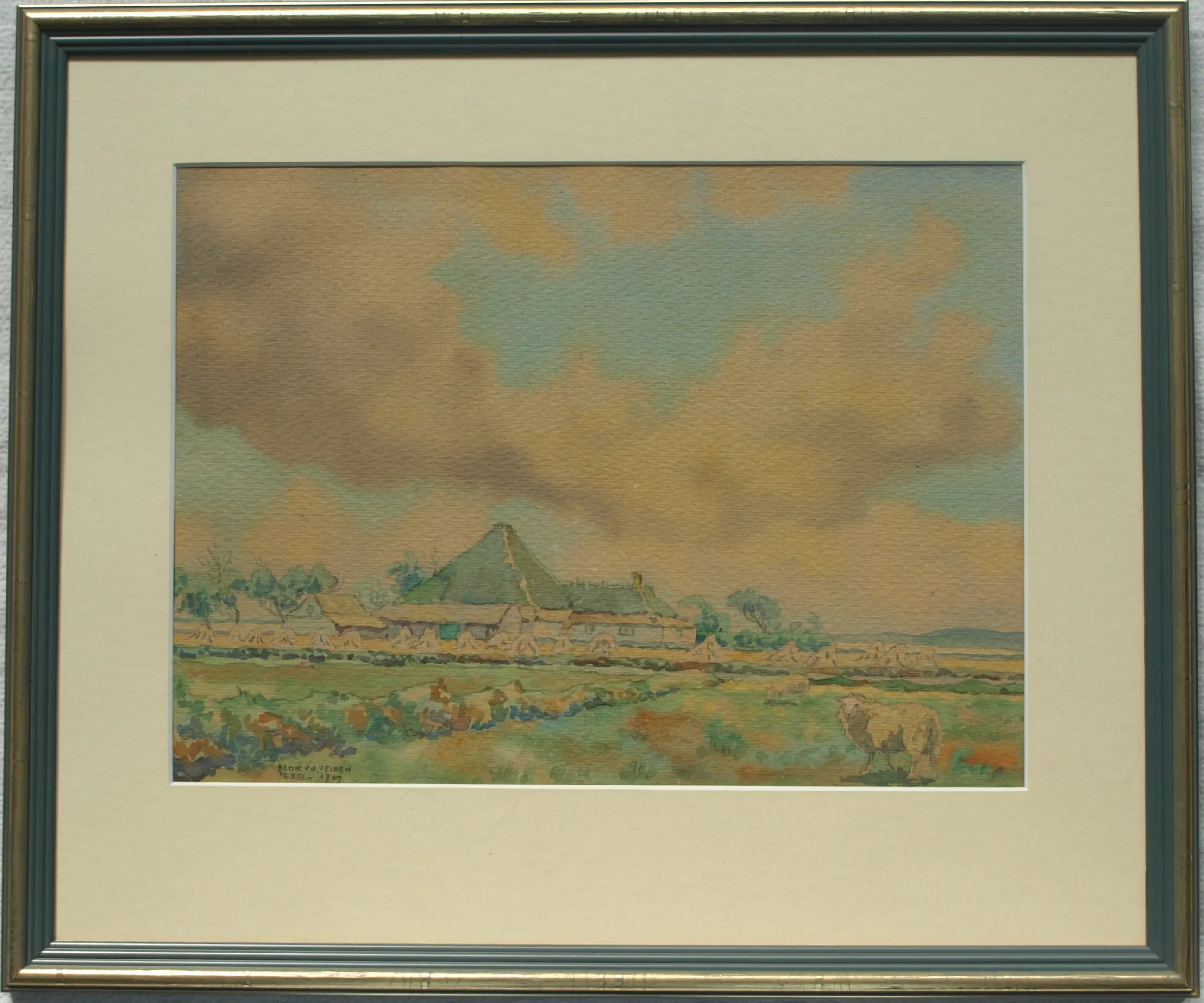 Ad Blok van der Velden - Ingelijste aquarel , Landschap Texel - 1947