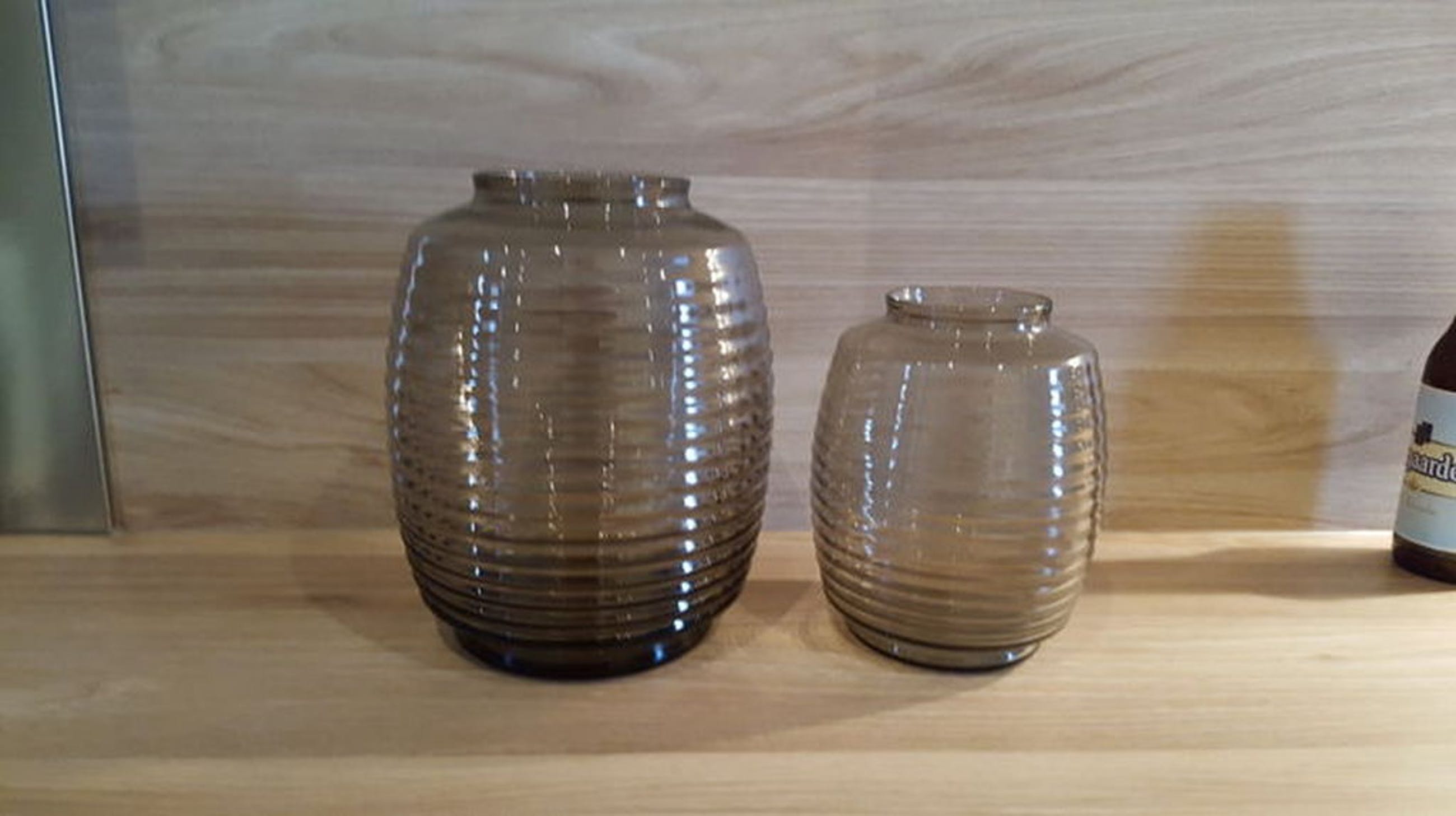 Het betreft 2 Fumi 'tonnetjes' van ca. 16 en ca. 21 cm hoog.