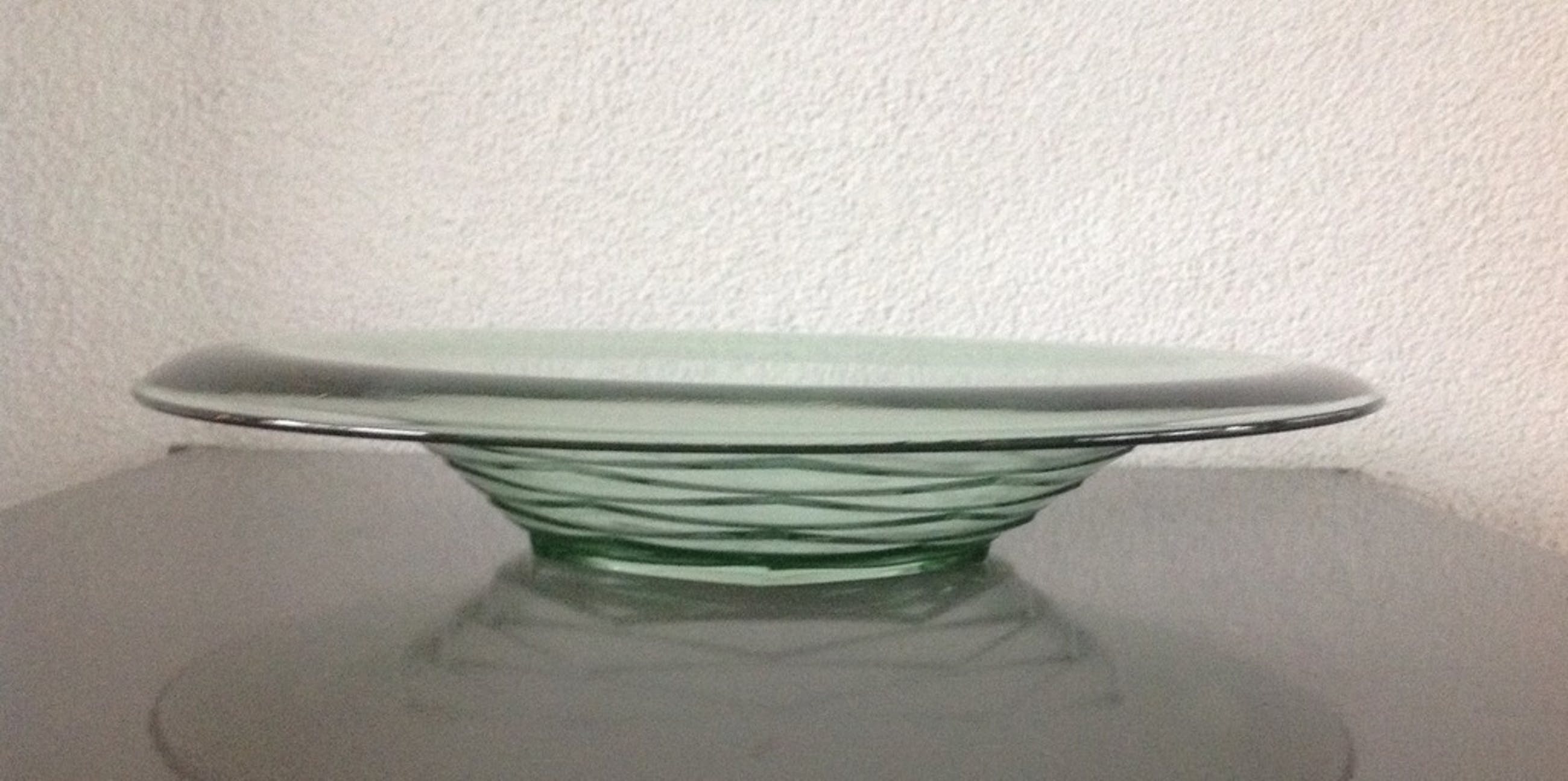 Deze lichtgroene schaal is ca. 1935 door Copier ontworpen voor de glasfabriek "Leerdam".