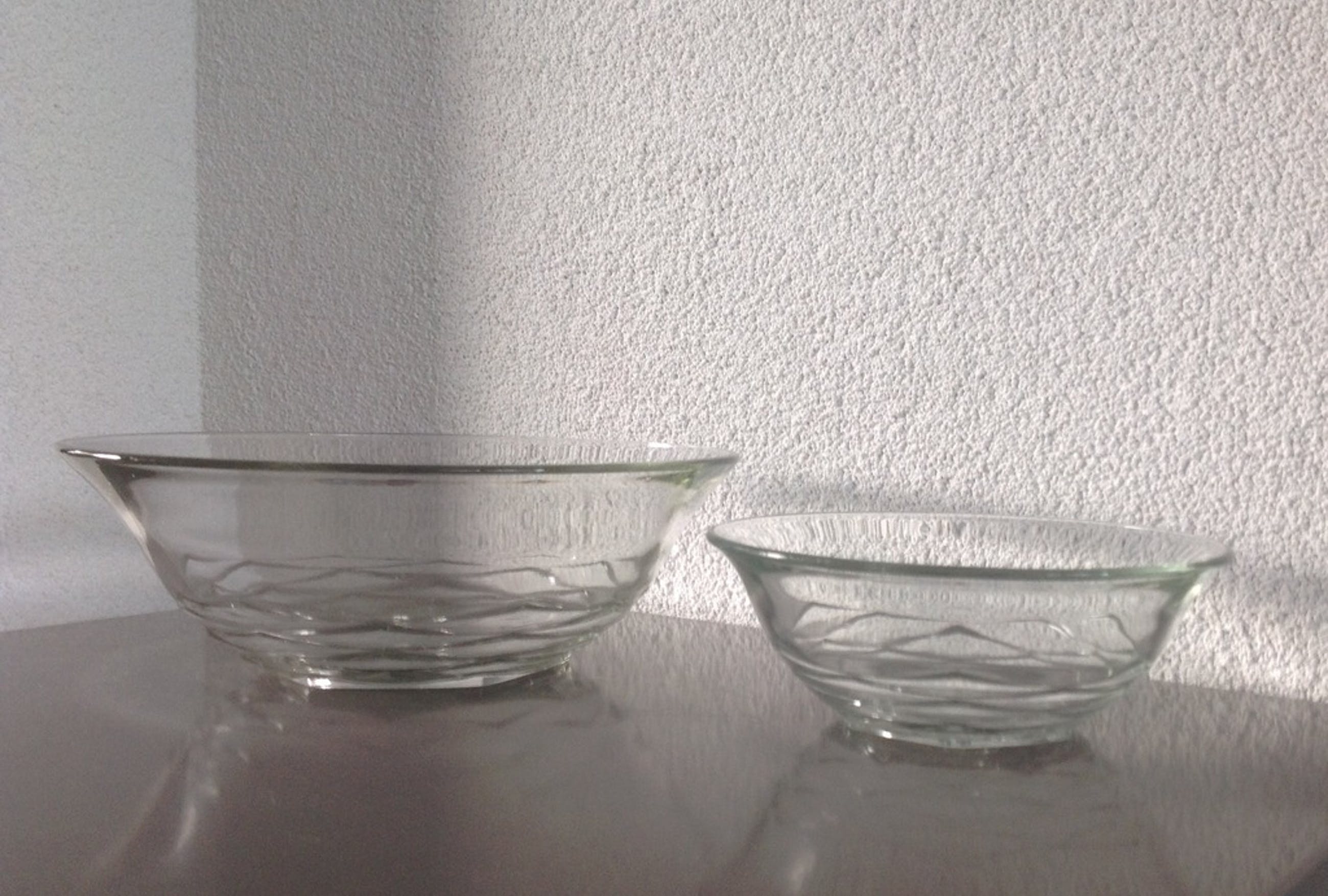 De schalen zijn 20 cm en 13 cm in doorsnee.