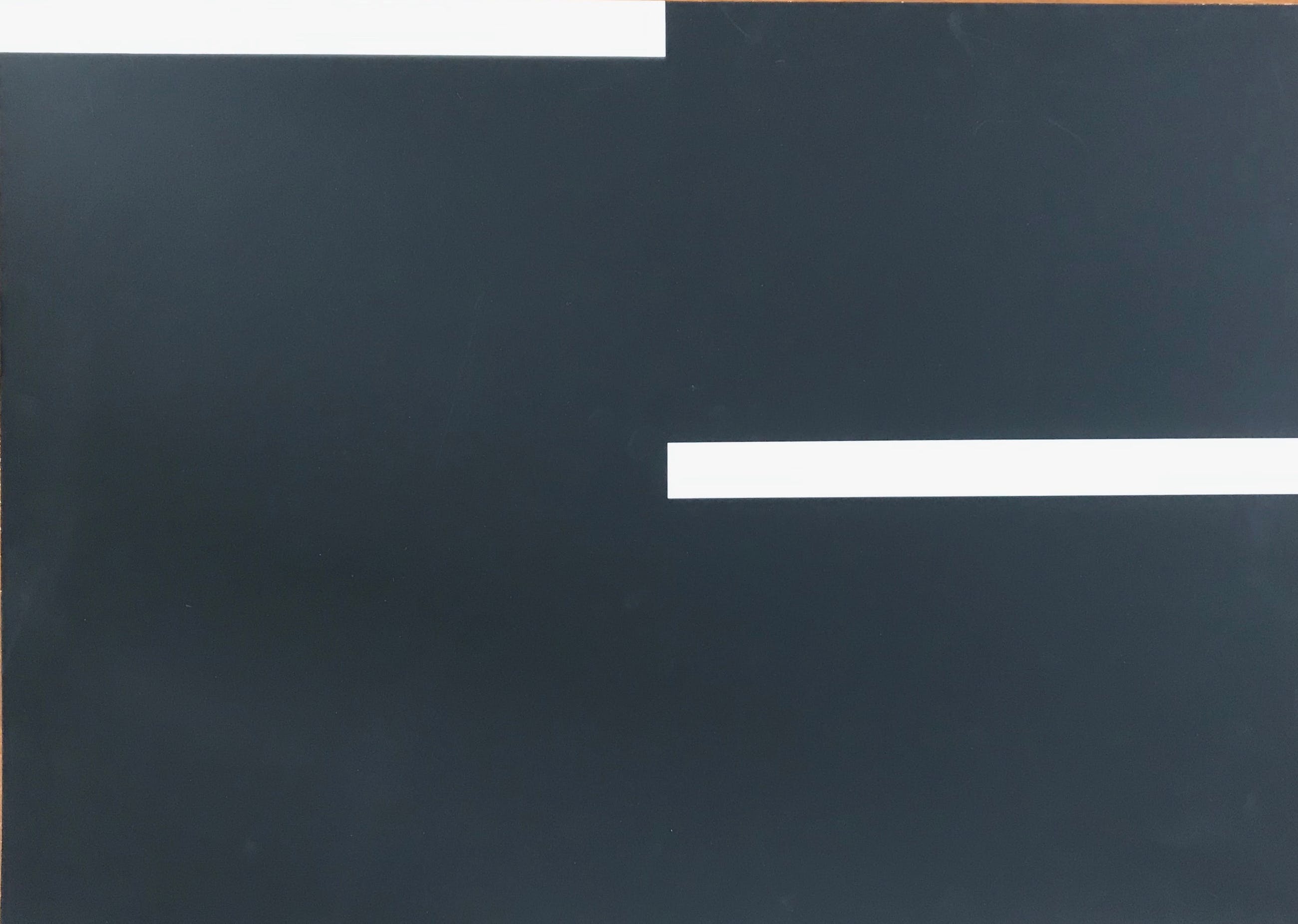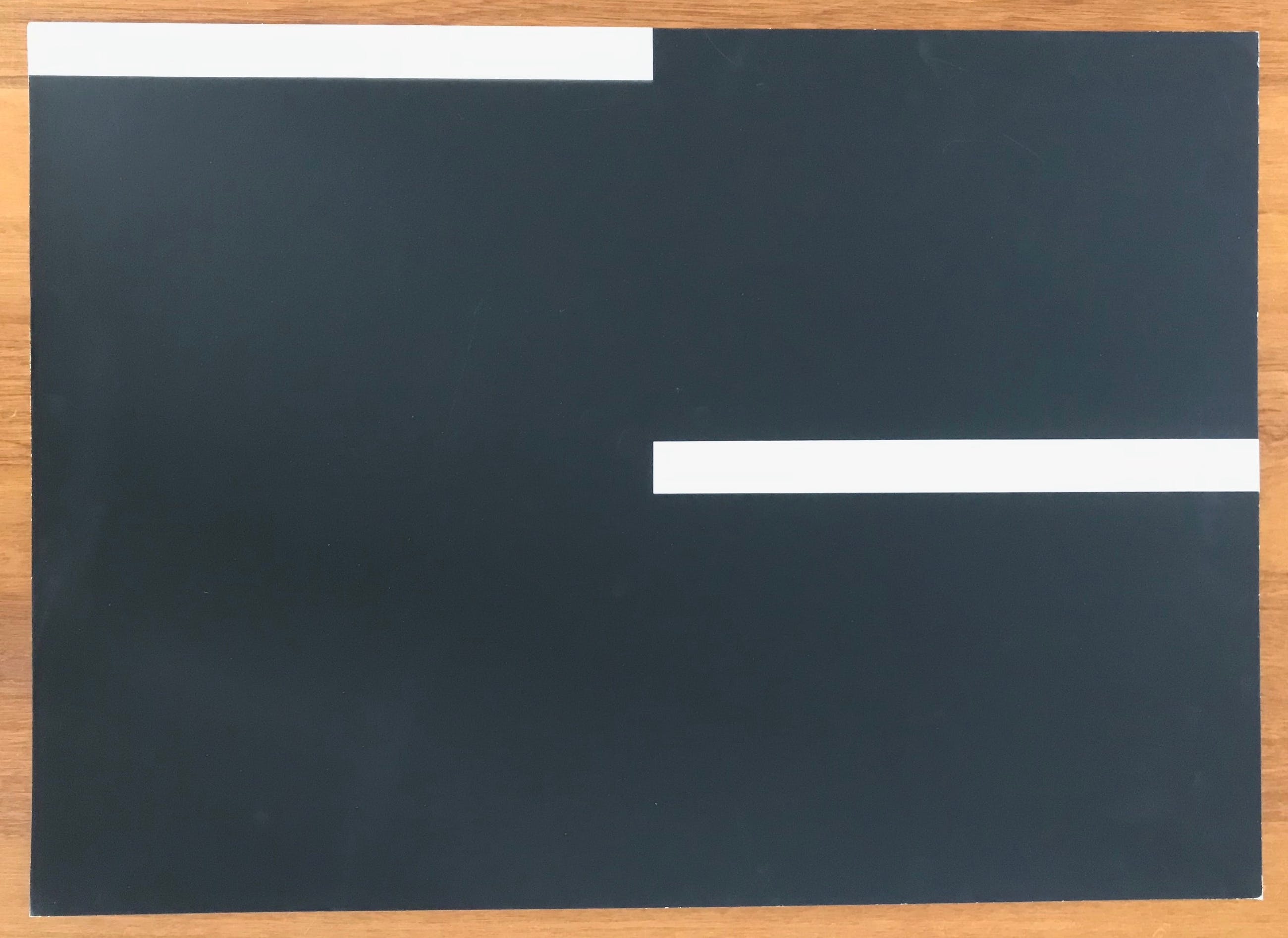 Zwart-wit zeefdruk op dik papier uit 1974.