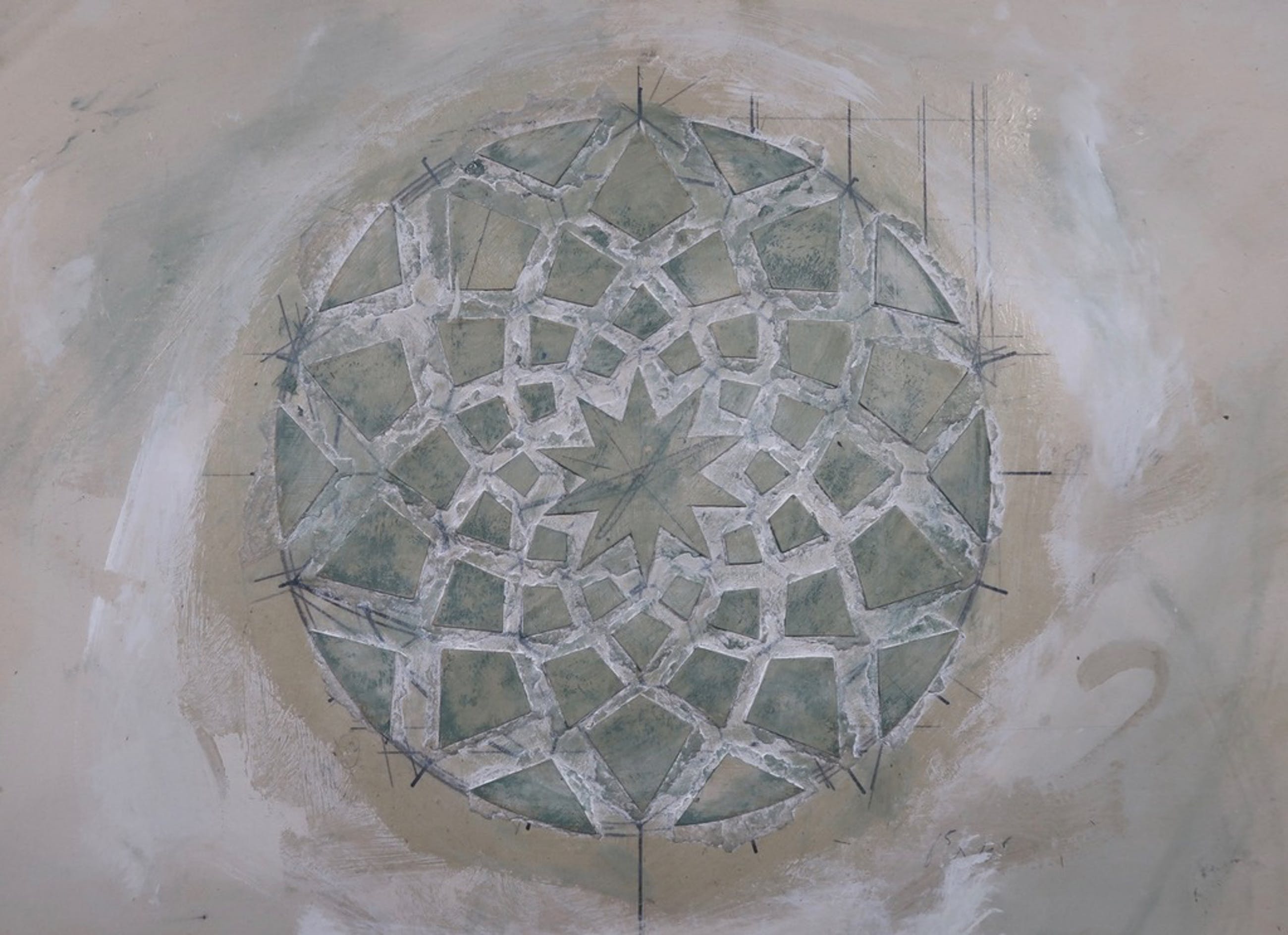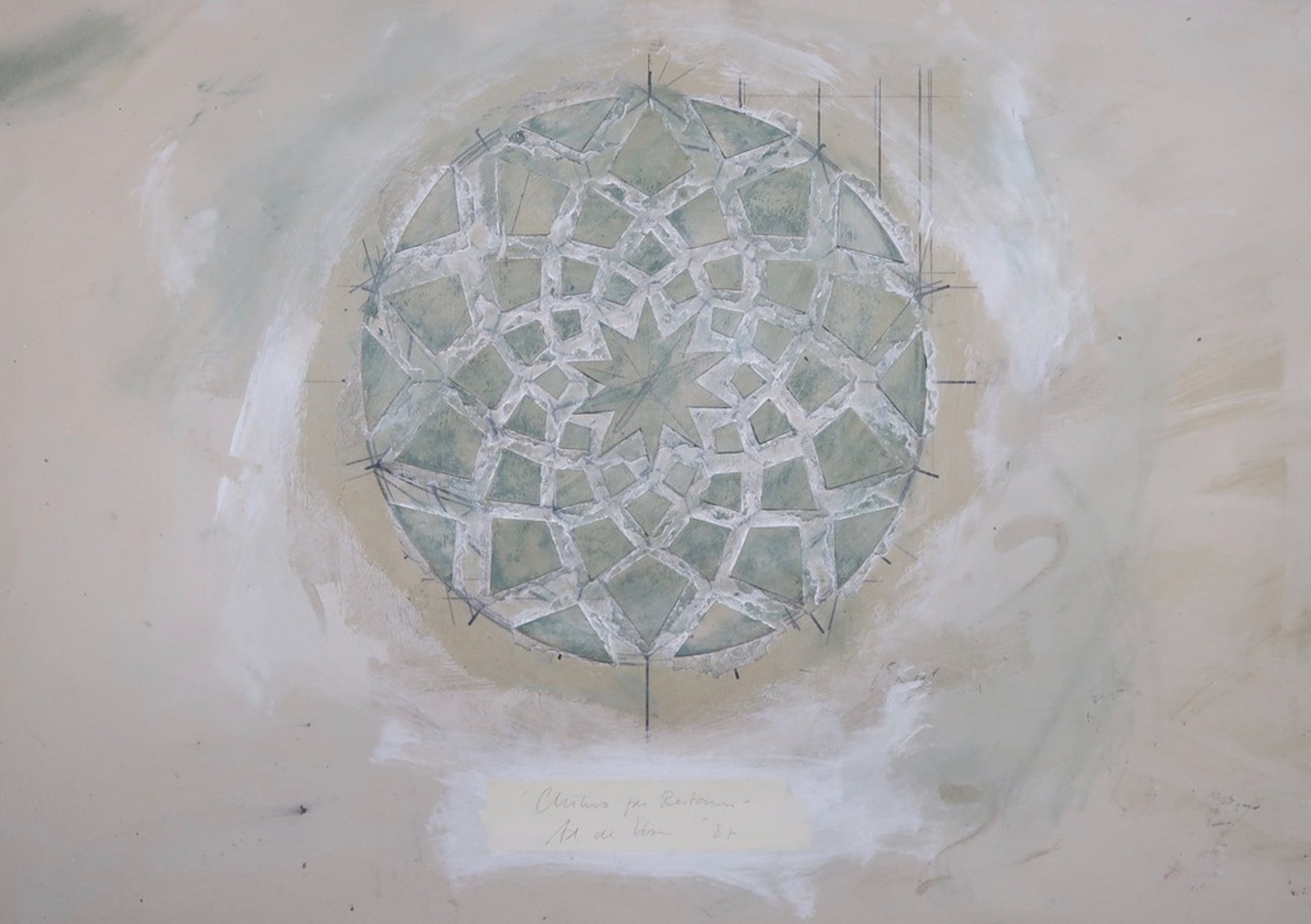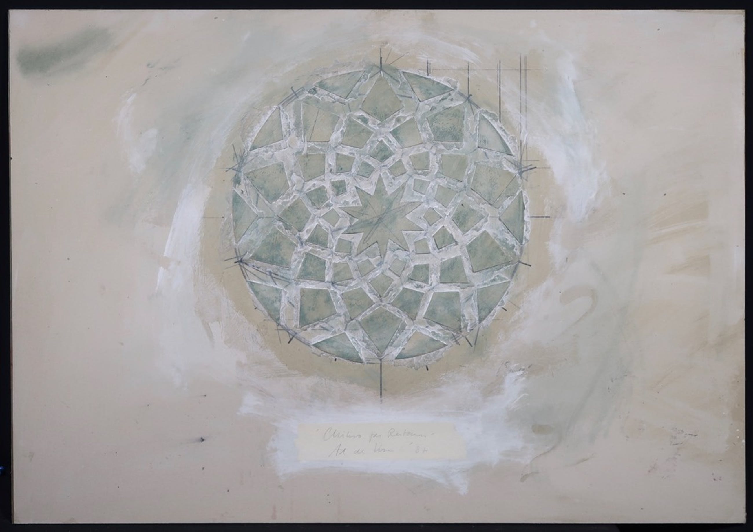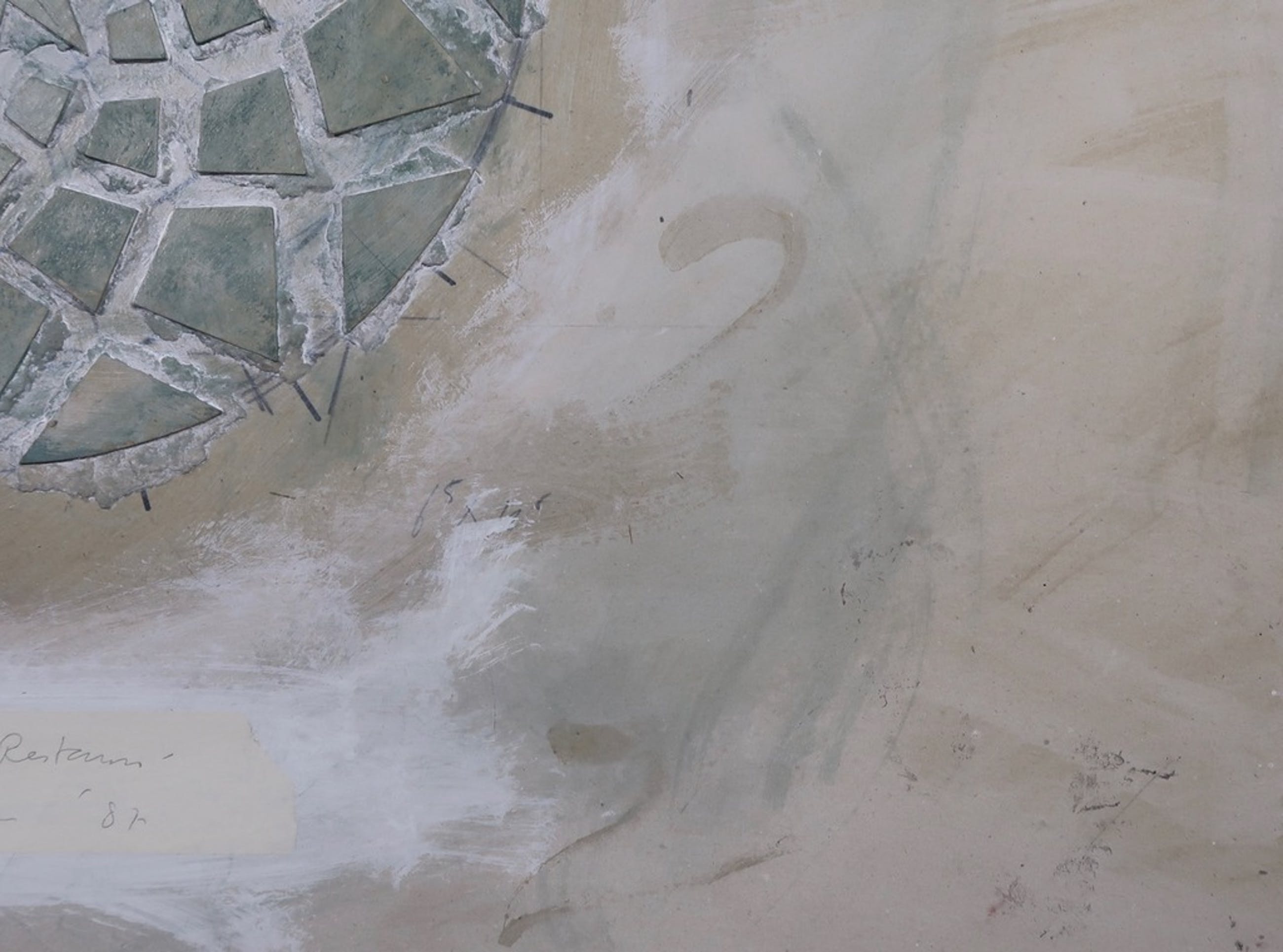 Materiaal: Gemengde techniek (Gouache, collage, potlood) op karton, bevstigd op board