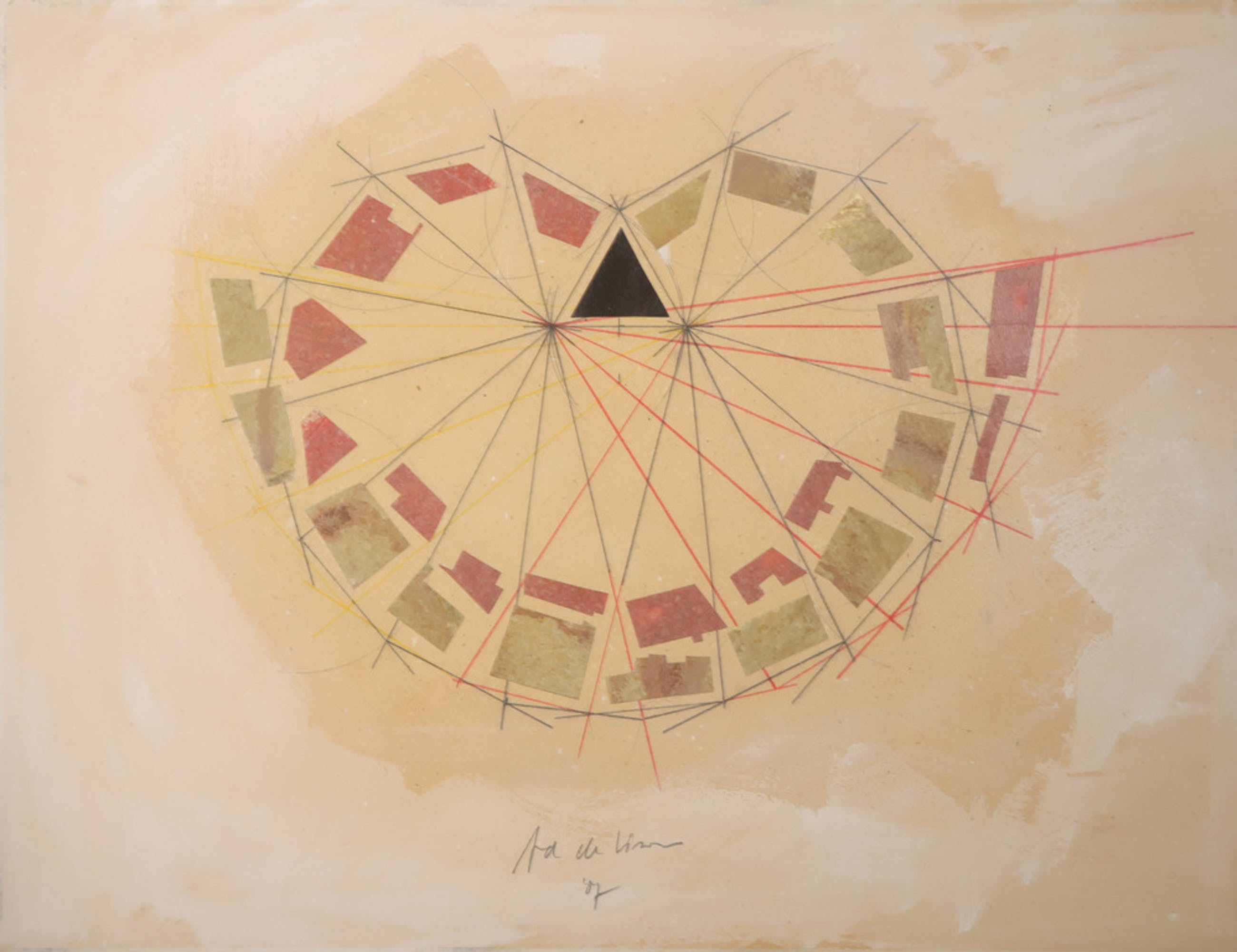 Materiaal: Gemengde techniek, waaronder potlood en collage op board