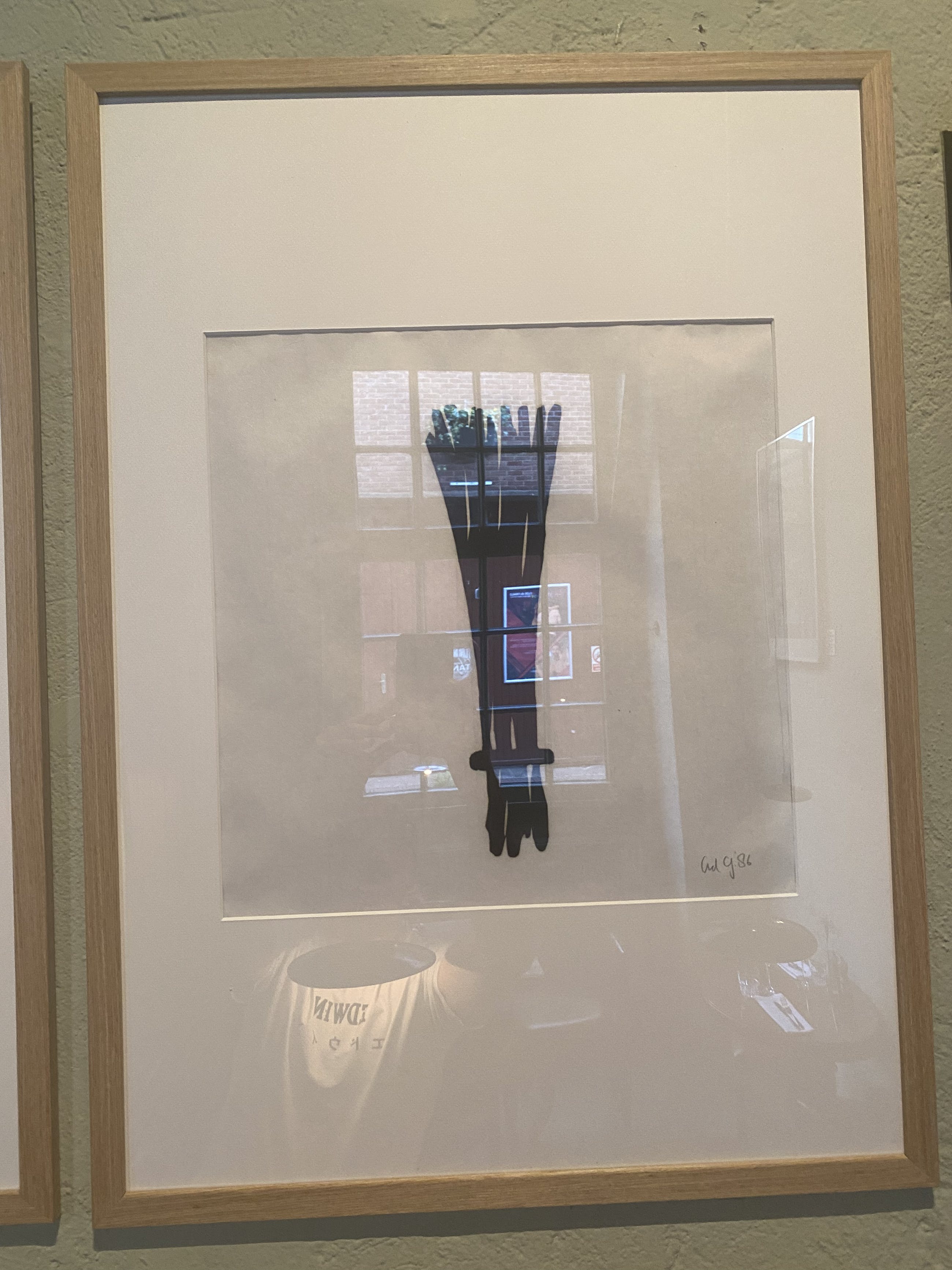 Ingelijst werk in houten wissellijst, dit werk is uit een serie denkbeeldige wapens.  Zeldzaam werk uit 1986.