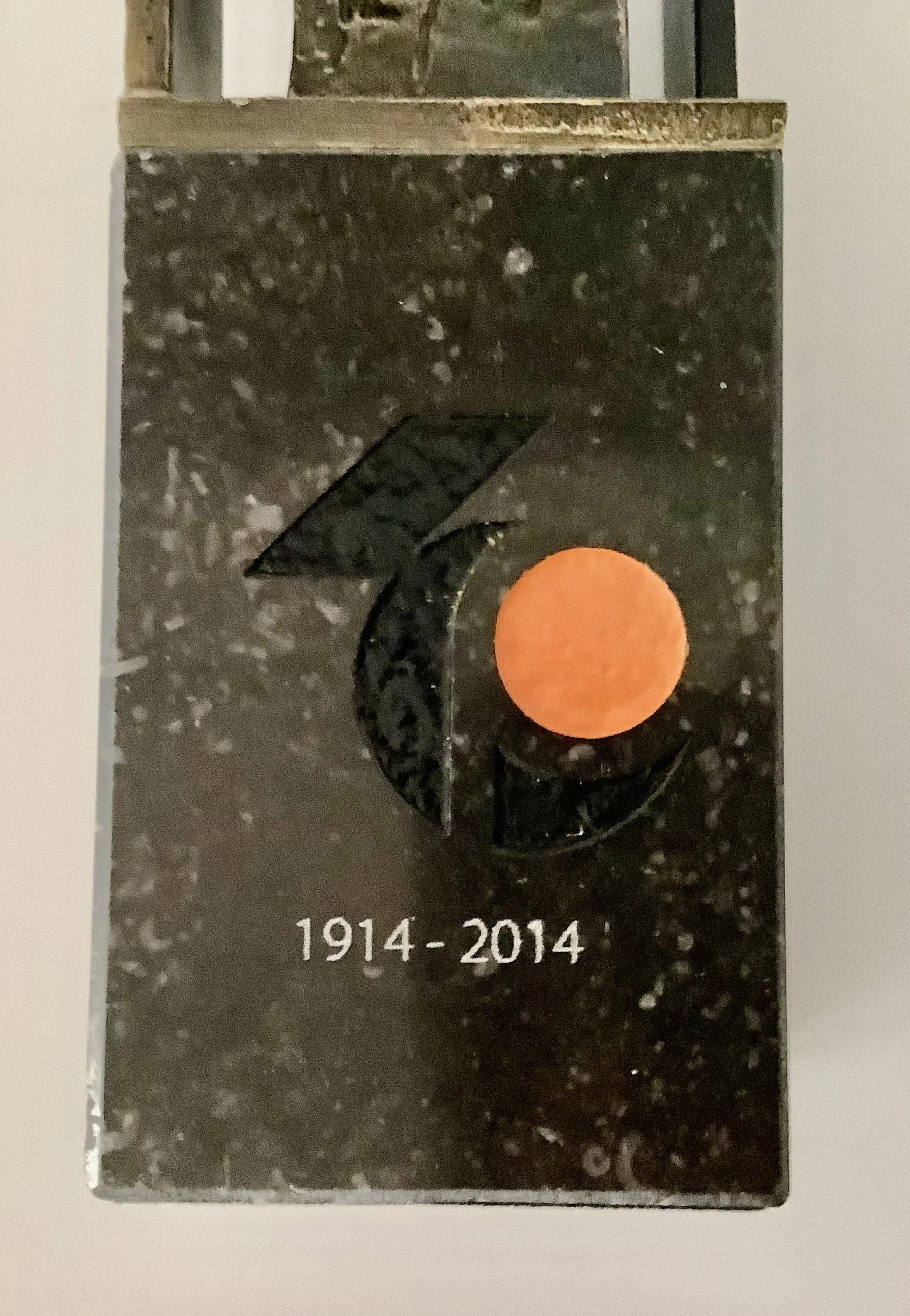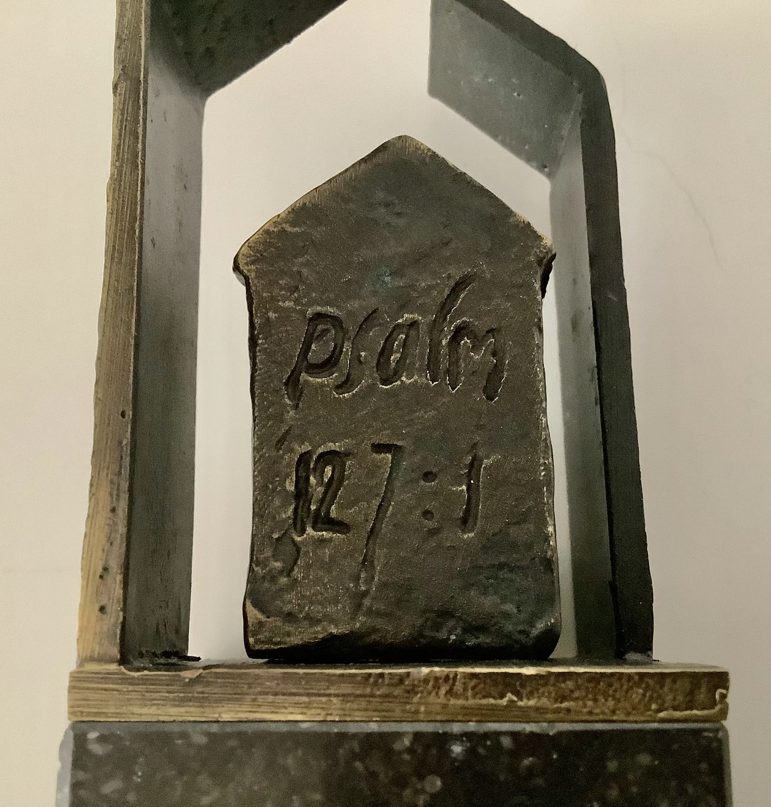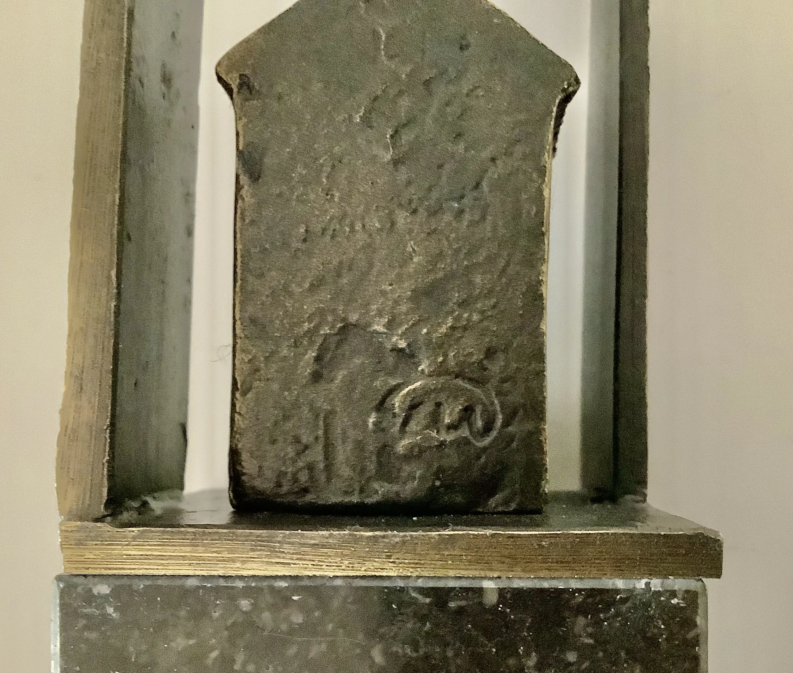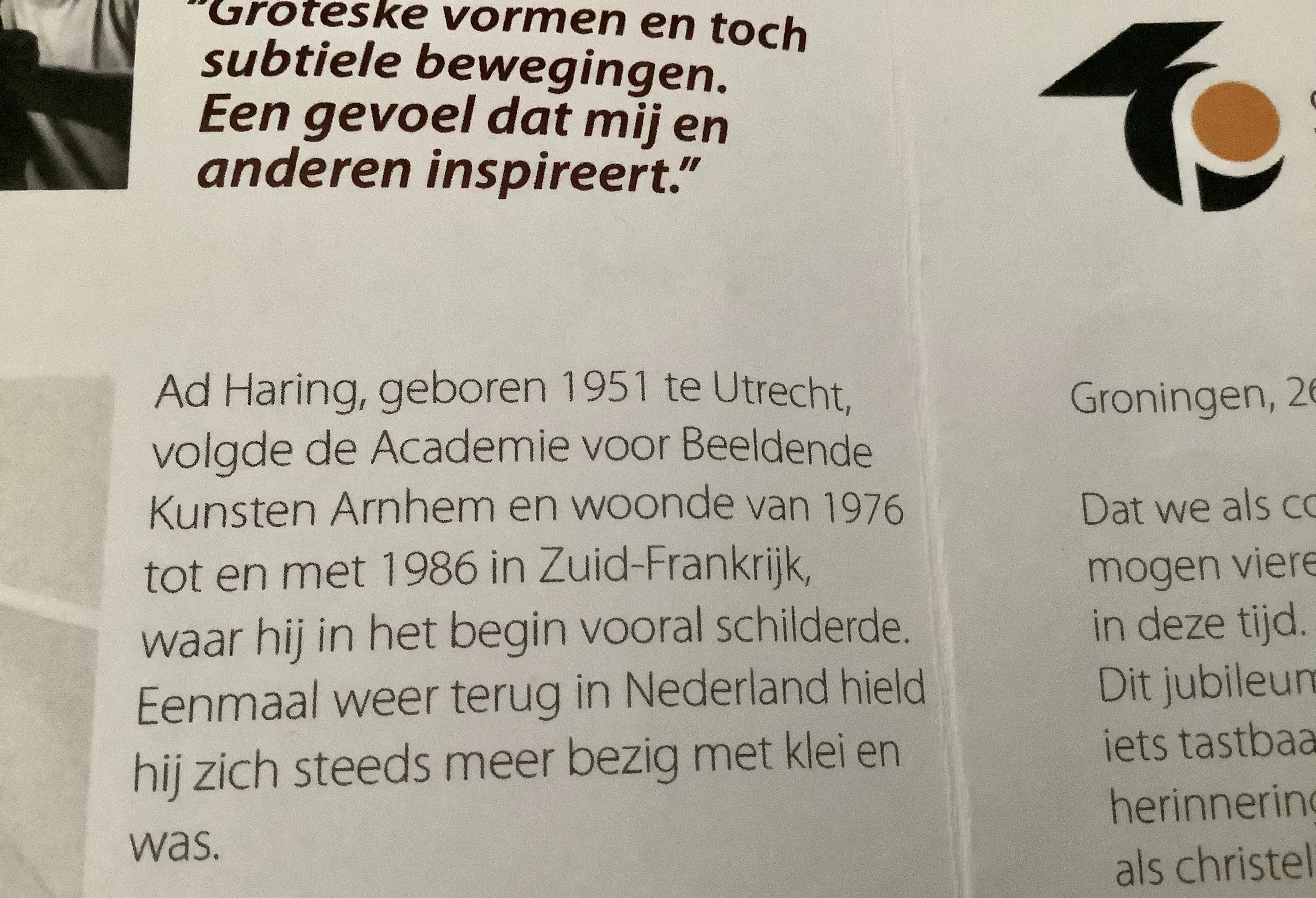 Mooi voorbeeld van werk in opdracht door Aad Haring voor het 100 jarig bedrijfsjubileum van de Christelijke Woningstichting Patrimonium. Fraai symbolisch werk op natuurstenen sokkel. Zwaar object.
