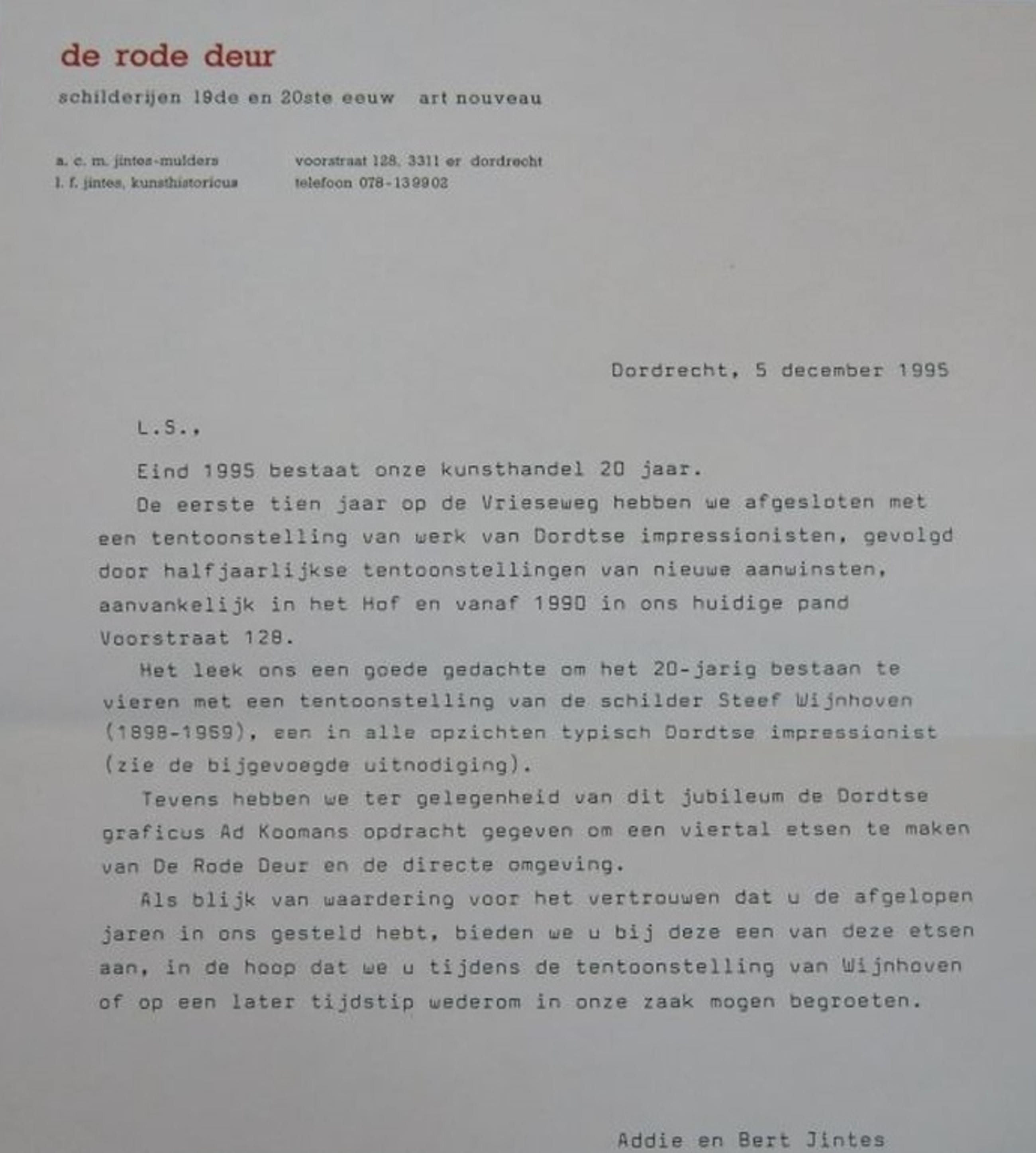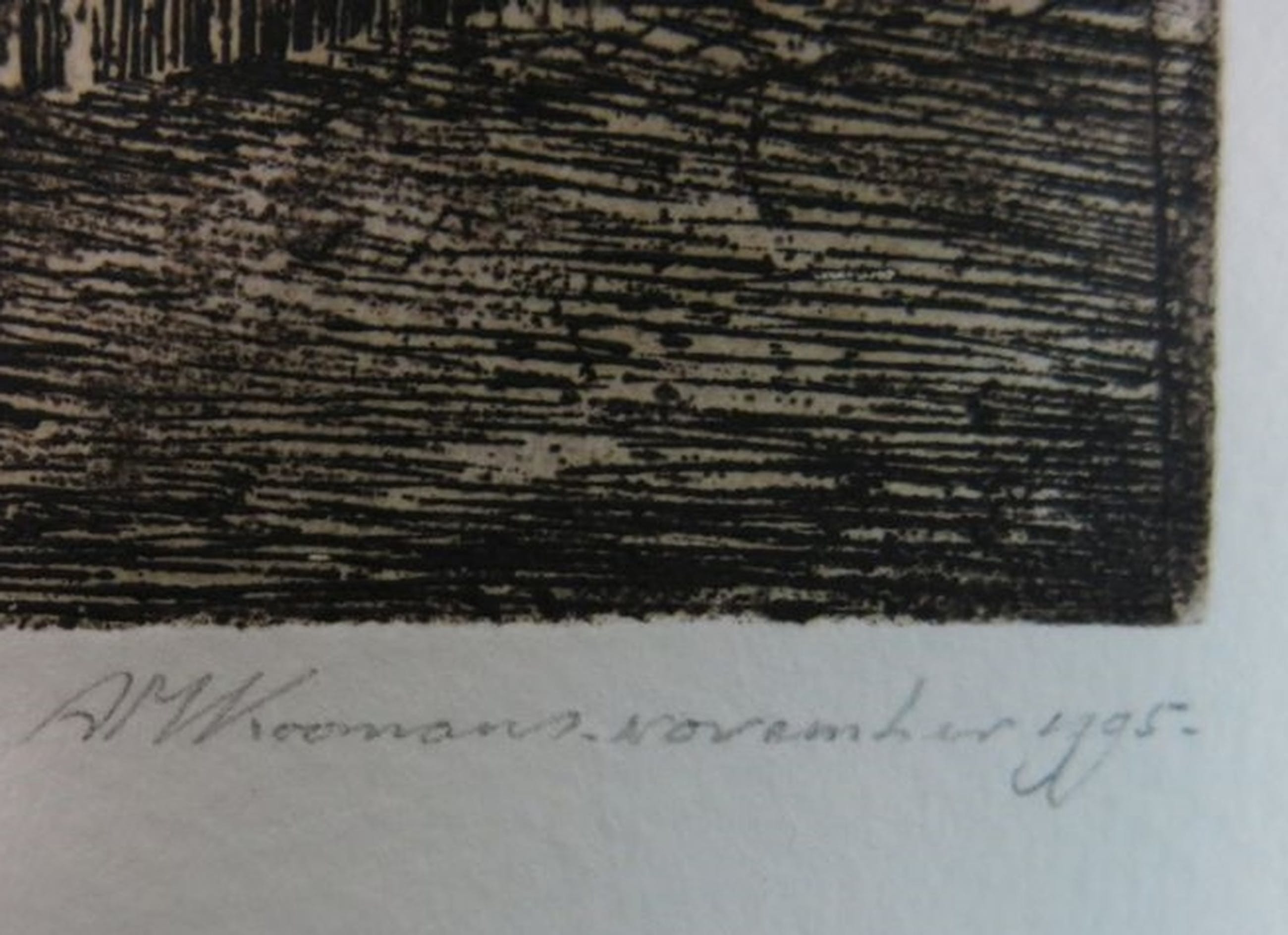 Ets van Ad Koomans inclusief uitnodiging uit 1995 voor de tentoonstelling van Wijnhoven
