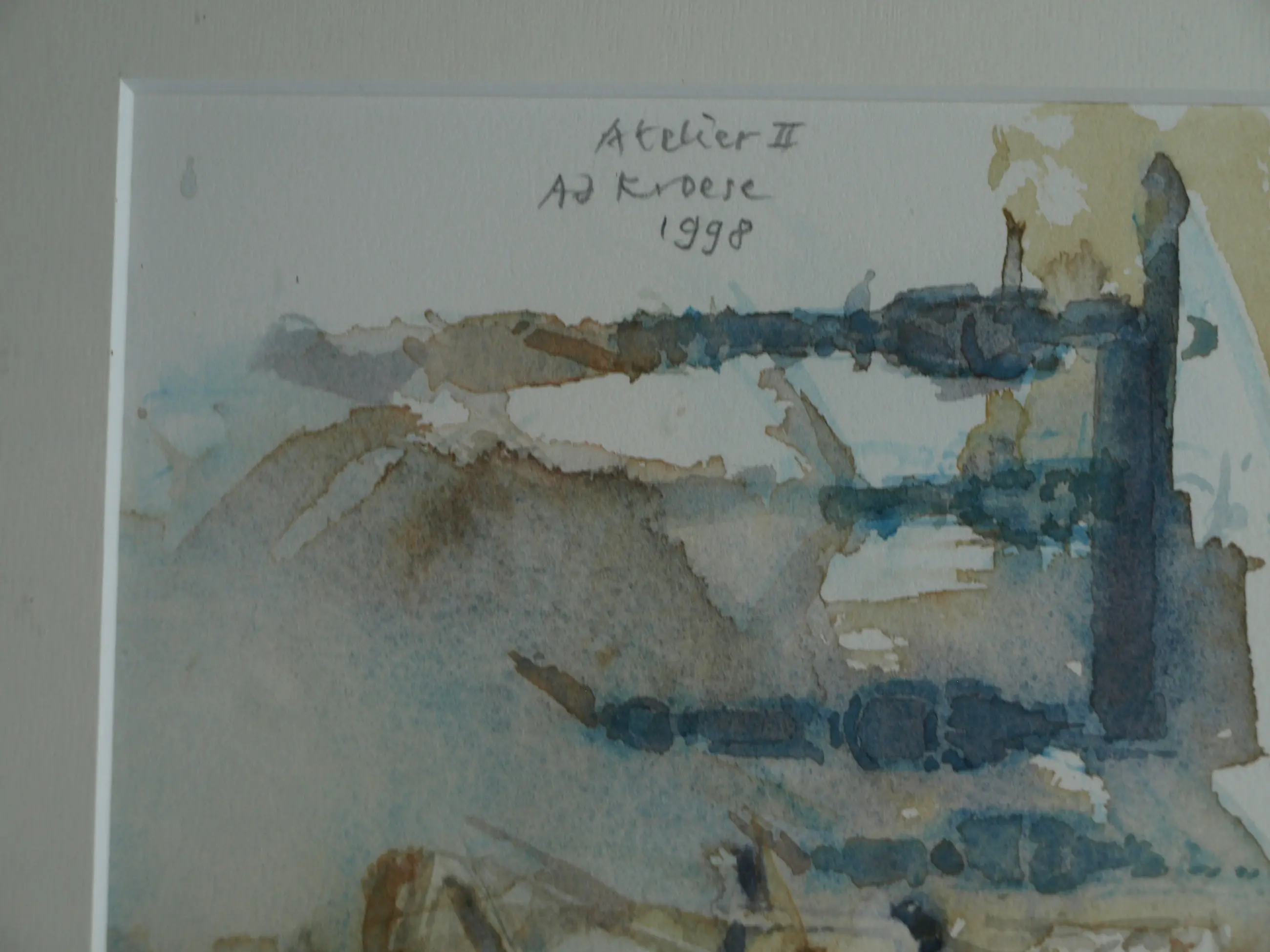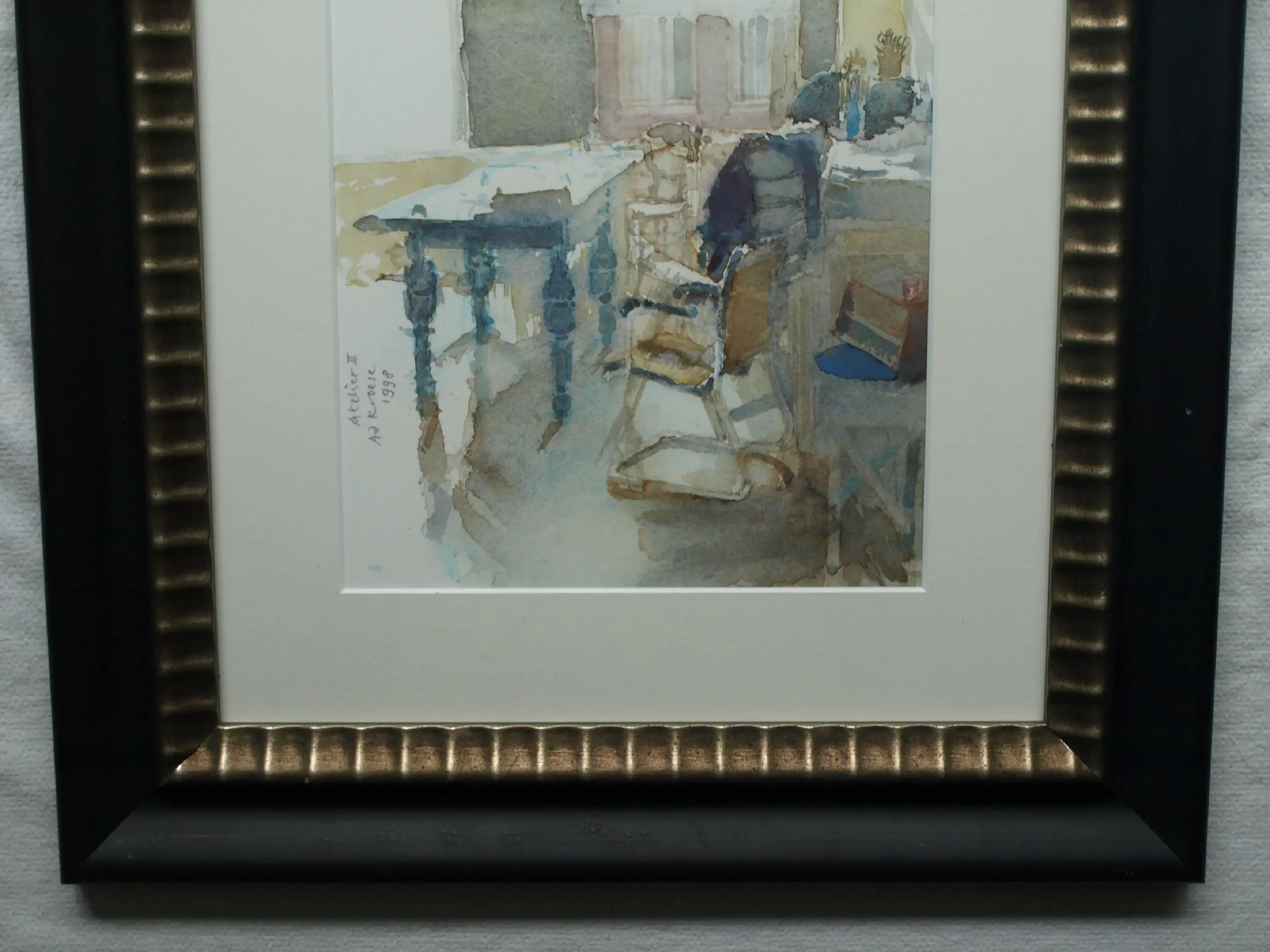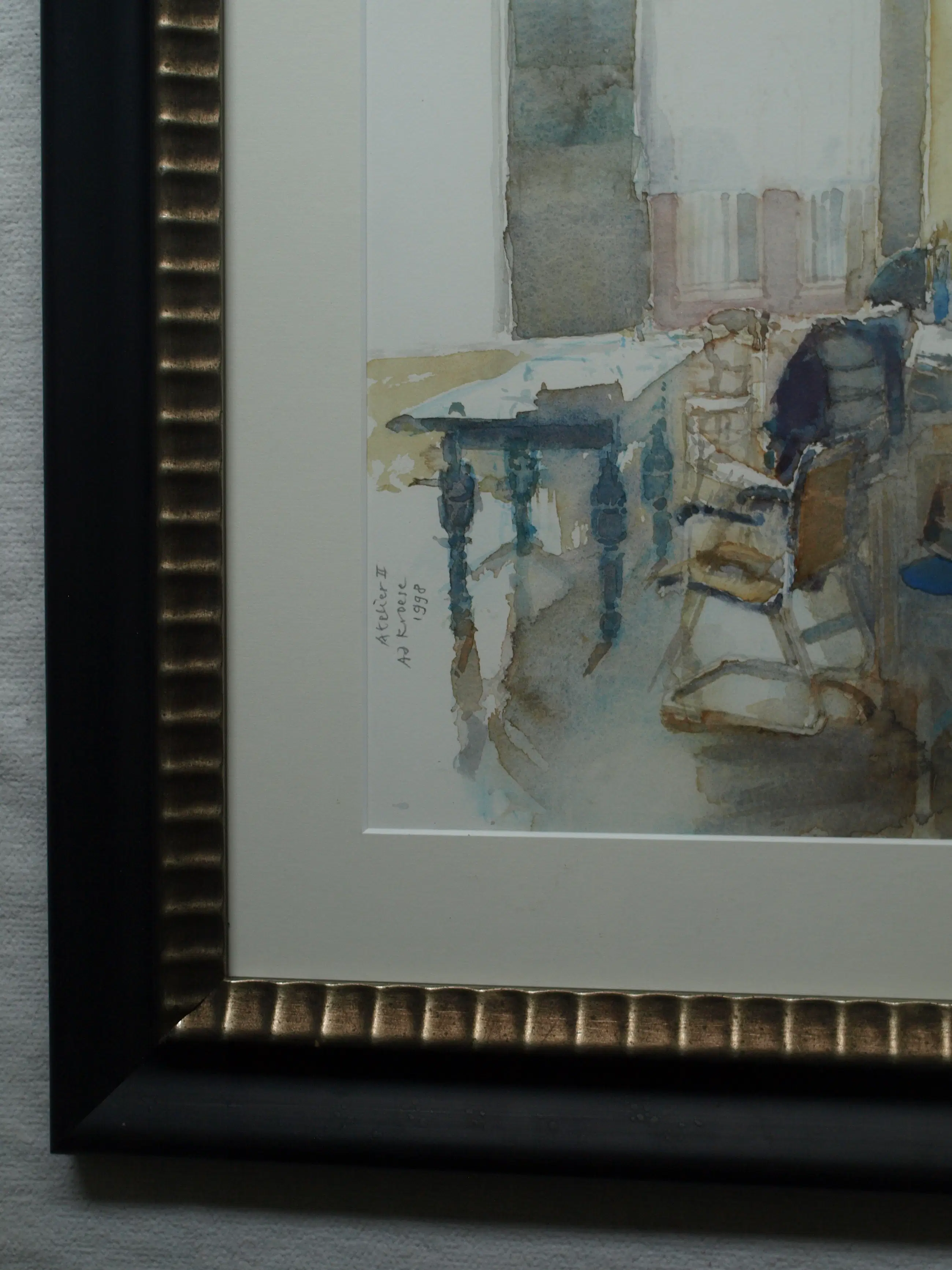 Ad Kroese - Ingelijste aquarel , Atelier II – 1998 - Lijst, 60 x 49 cm.