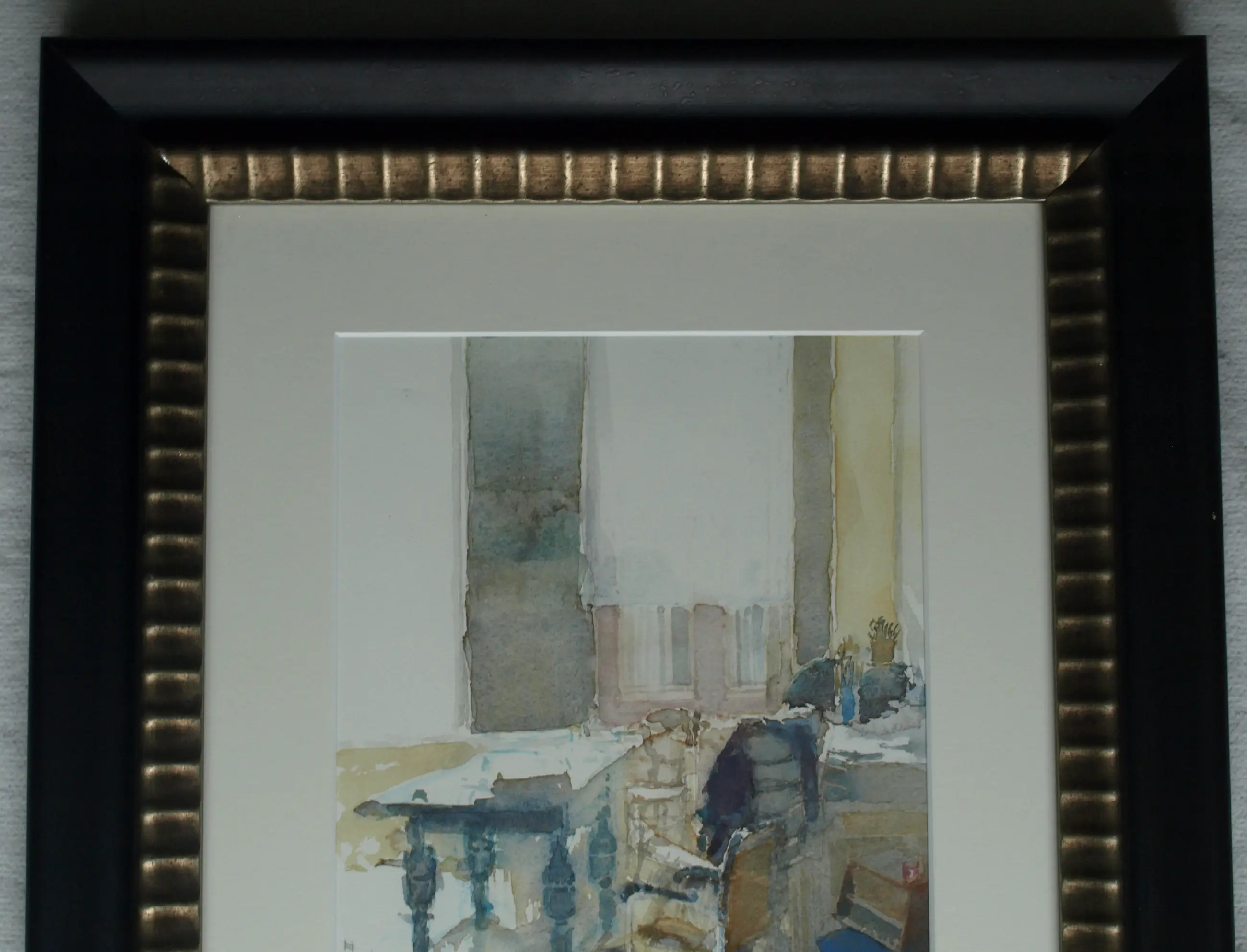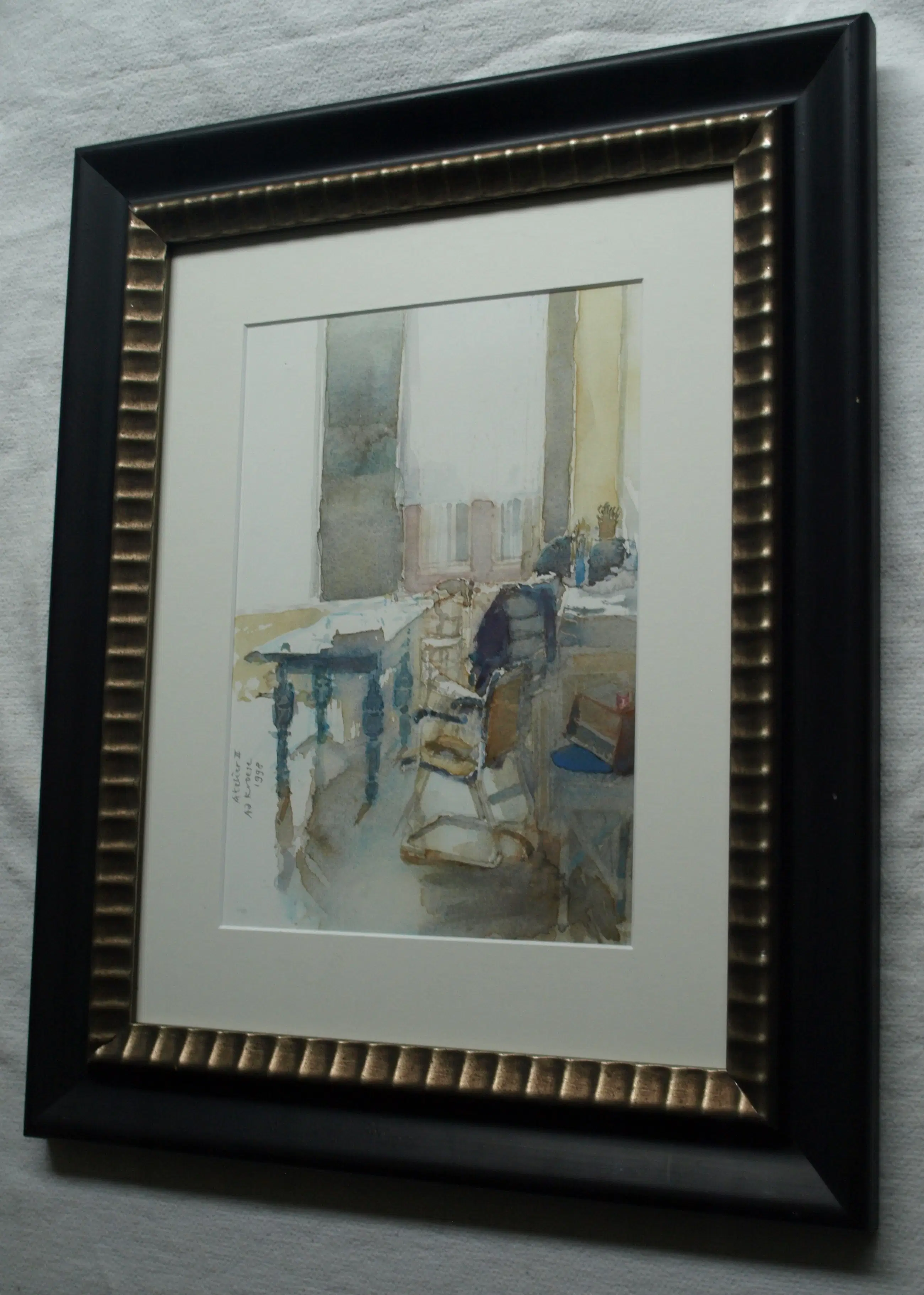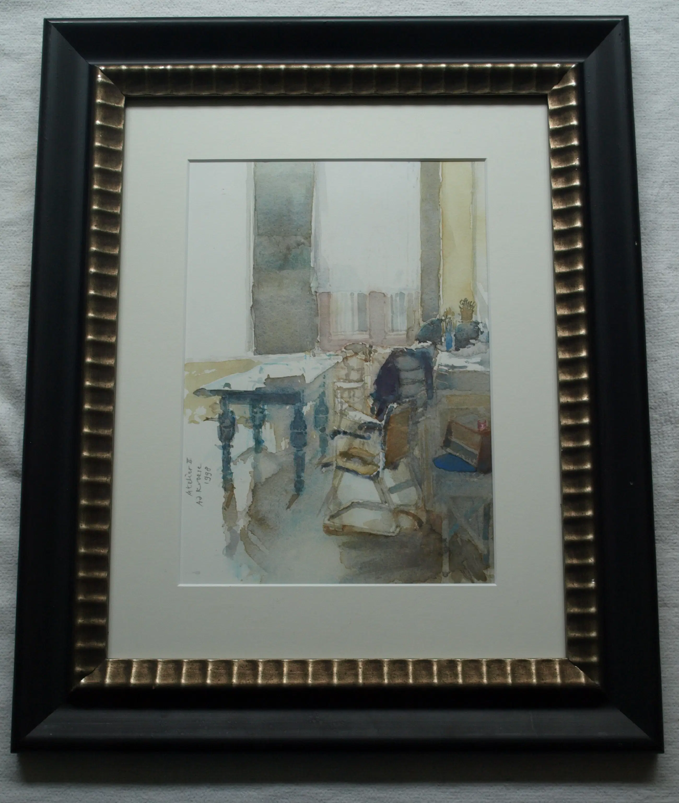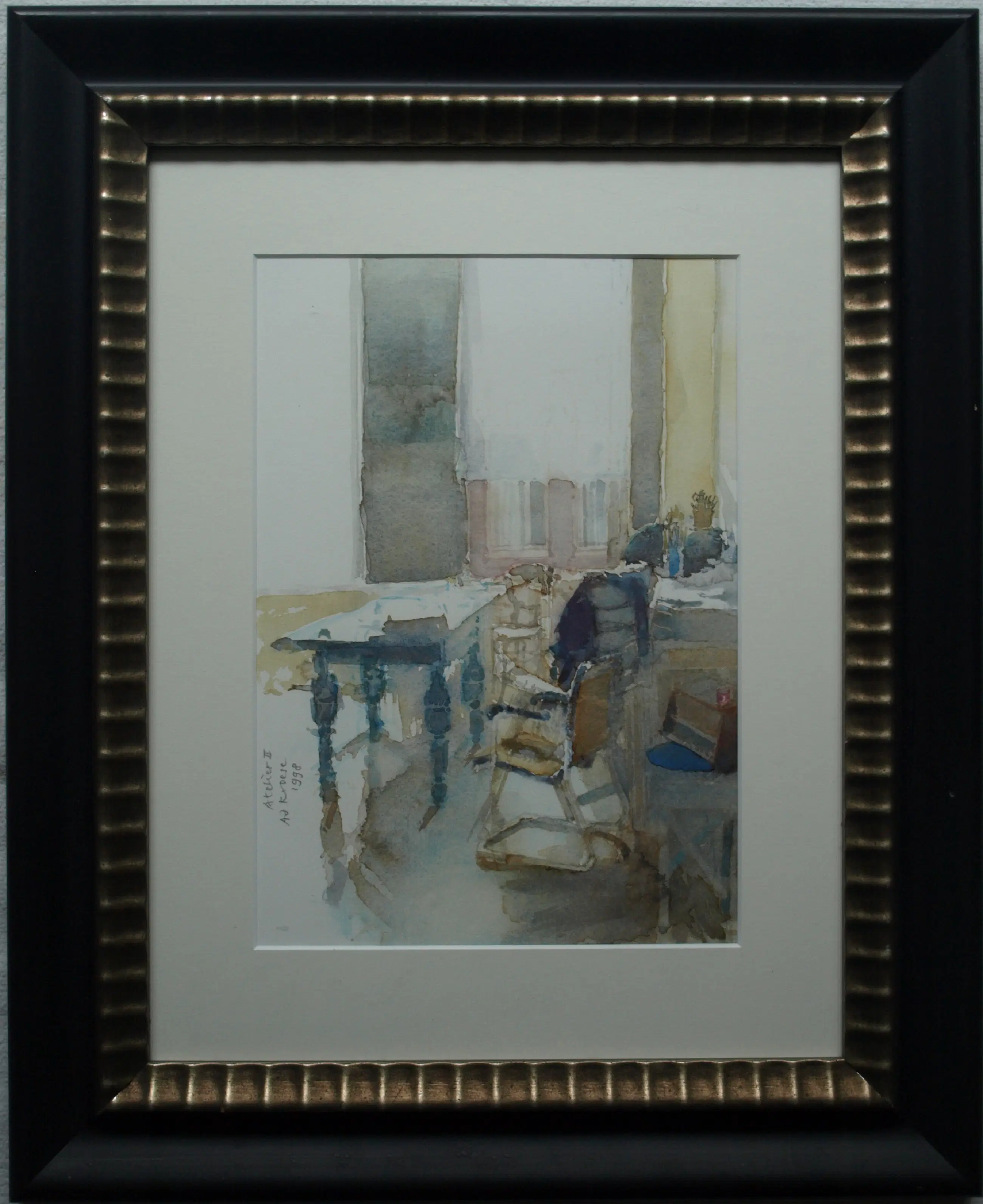 Ad Kroese - Ingelijste aquarel , Atelier II – 1998 - Lijst, 60 x 49 cm.