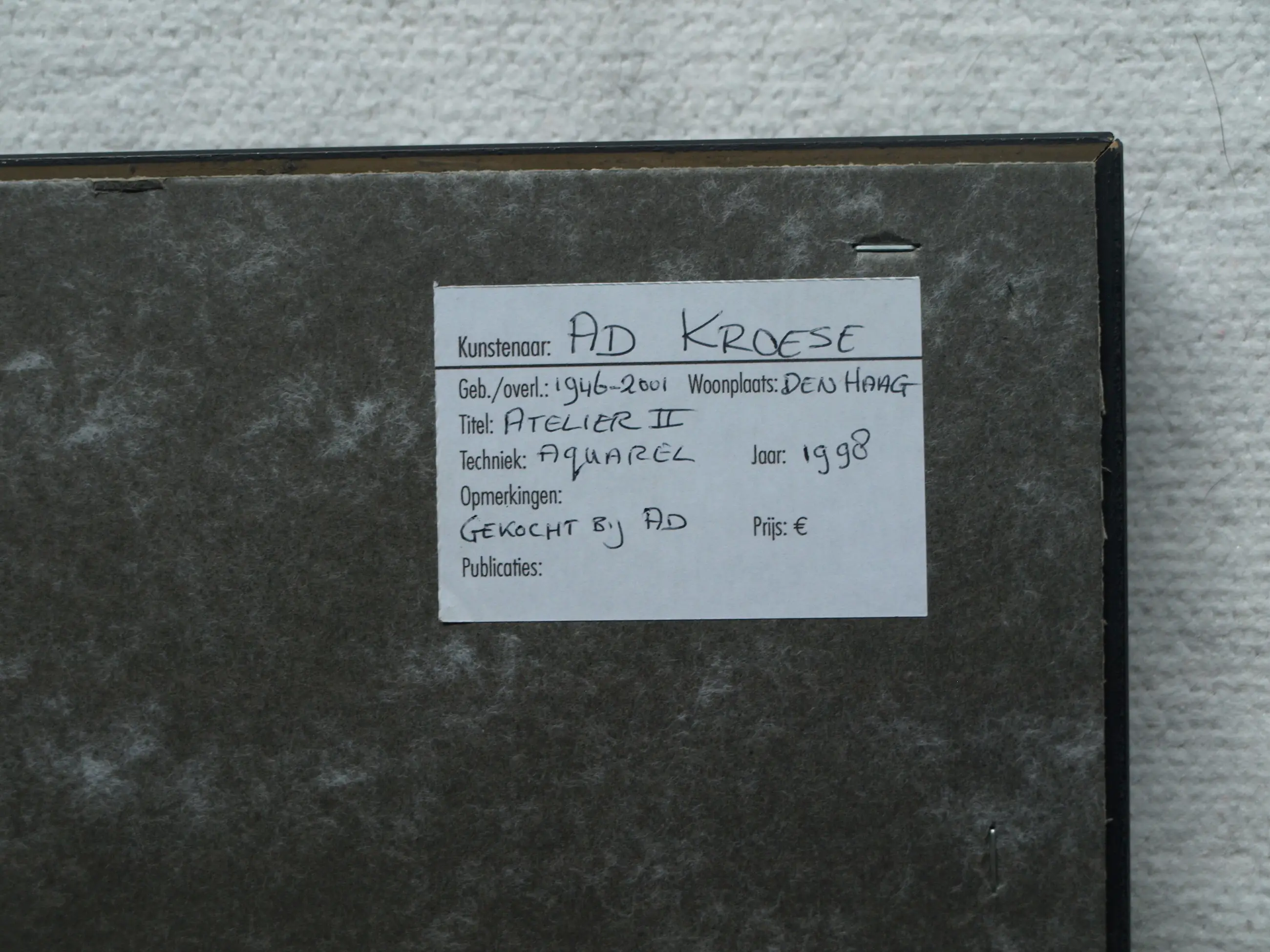 Informatie over de kunstenaar: Ad Kroese (Den Haag, 28 augustus 1946 – Den Haag, 8 juni 2001), aquarellist. -Opleiding: de Koninklijke Academie voor Beeldende Kunsten in Den Haag. Ad Kroese wordt door velen gerekend tot een van de beste Nederlandse aquarellisten. Zijn werk wordt hoog gewaardeerd en is in veel (privé)collecties terug te vinden. Zijn stijl kan als een voortzetting van het gedachtegoed van de Haagse School gezien worden. Zijn focus lag op licht en het spirituele in het wereldlijke. Hij koos zijn onderwerpen uit observaties van zijn omgeving in het dagelijkse leven: interieur, landschap, portret, stilleven. Kroese gebruikte de verf, het water en het papier in al hun mogelijkheden en grenzen om uit te drukken wat hij zag. Hij was lid Schilderkundig Genootschap Pulchri Studio Den Haag en De Haagse Aquarellisten. Ad Kroese ontving meerdere prijzen: o.a. de Voorhoutprijs, de Mesdagprijs, de Haagsche Courant-prijs.