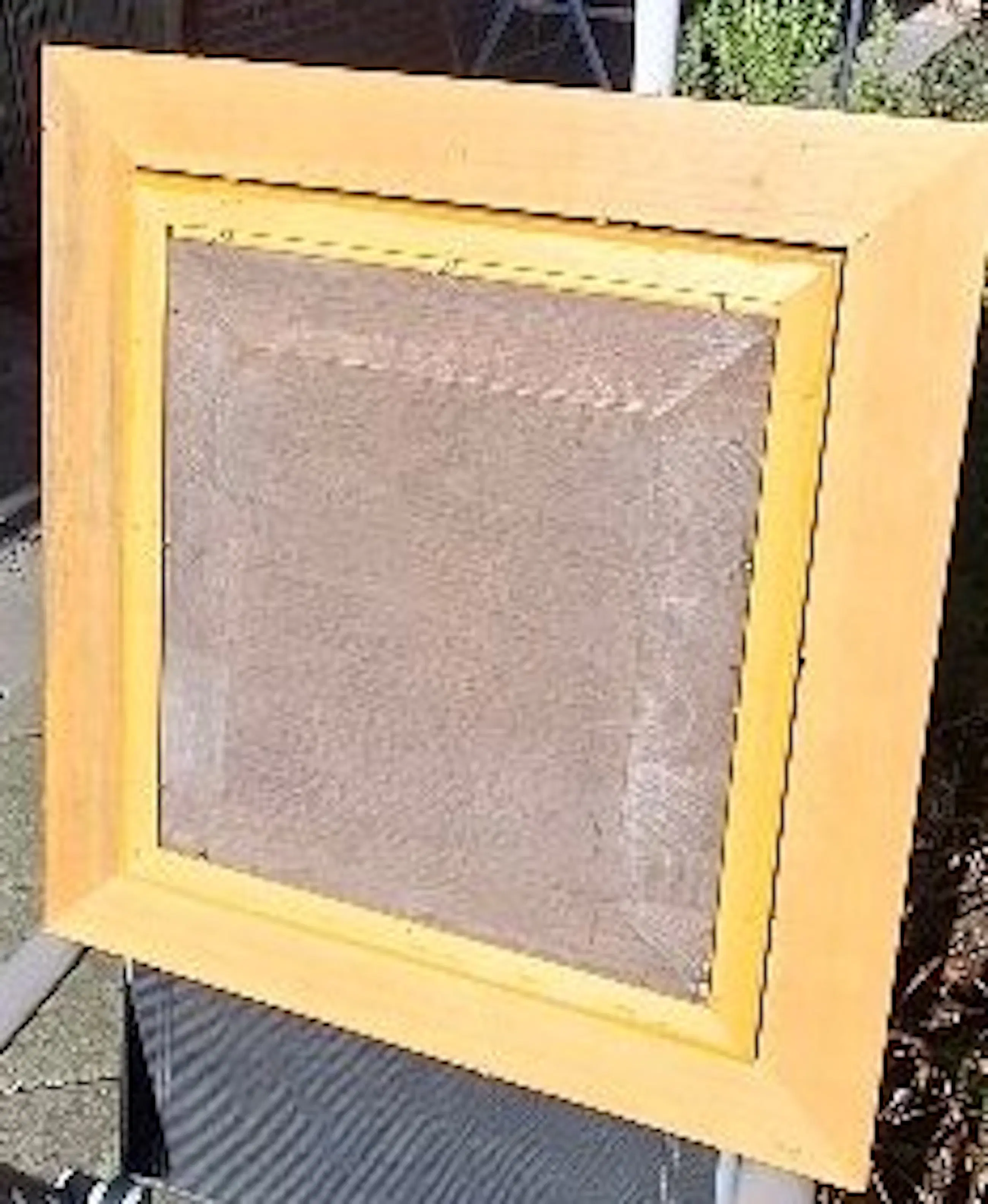 - Het harthouten paneel - volgens mij eikenhout - is in perfecte staat en is 40,5 x 36 groot een flink paneel dus de lijst heeft een paar slijtsporen wat zo weggewerkt kan worden met wat was .