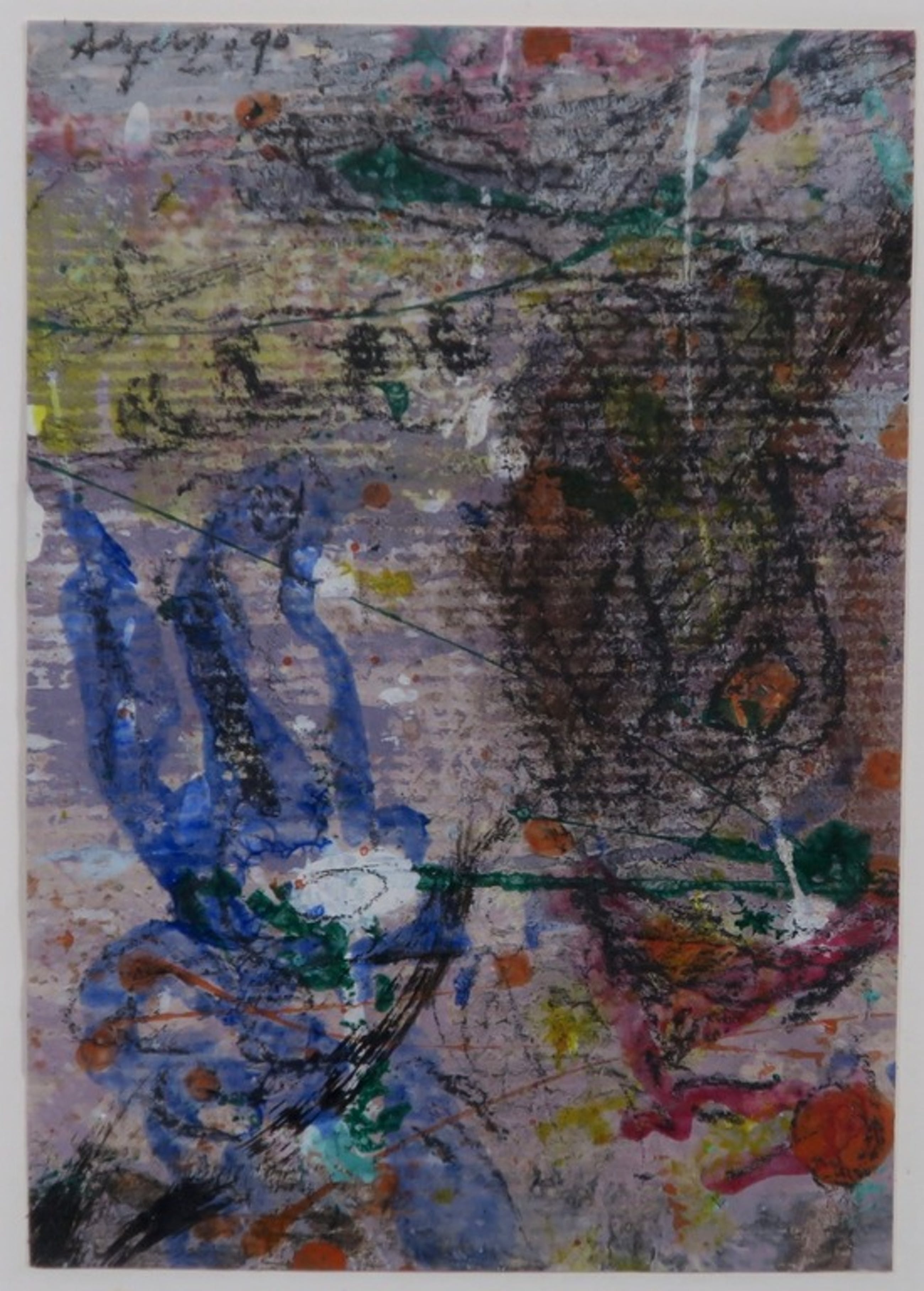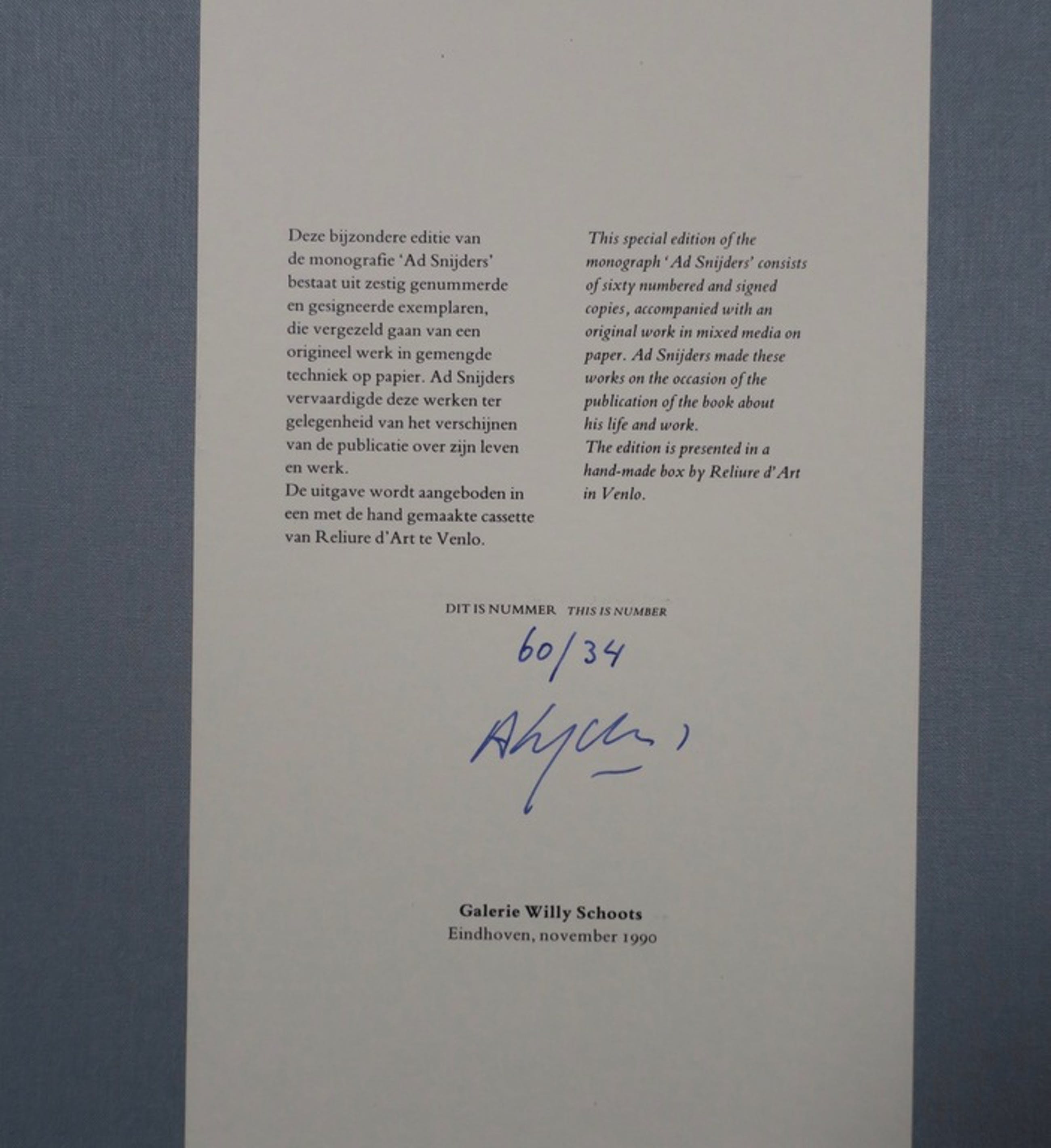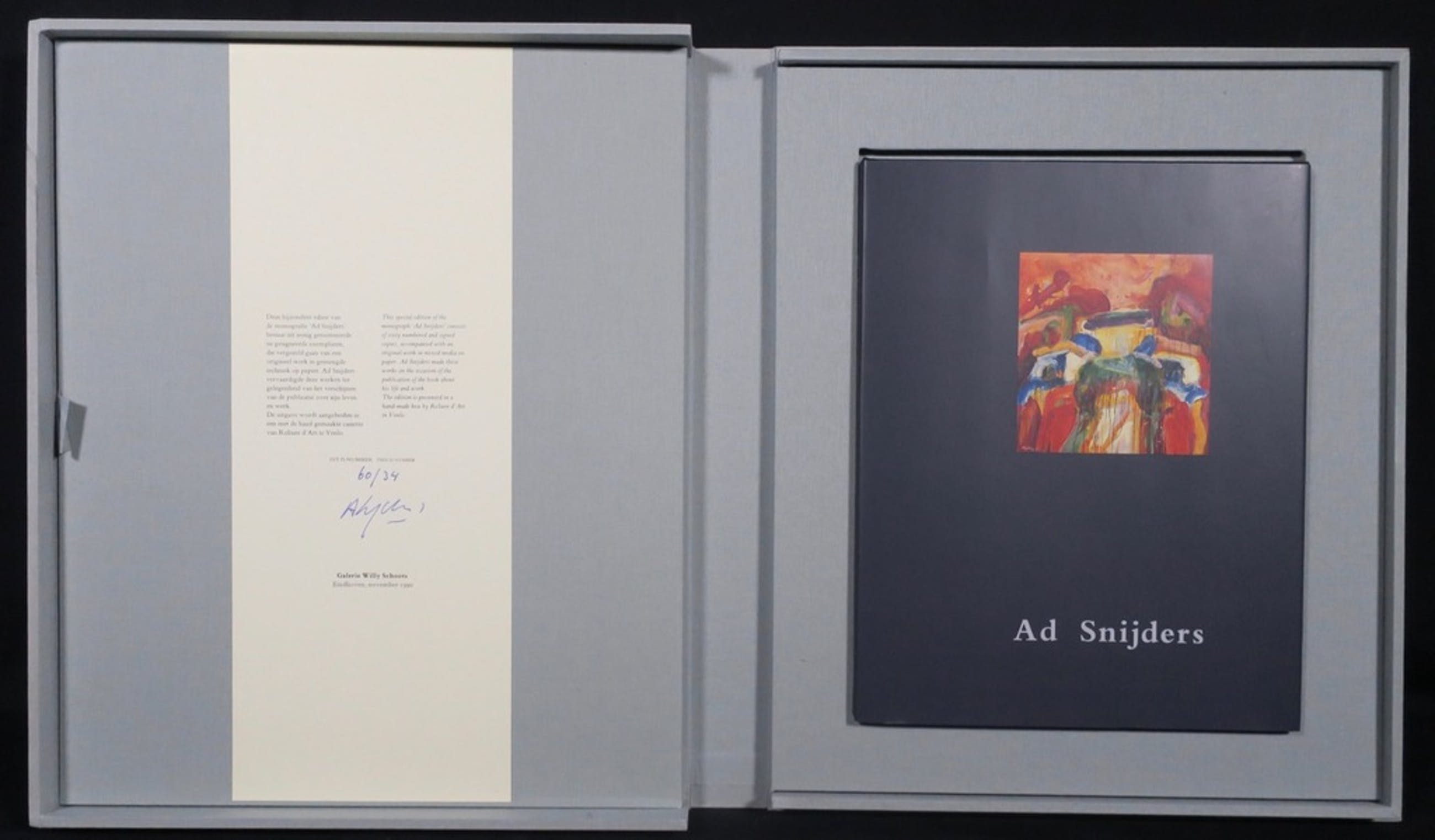 Bijzondere uitgave: Monografie + origineel werk in gemengde techniek in een zwart lijstje tezamen in bijbehorend portfolio