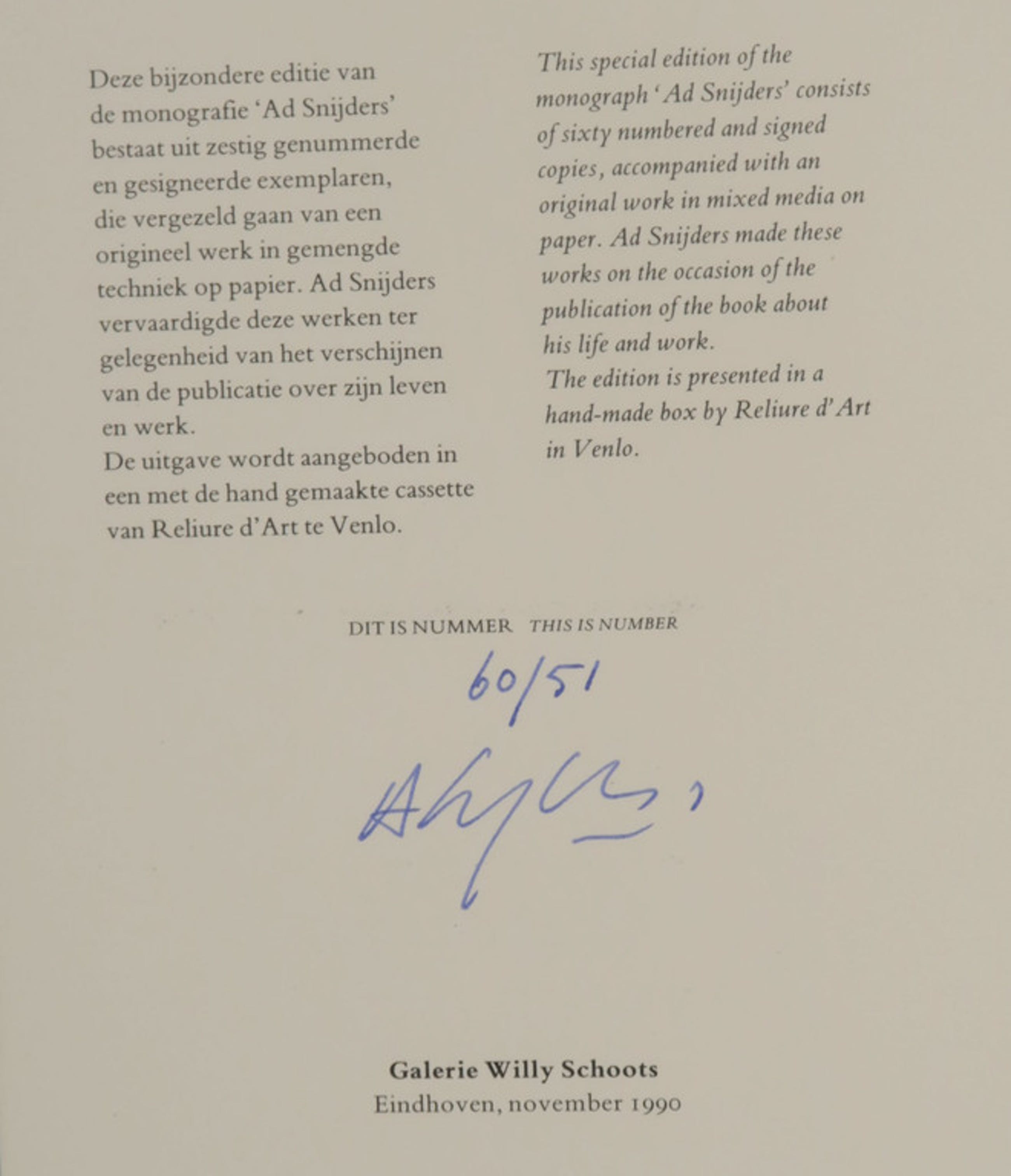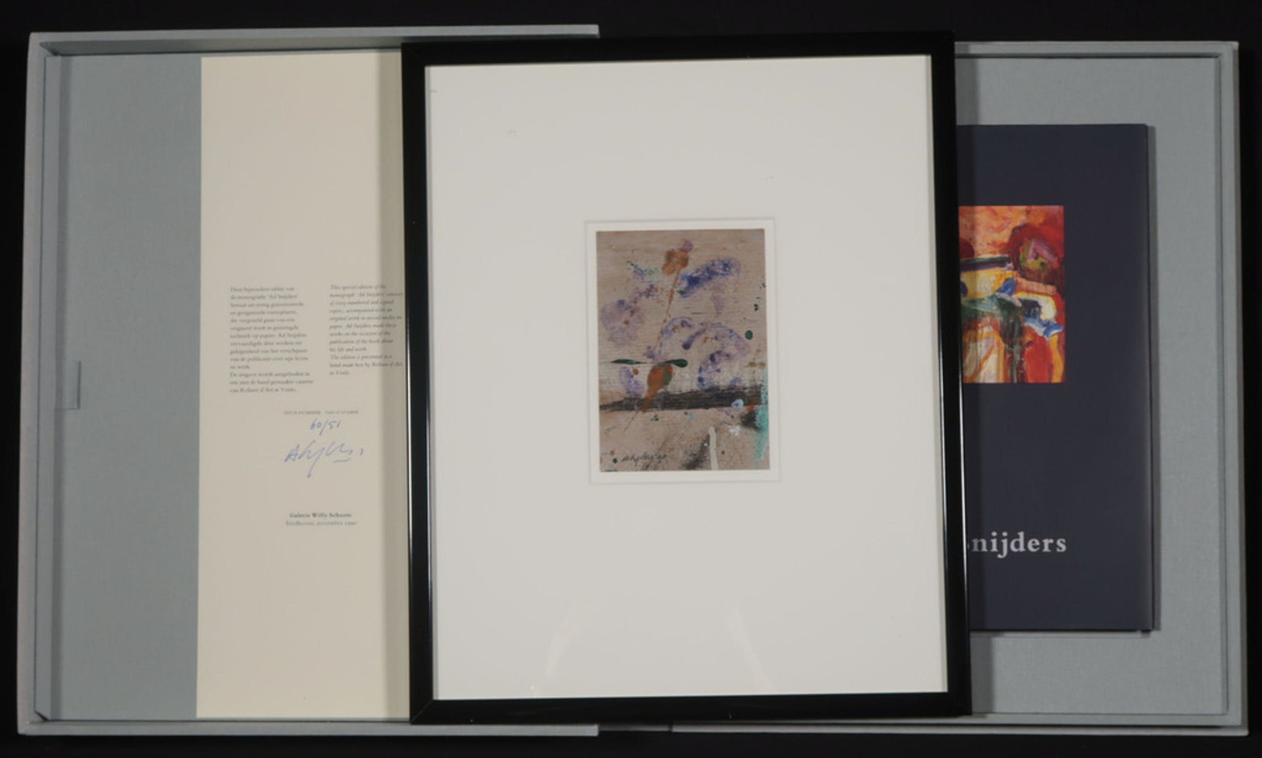 Bijzondere uitgave: Monografie + origineel werk in gemengde techniek in een zwart lijstje tezamen in bijbehorend portfolio