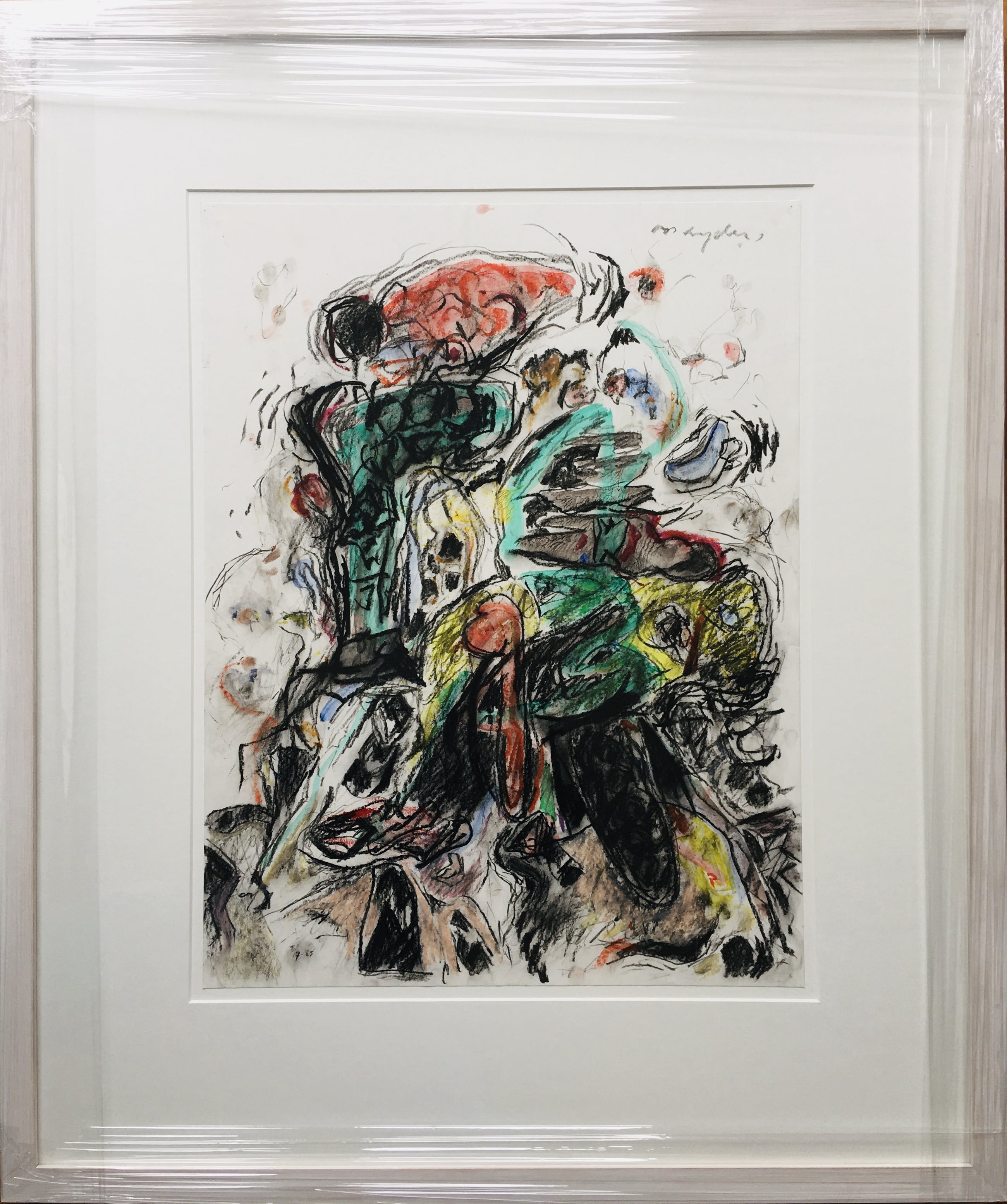 Een zeer fraaie gemengde techniek op papier van Ad Snijders uit 1985. Het werk is gesigneerd en gedateerd en in zeer goede conditie. Fraai ingelijst in houten white wash lijst.