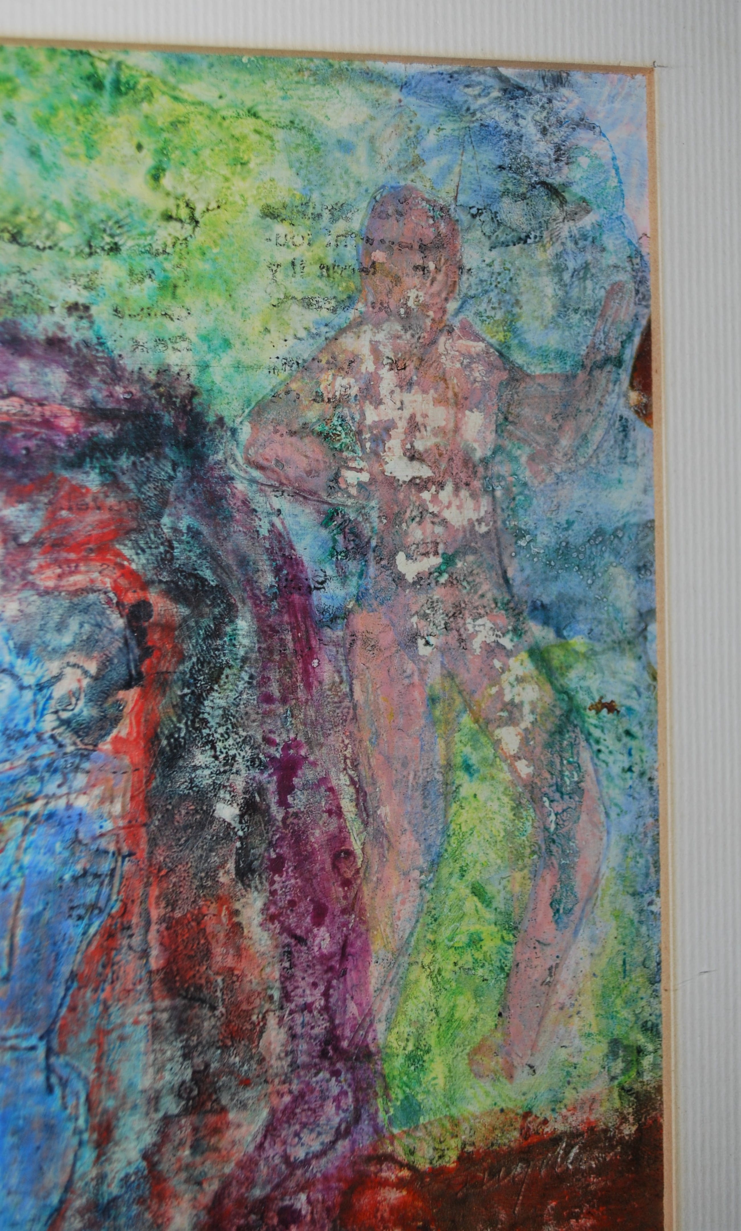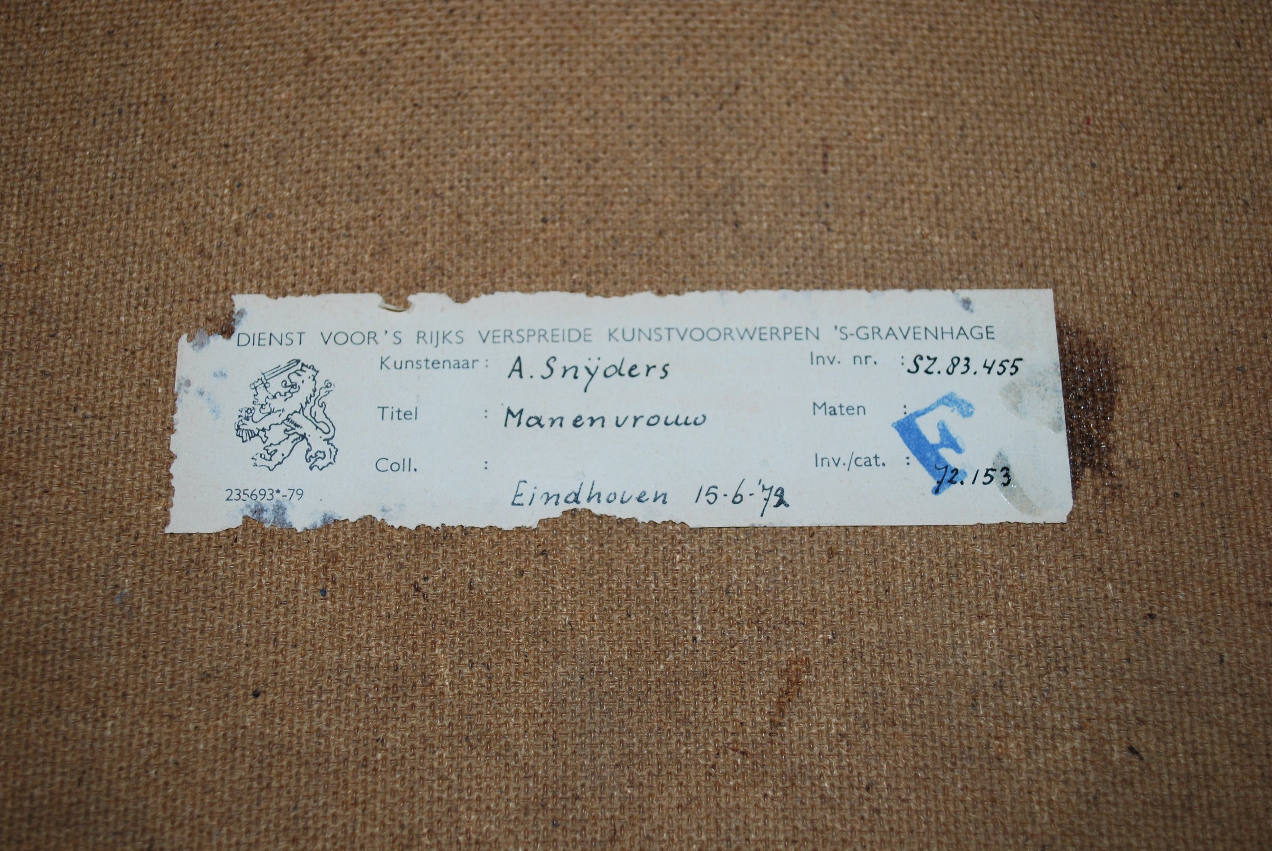 Signatuur en titel aan de achterkant op het steunboard en mogelijk ook op het werk zelf