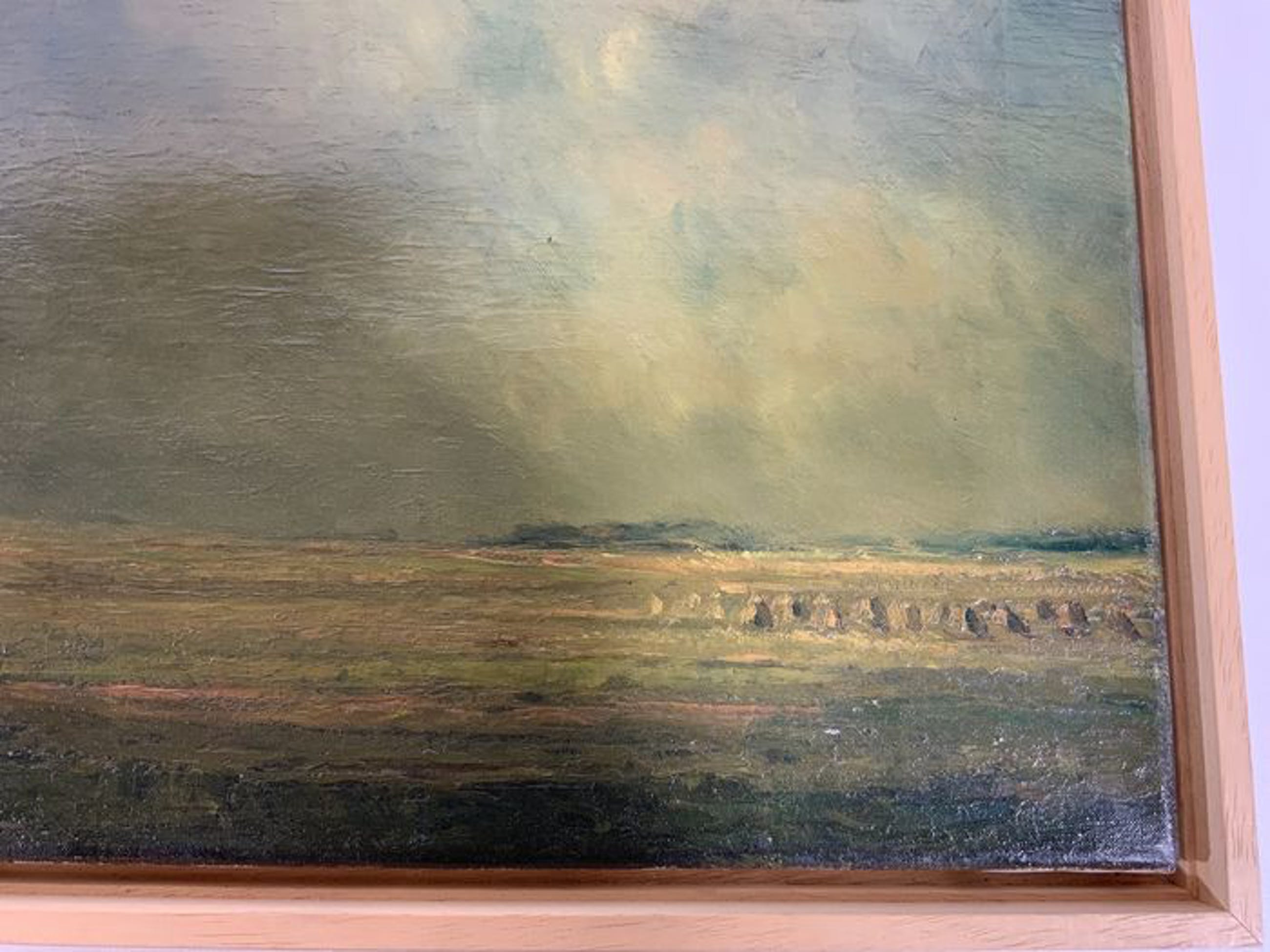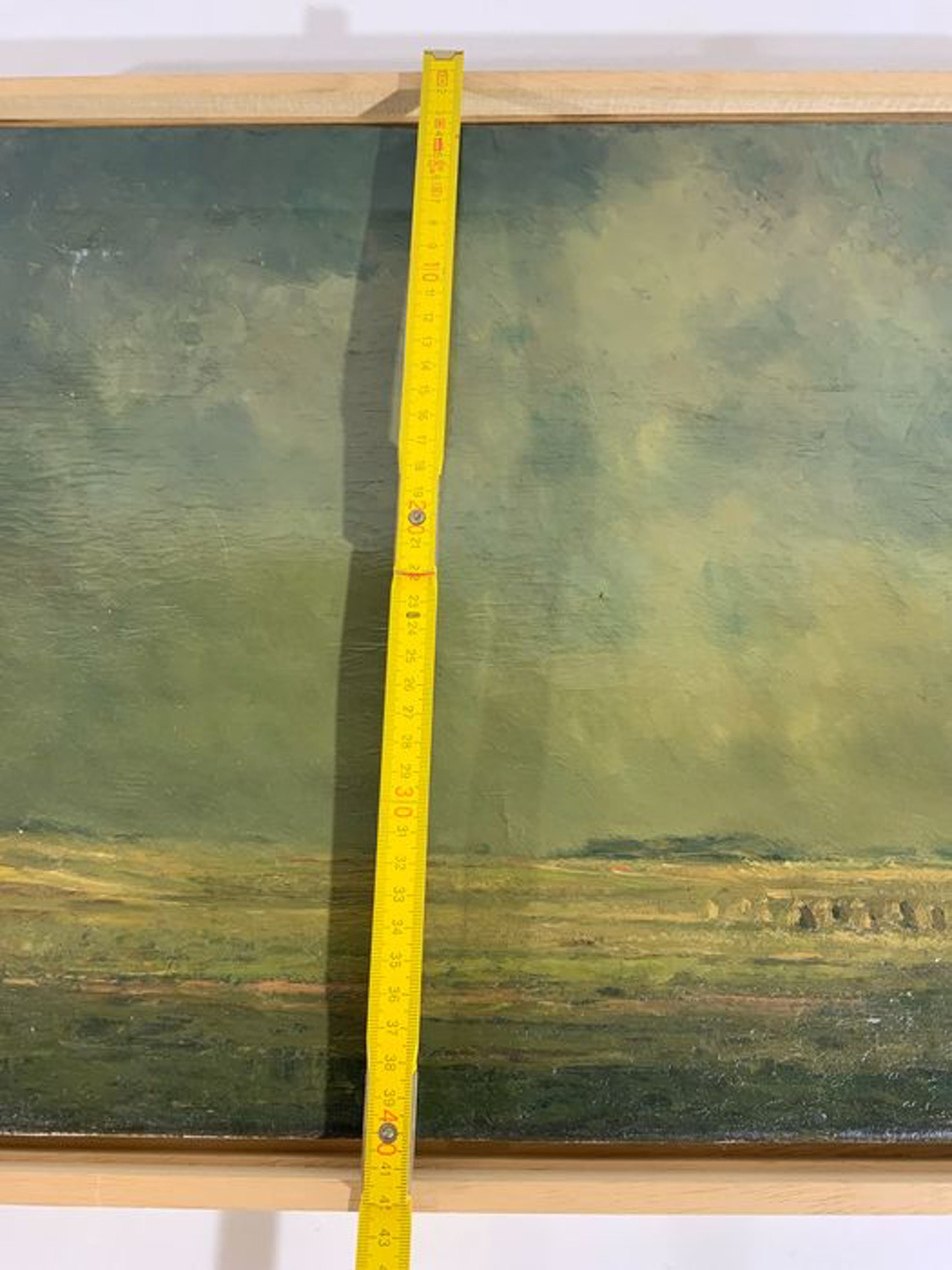 Ad van der Kop (1901 - 1963) Weids landschap met een flinke wolkenpartij erboven - olieverf op doek - ongesigneerd . Sfeervol werk met een warm kleurenpalet van Ad van der Kop .
