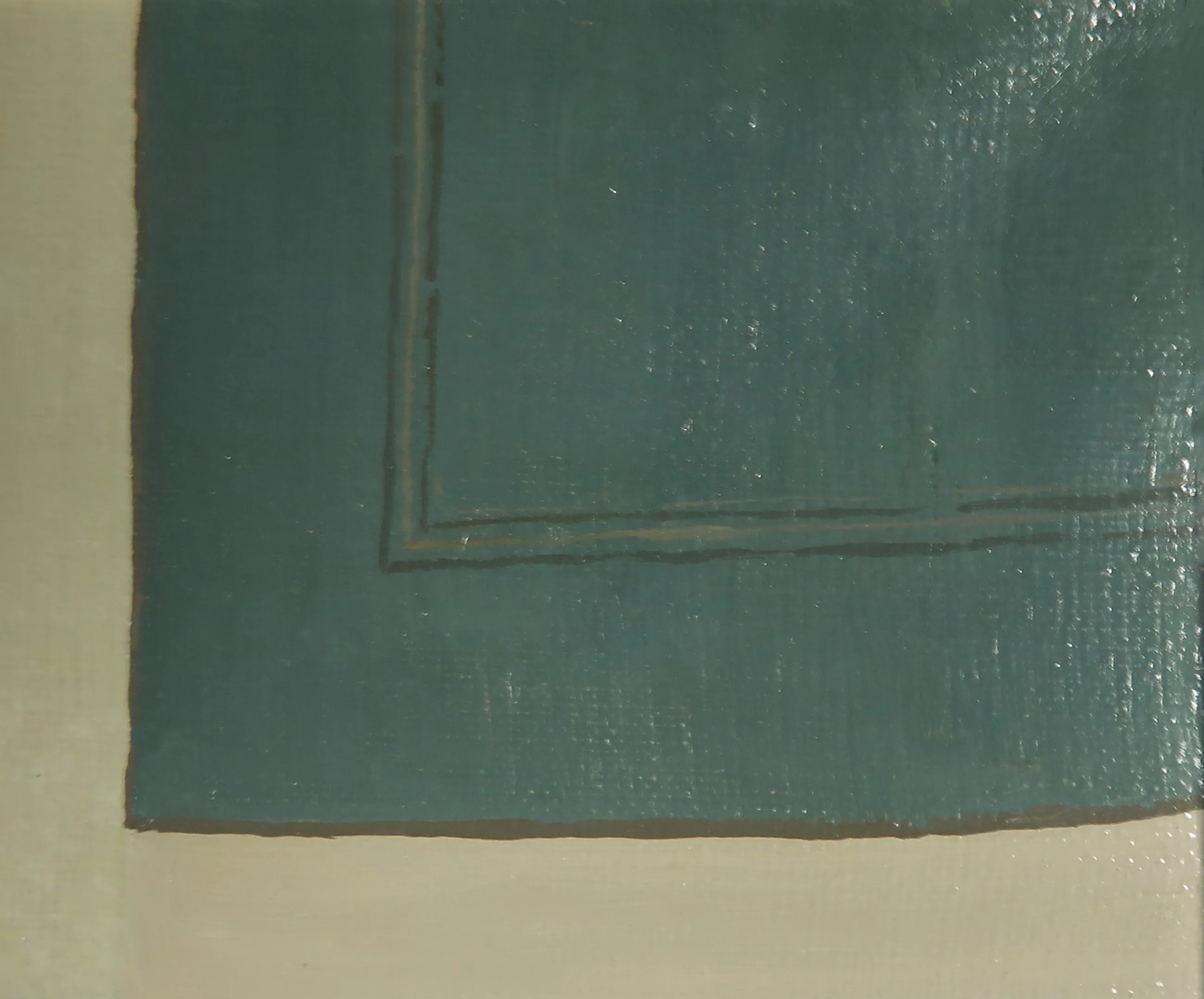| Het werk zit deels los in de lijst. Ook heeft de ijst enige beschadigingen opgelopen. Maar kleine krasjes en plekjes te zien in de voorstelling, maar over het algemeen in goede staat. In de rechter- en linker bovenhoek is een golving in het canvas te zien. | |