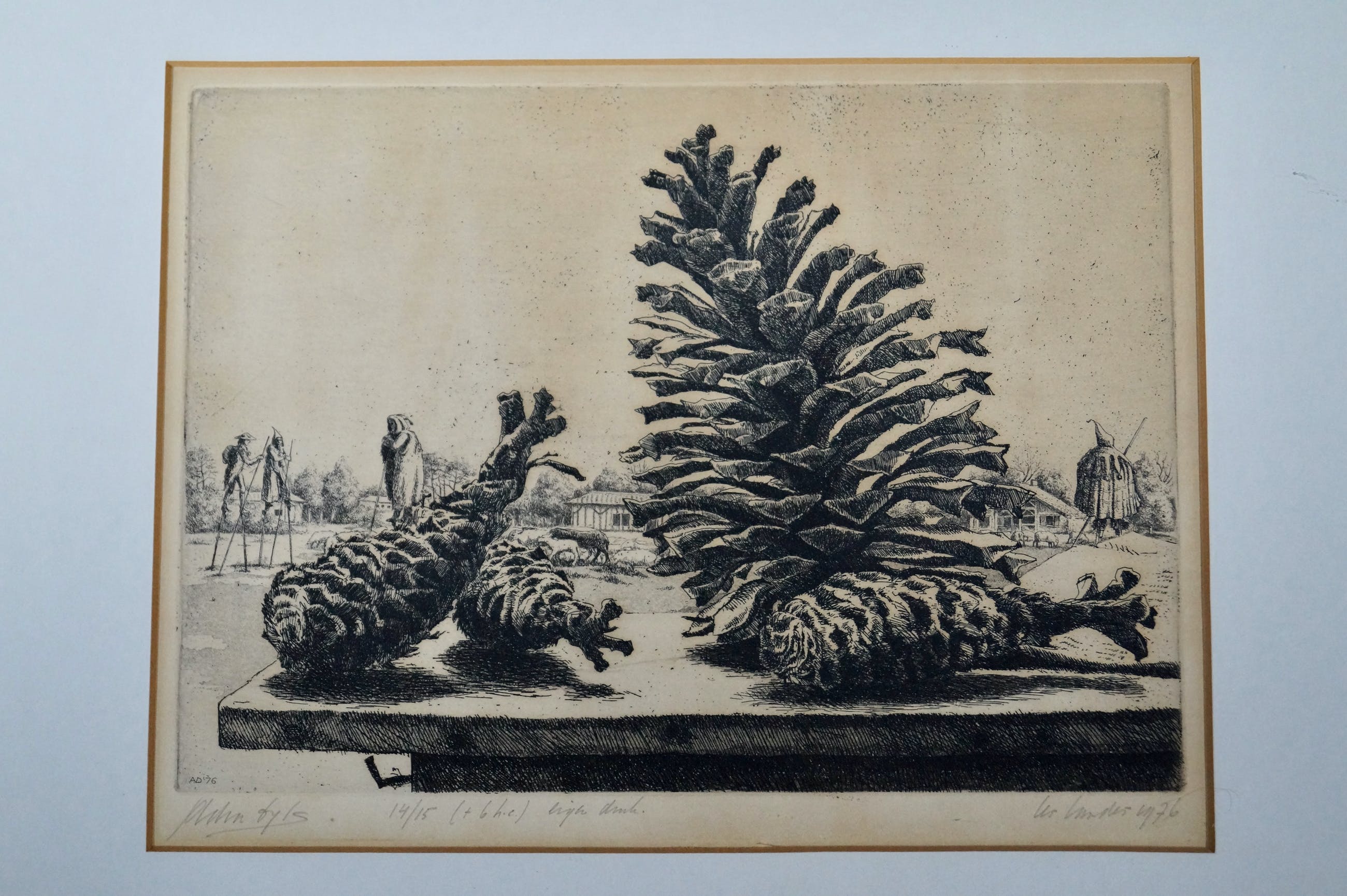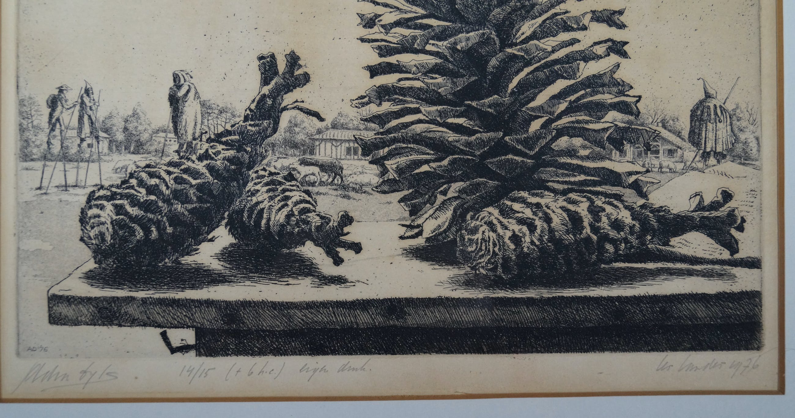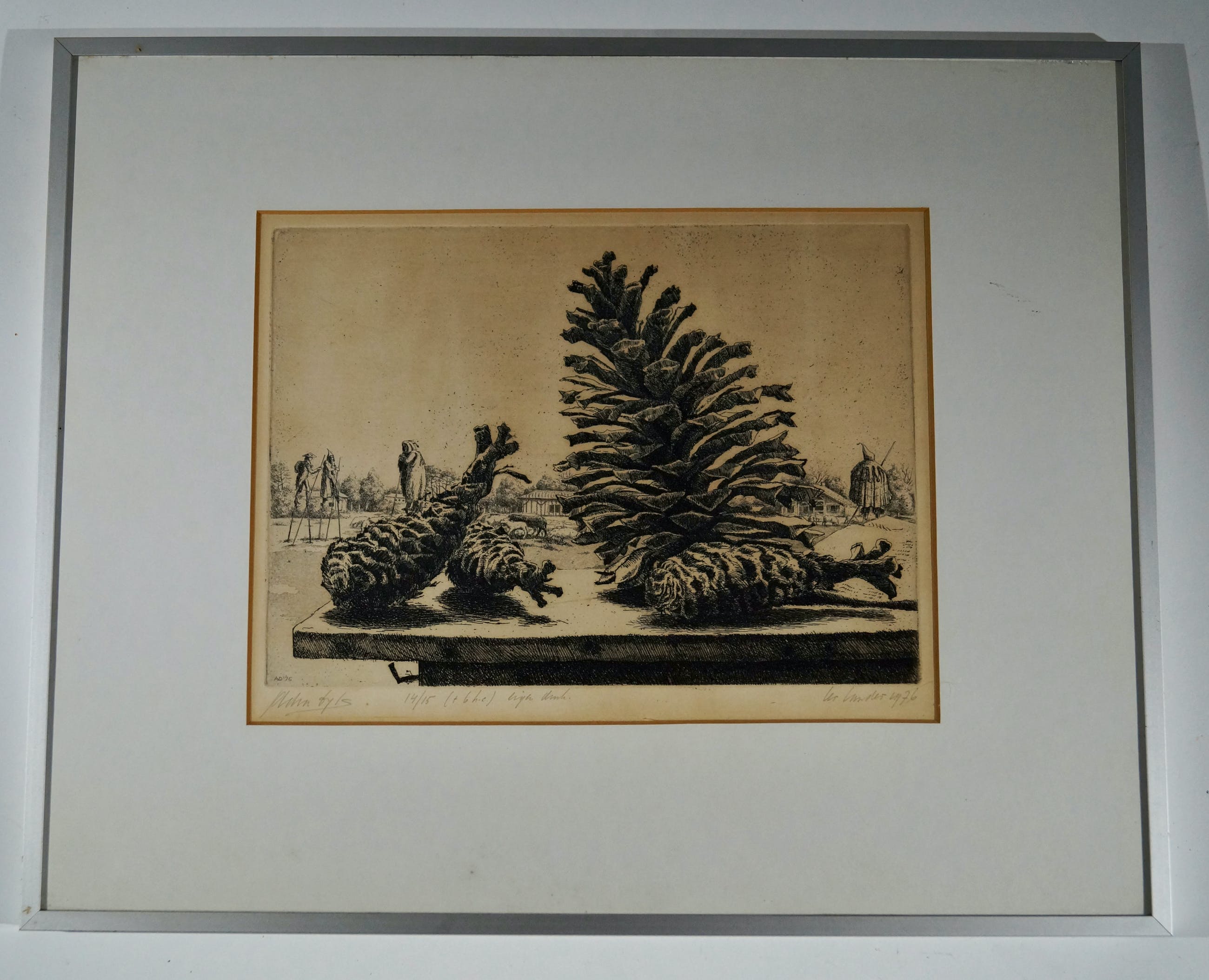 Zijn werk heeft vaak een surrealistisch thema en is heel precies uitgewerkt. binnen het passe partout is deze ets 24 x 31 cm mooi ingelijst achter glas in aluminium lijst