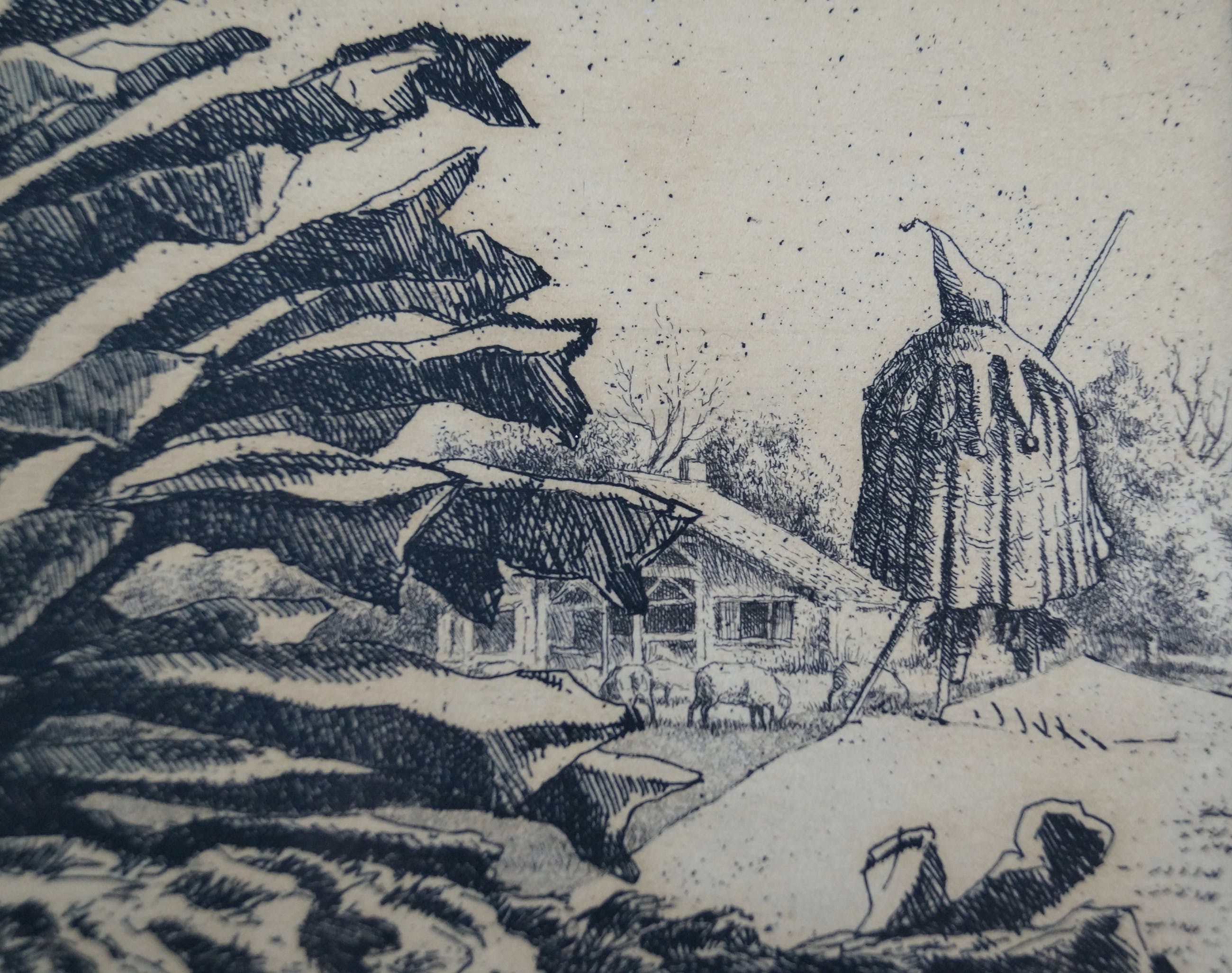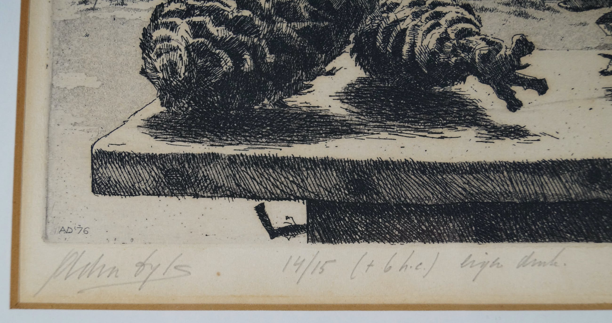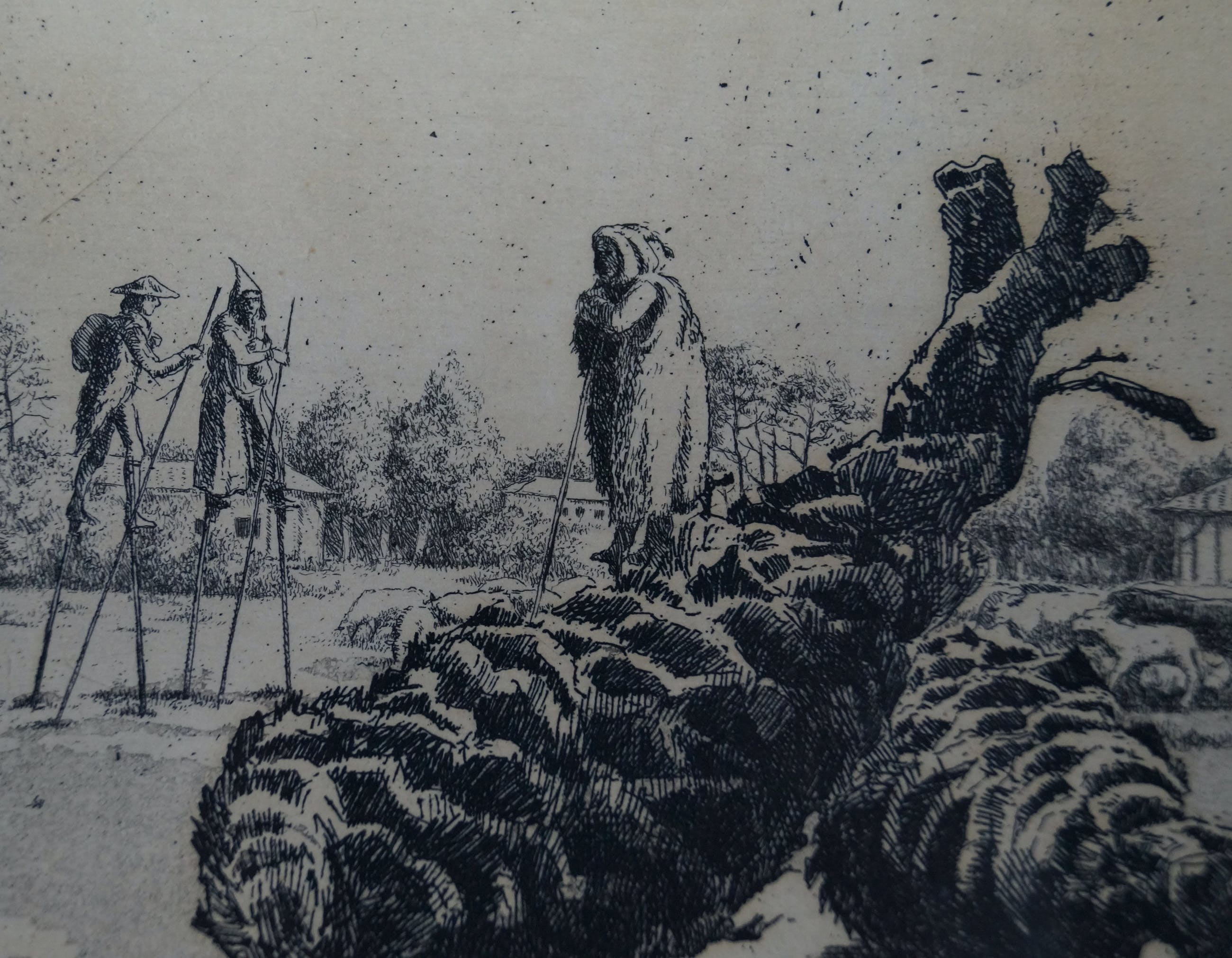 Zijn werk heeft vaak een surrealistisch thema en is heel precies uitgewerkt. binnen het passe partout is deze ets 24 x 31 cm mooi ingelijst achter glas in aluminium lijst