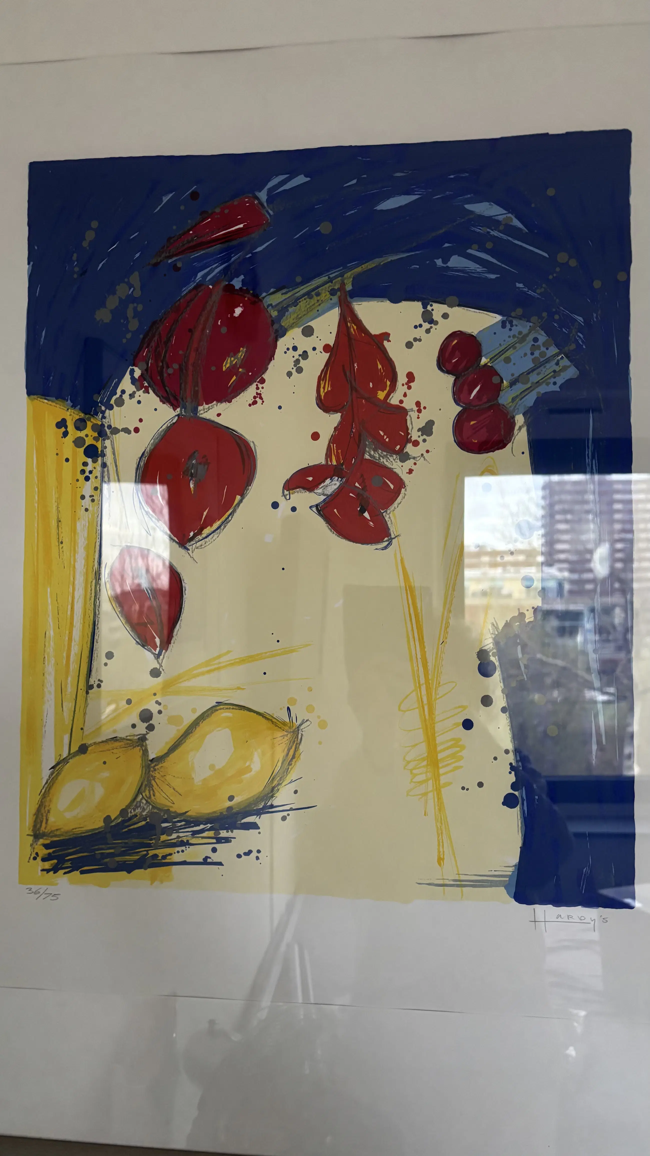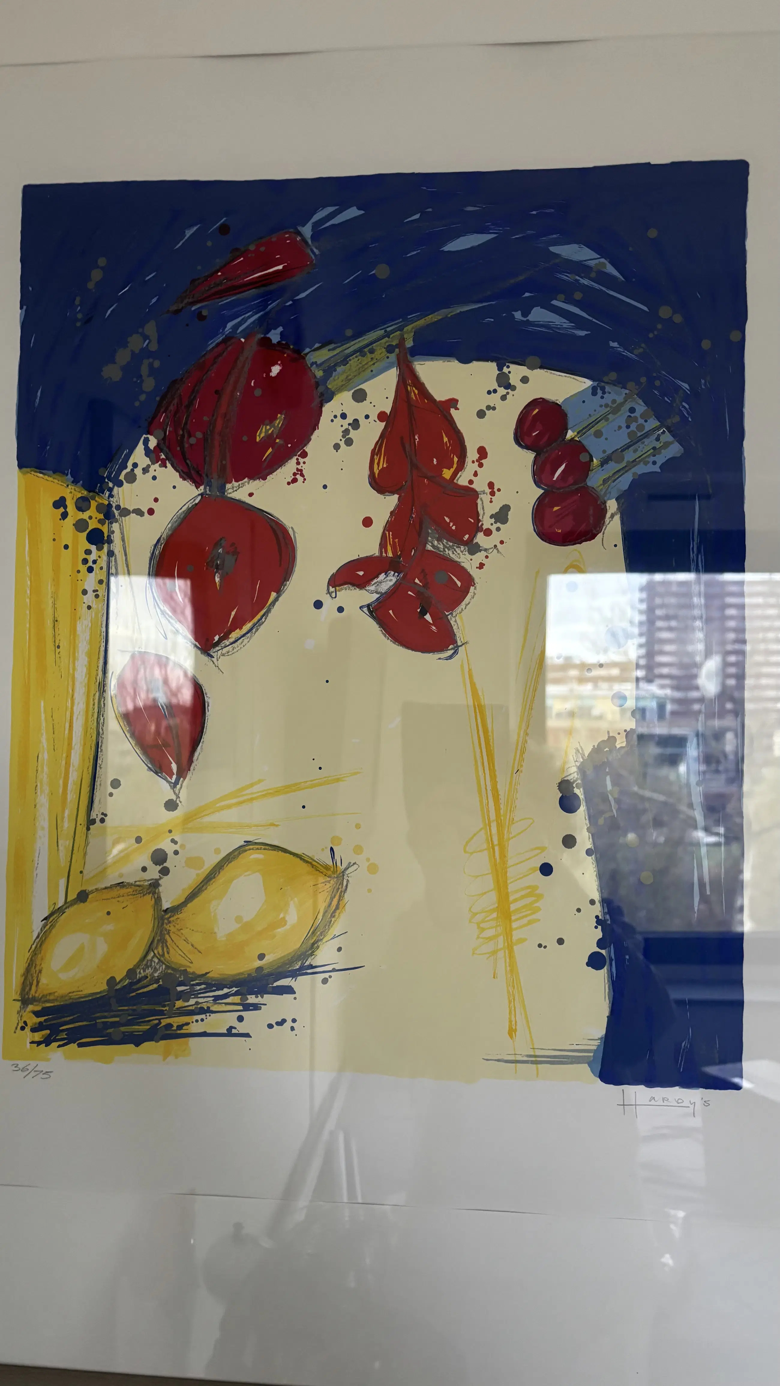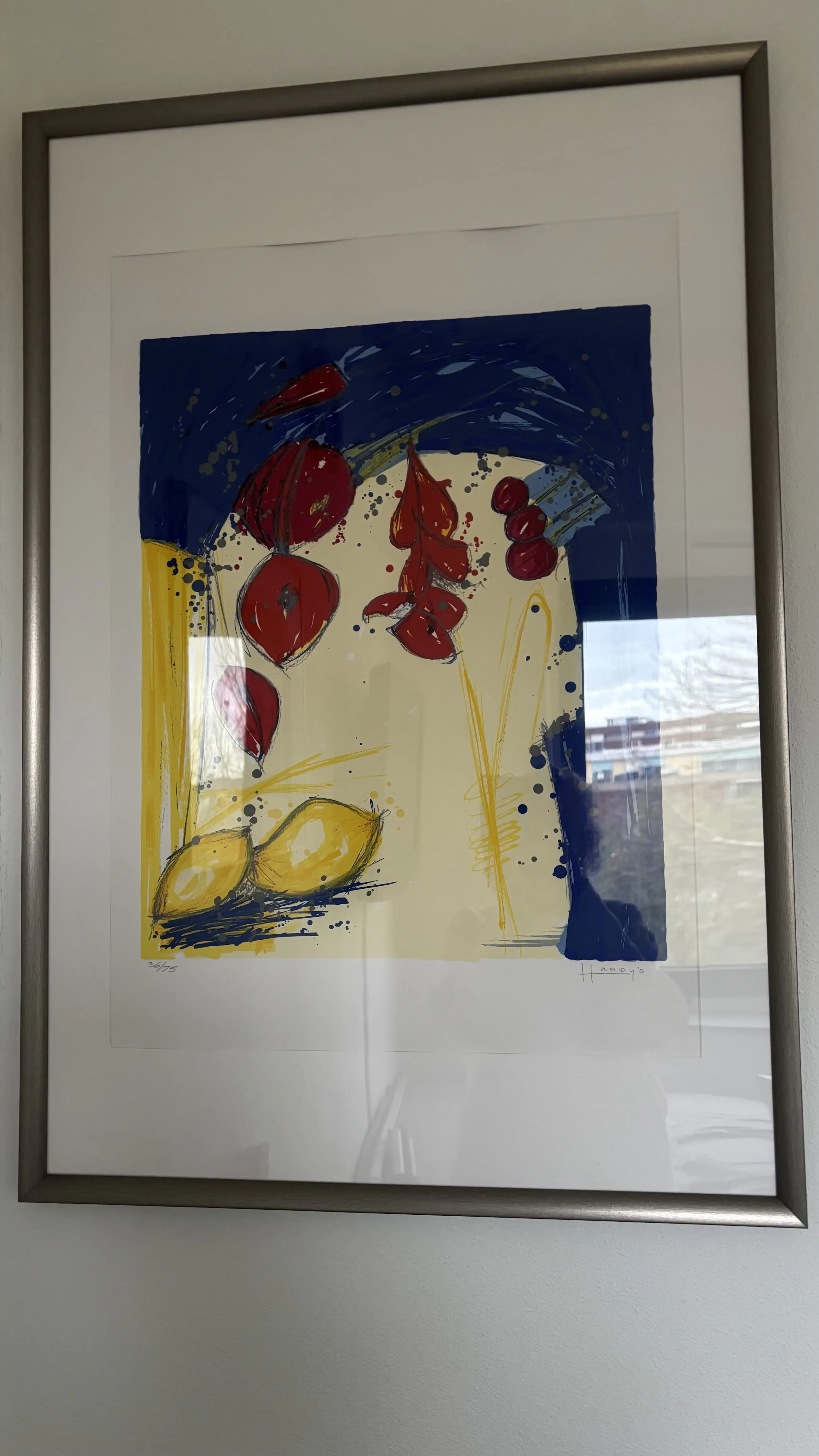 Kunstenaar: Ad van Hassel (alias Hardy's) Techniek: Zeefdruk op papier Oplage: Het werk is genummerd als 36/75 Onderwerp: Een abstracte voorstelling van fruit, waaronder citroenen en rode bessen/pepers Stijl: Kenmerkend voor Van Hassel's pop-art en street-art invloeden, met felle kleuren en gedurfde lijnen