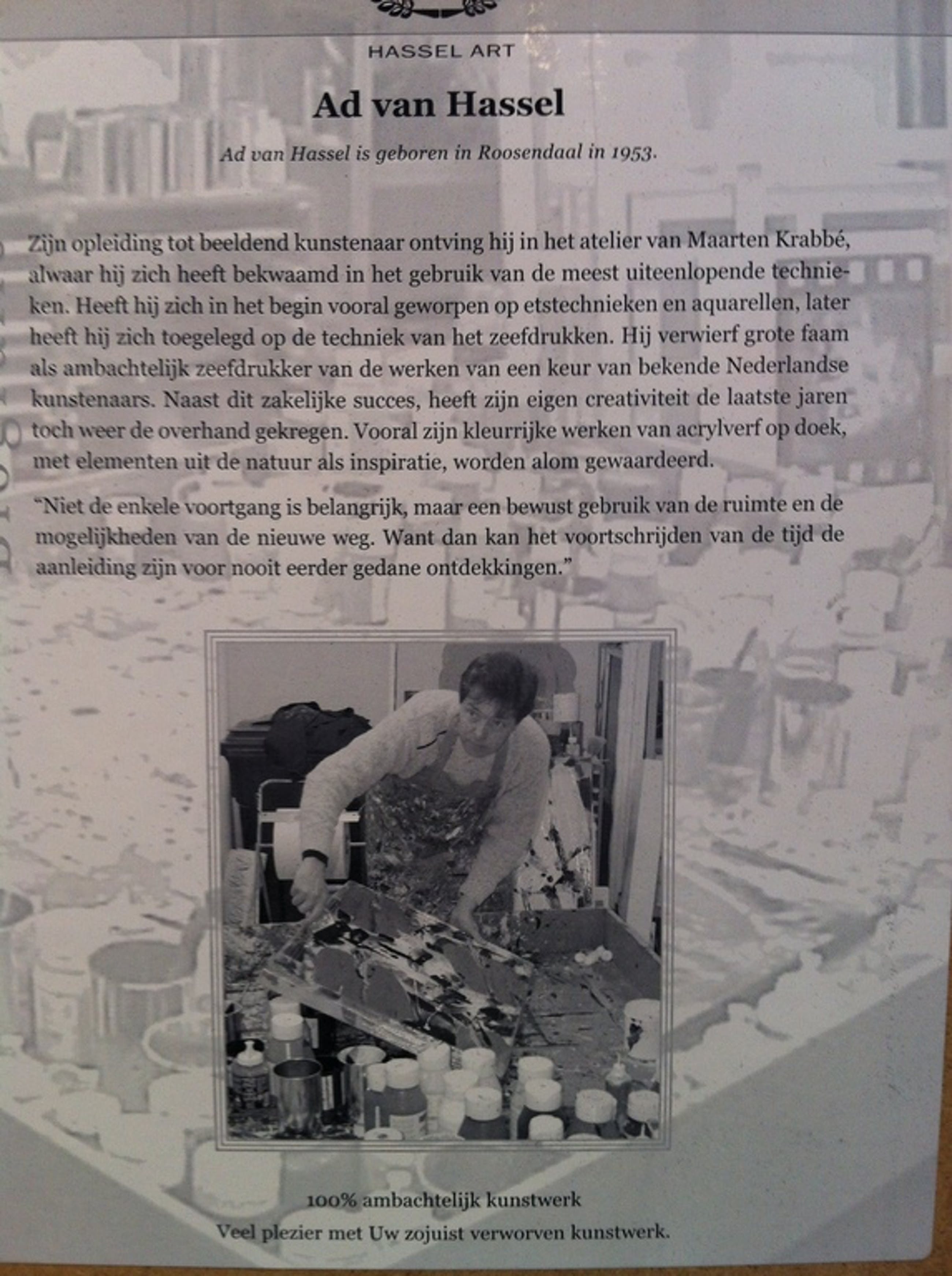 Van de bekende kunstenaar AD VAN HASSEL.
