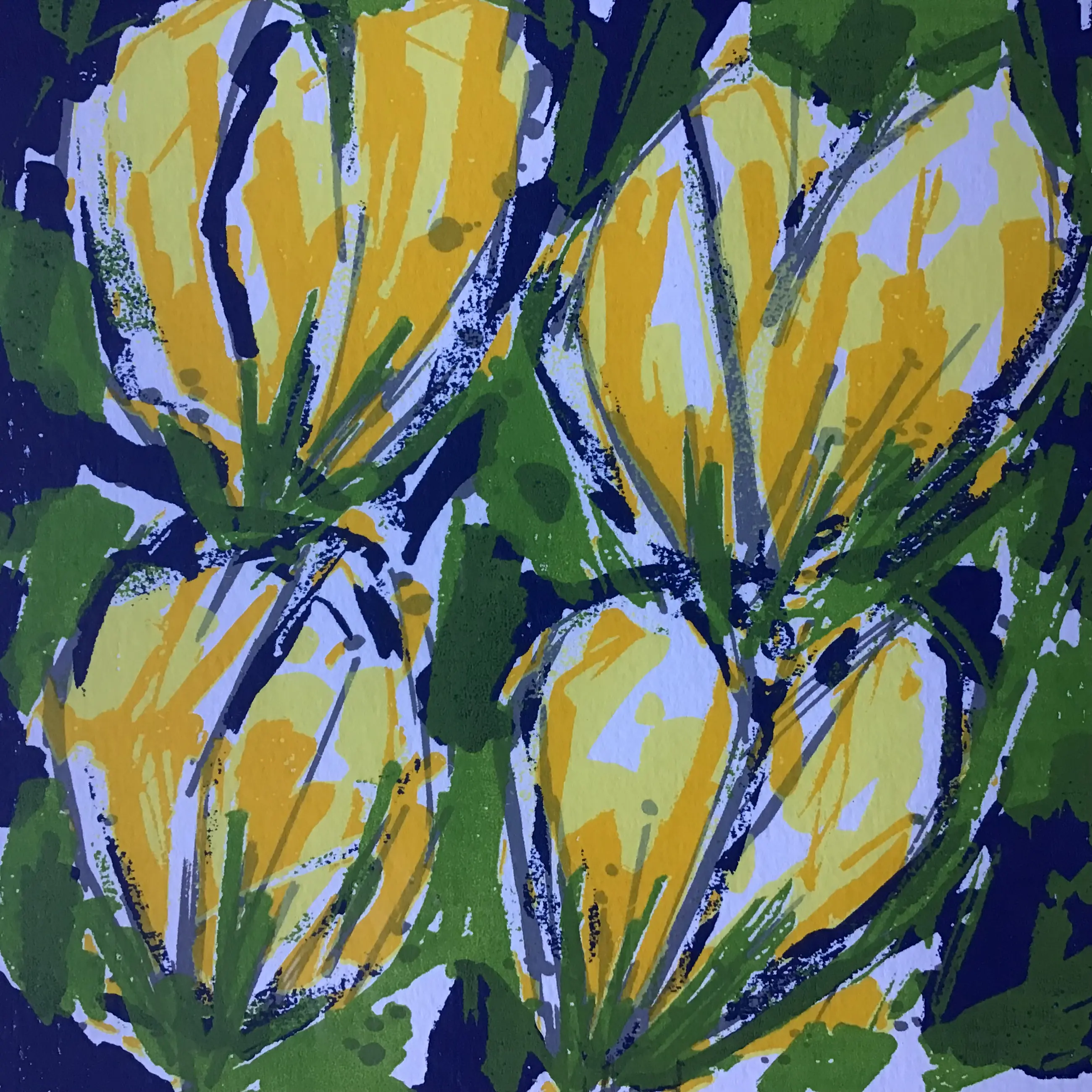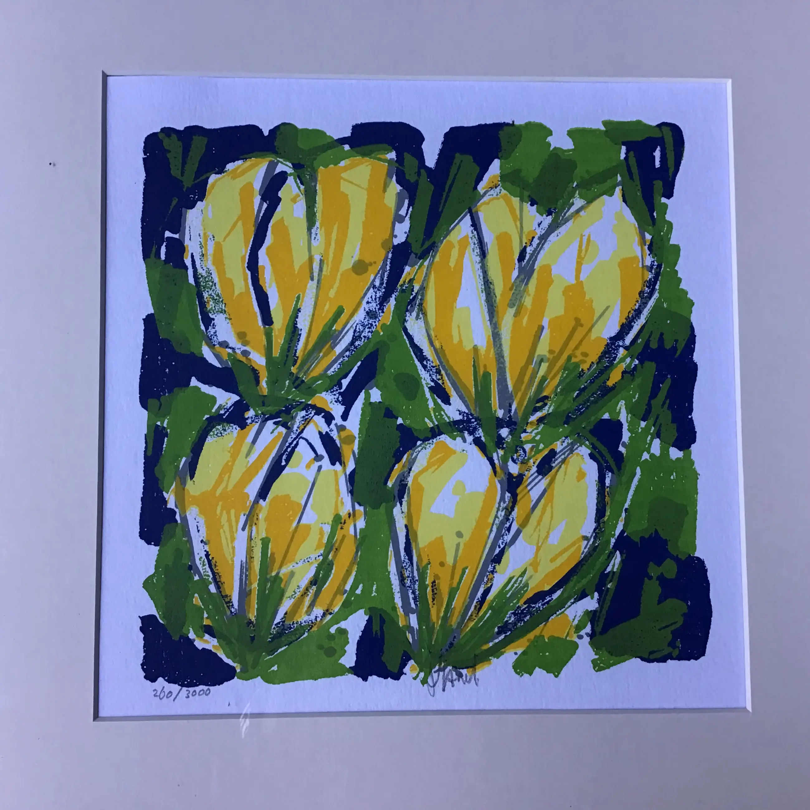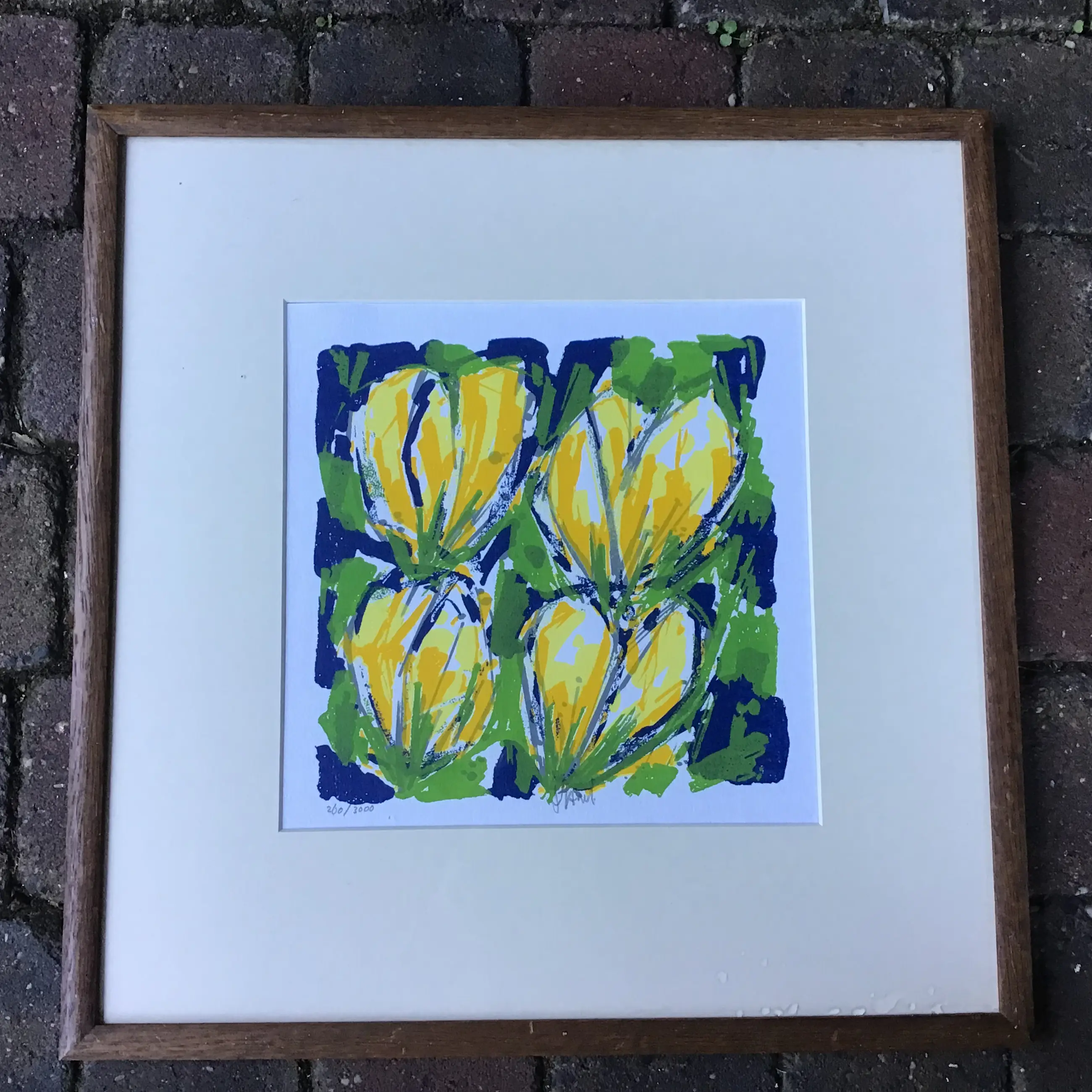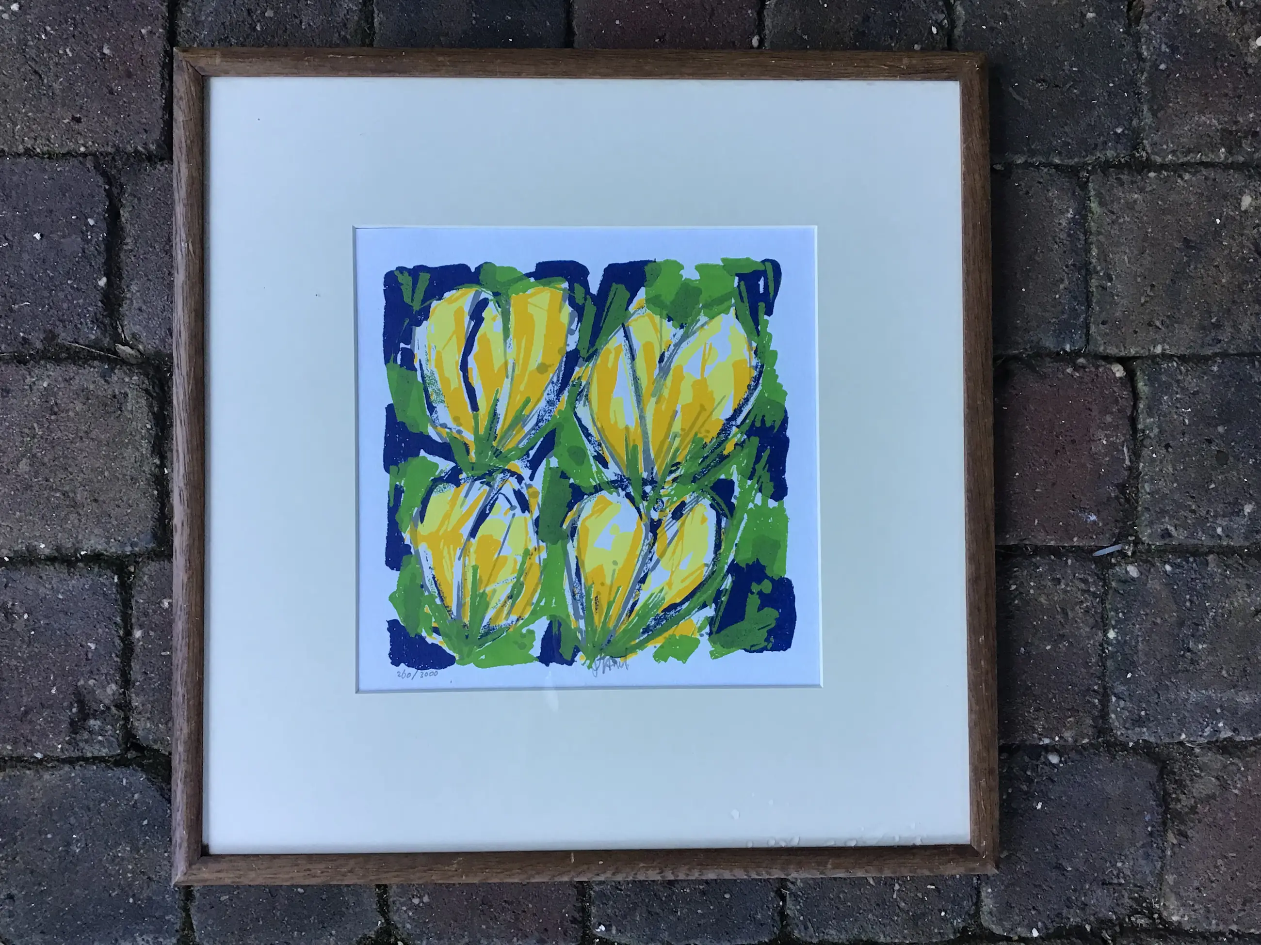 Keurig ingelijste gele versie van zijn ‘Tulpen’.