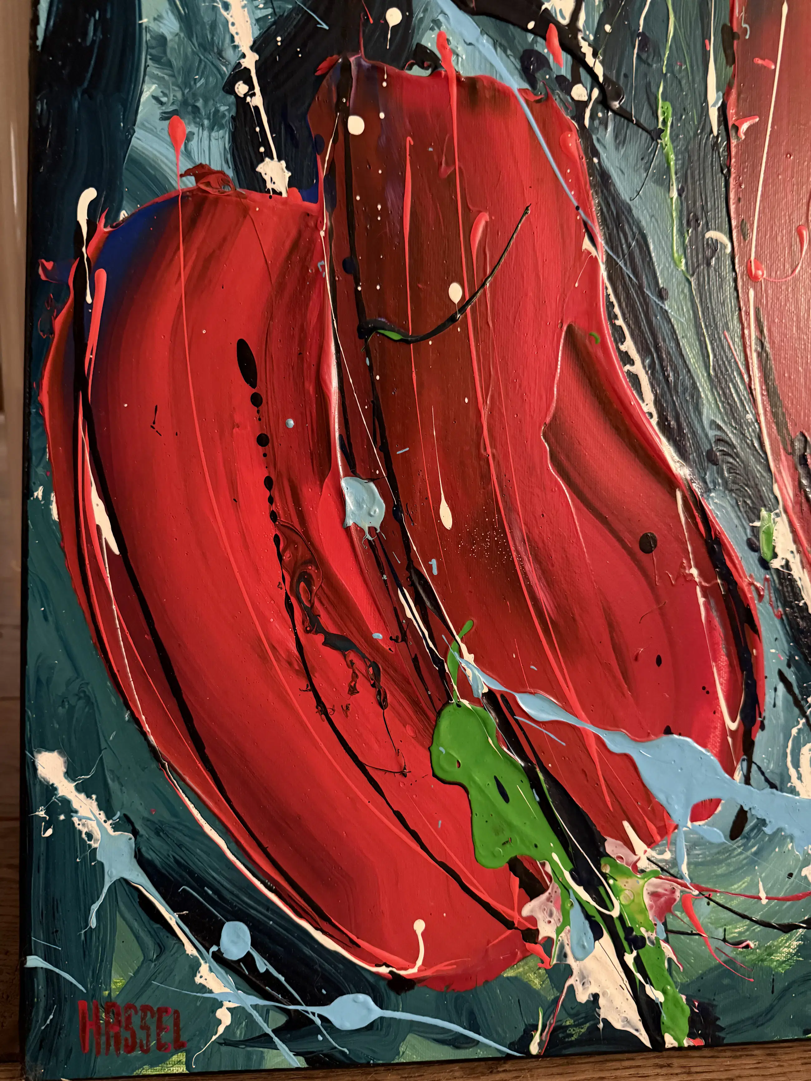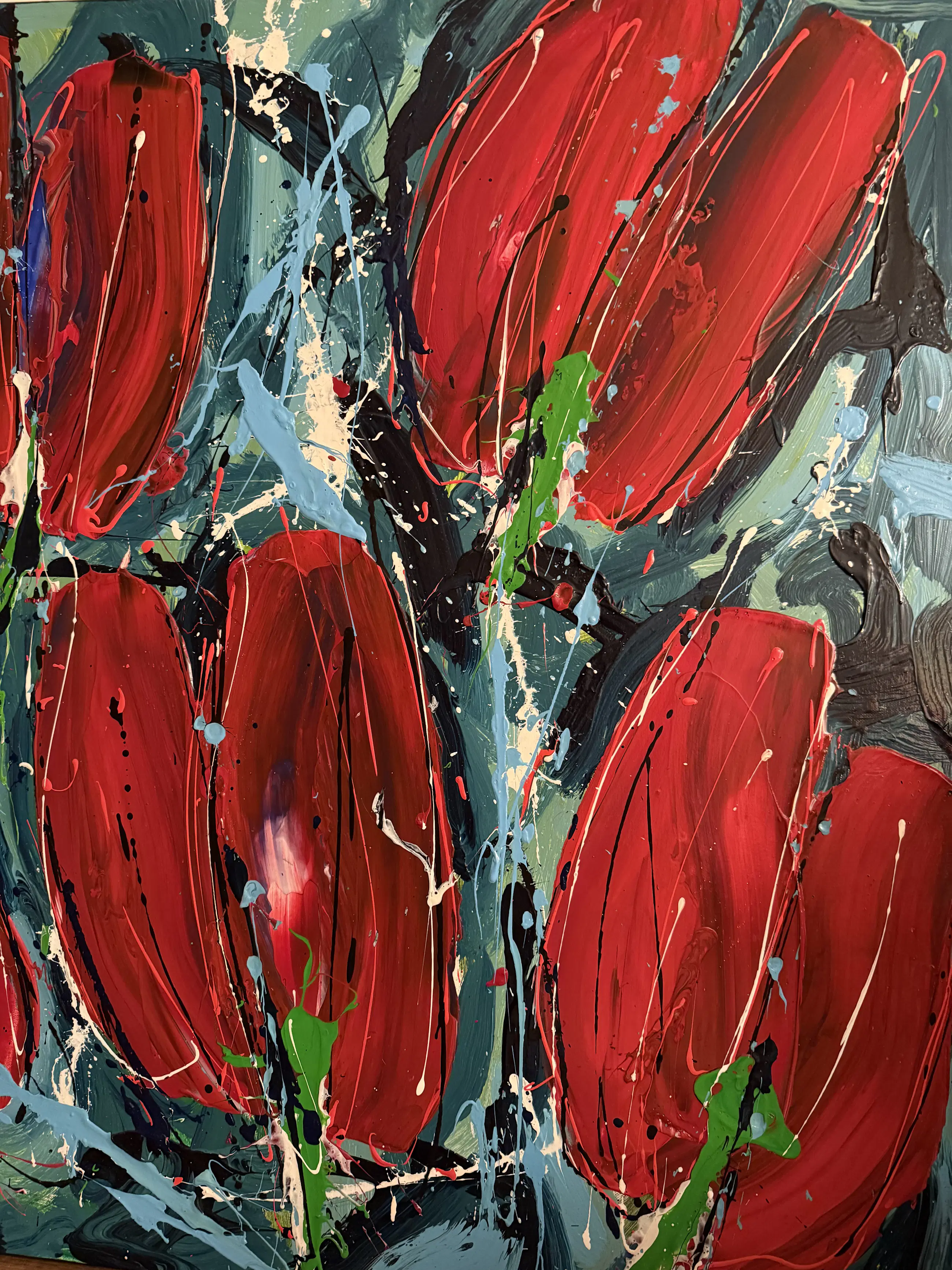 Dit originele werk van Ad van Hassel is een krachtig en tegelijkertijd verfijnd bloemenstuk, geschilderd in acrylverf op opgespannen canvas. Het toont een expressieve compositie van tulpen, met rijk geschakeerde kleuren en een levendige penseelvoering die het werk laat sprankelen.
