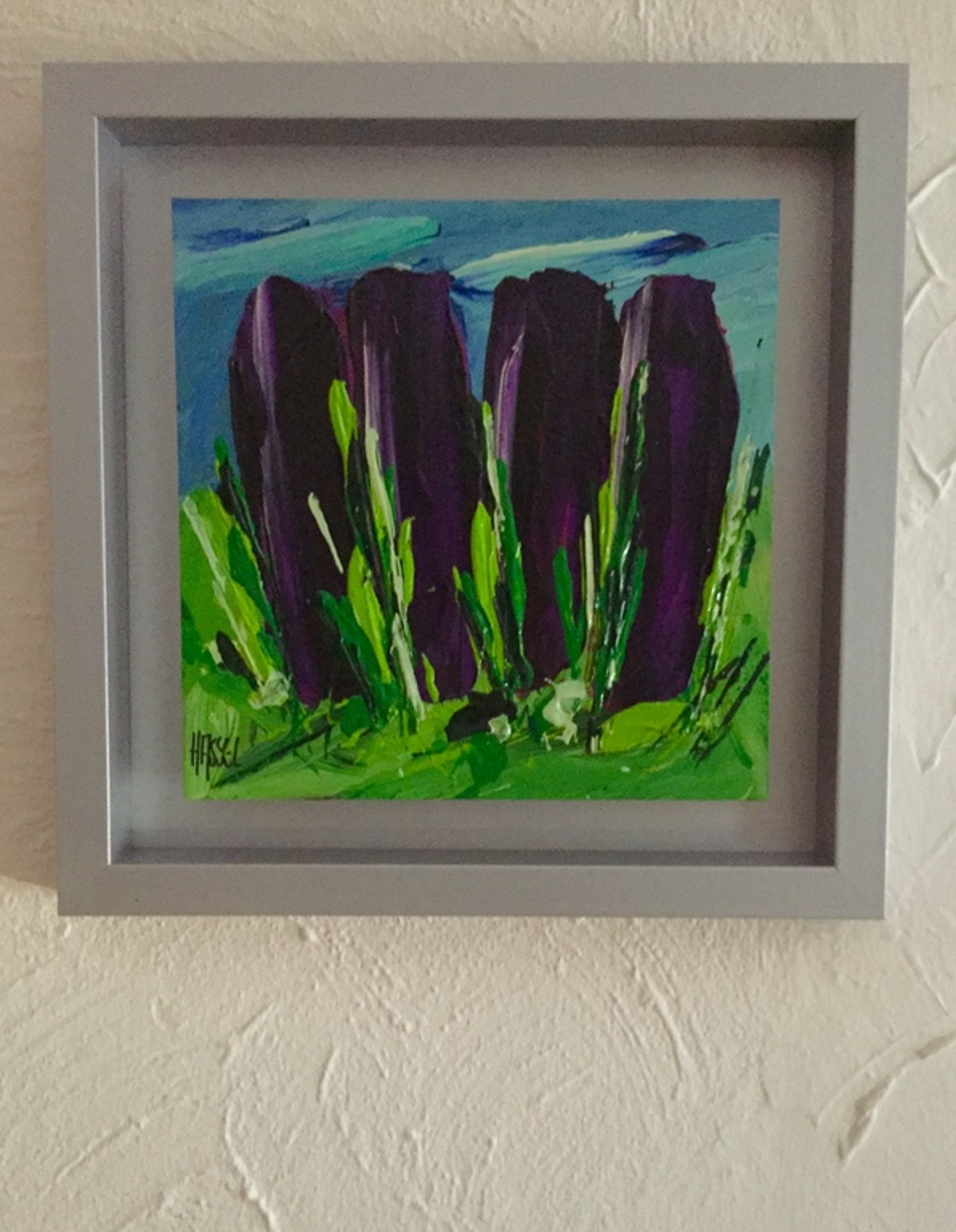 Het is zeer dik geschilderd met acrylverf op MDF en 'zwevend' ingelijst in een baklijst.