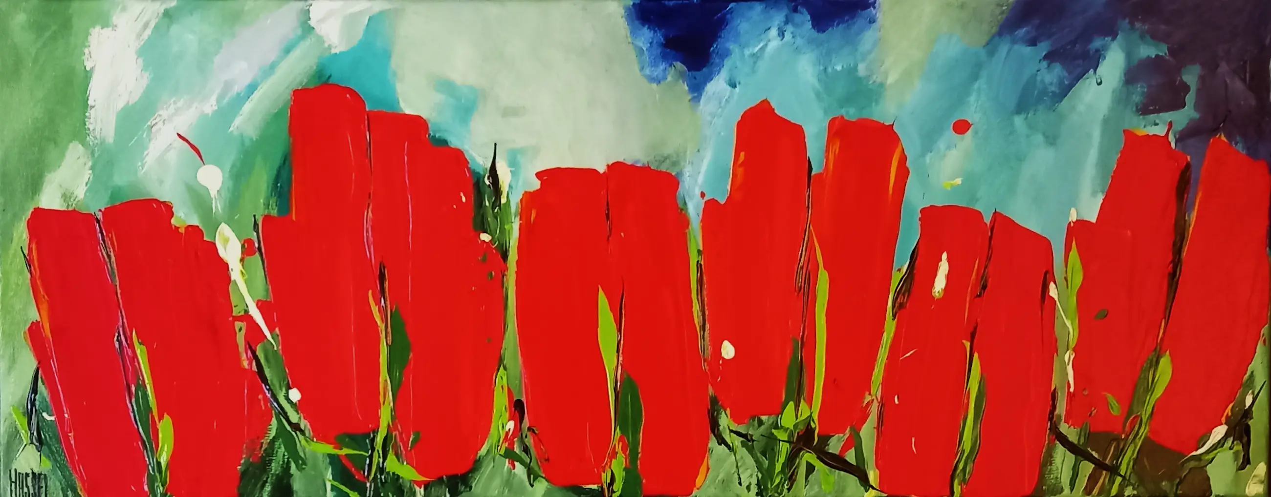 Schitterend, kleurrijk werk 'Tulpen' op 3D-schildersdoek
