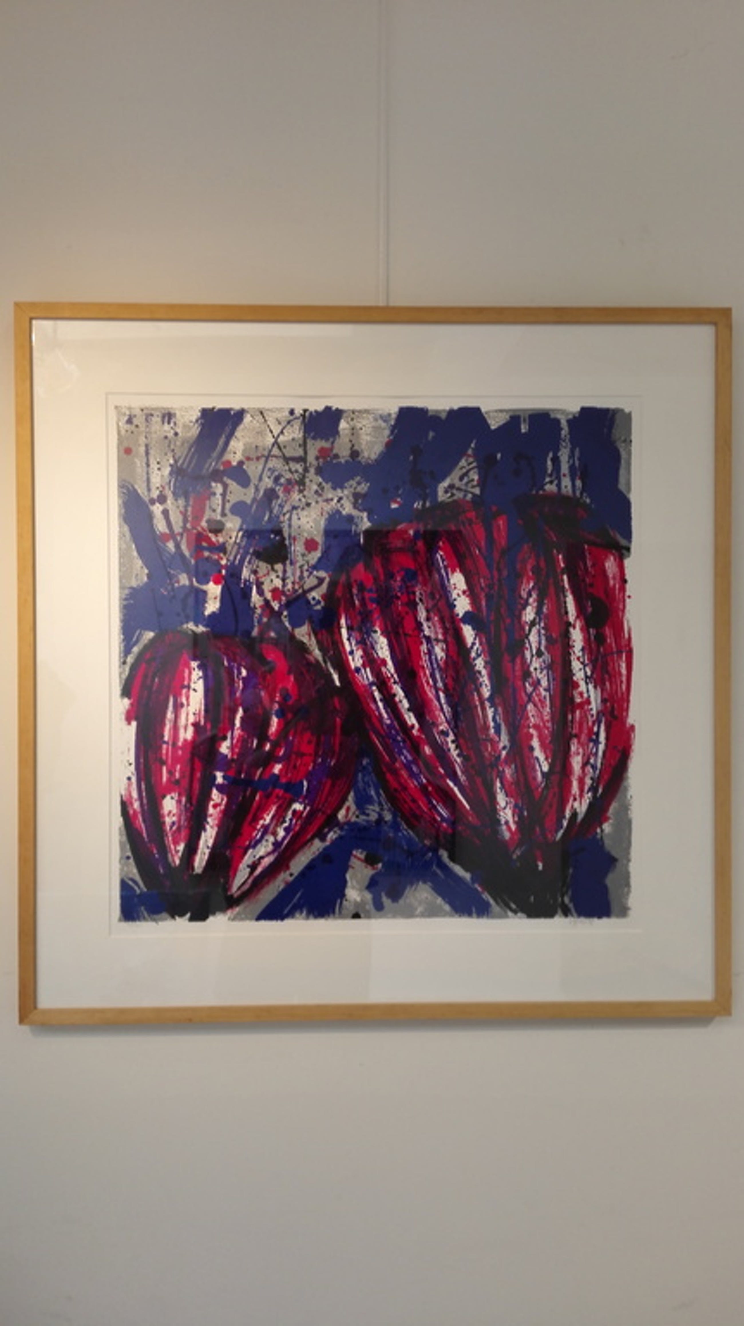 Materiaal: zeefdruk op papier in houten lijst.