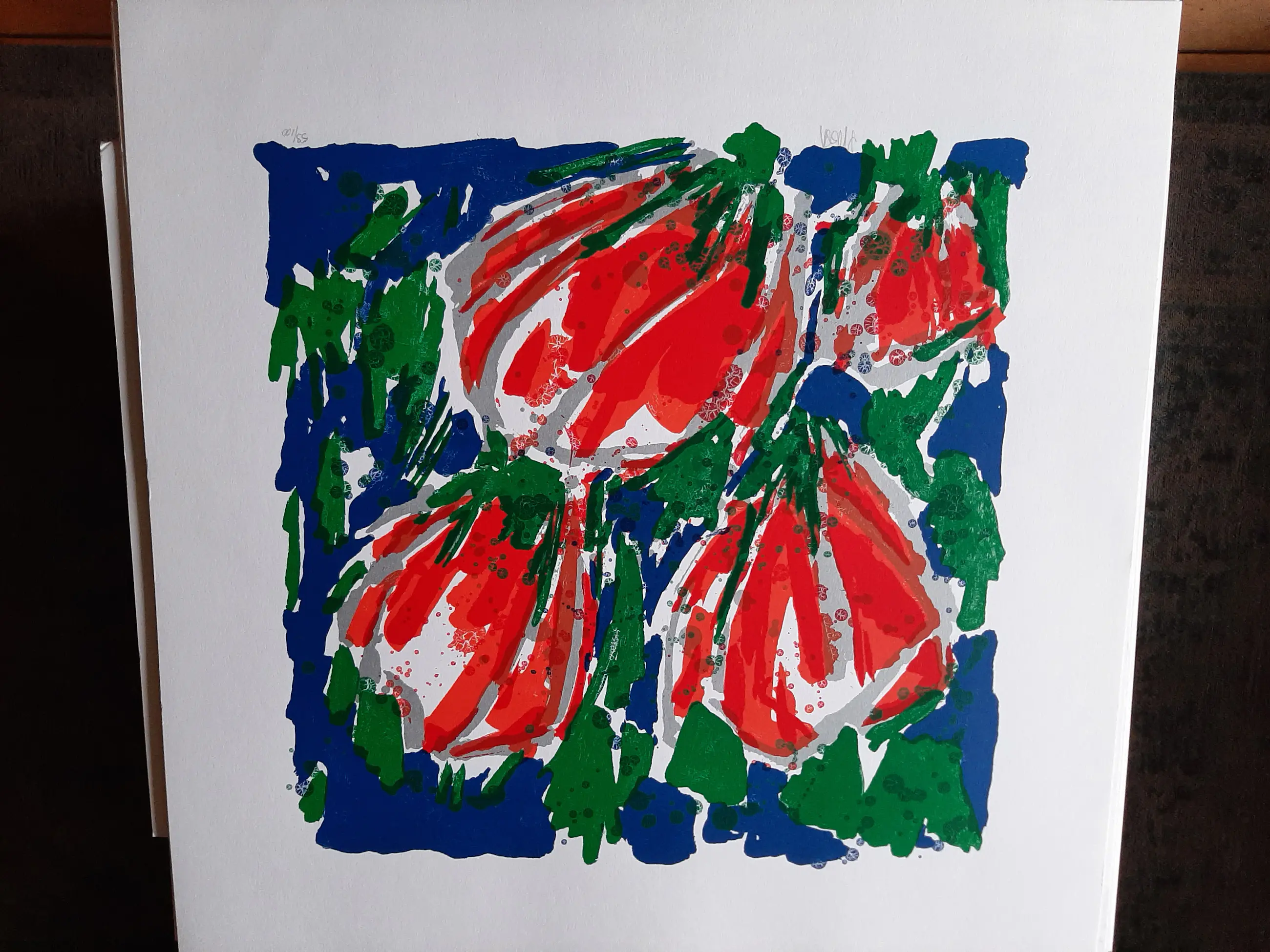 Herkenbare expressieve kleuren zeefdruk van Ad van Hassel (1953).
