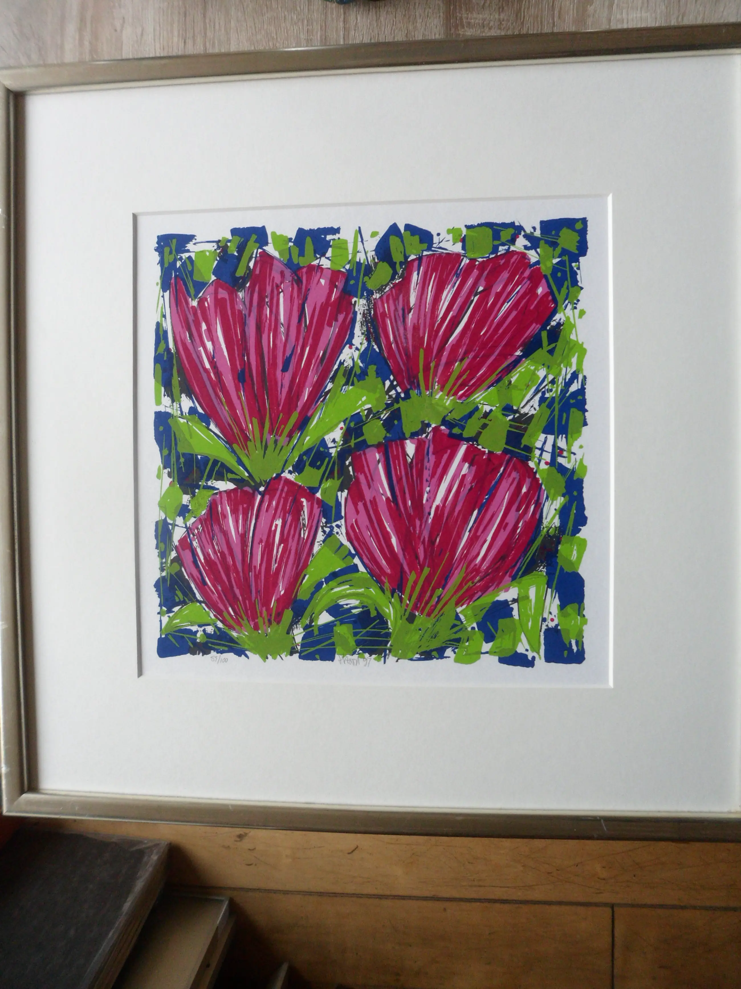 Herkenbare expressieve kleuren zeefdruk van Ad van Hassel (1953).
