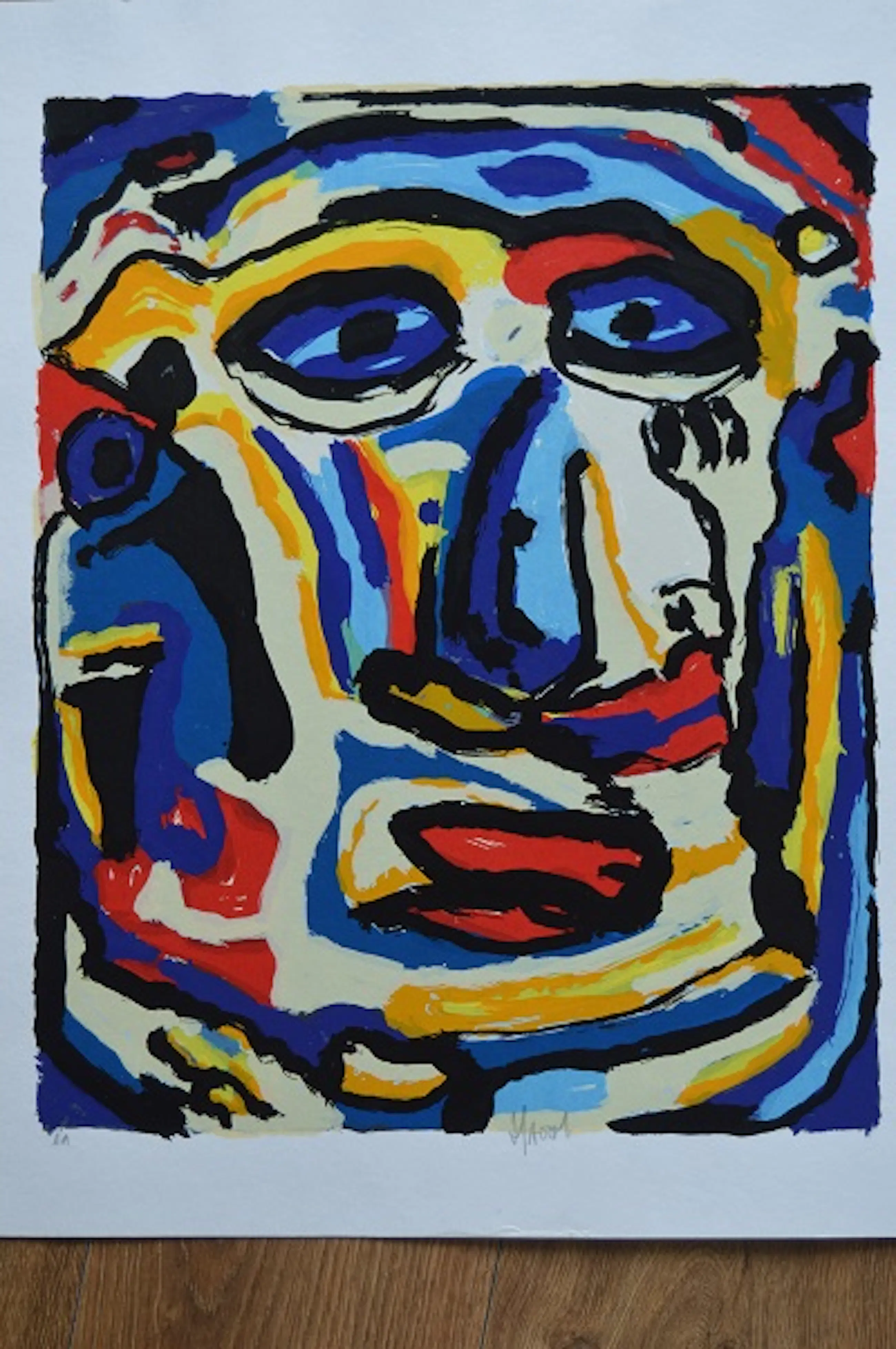 Abstract. Zeefdruk in oplage E.A. Gesigeneerd midden onder.