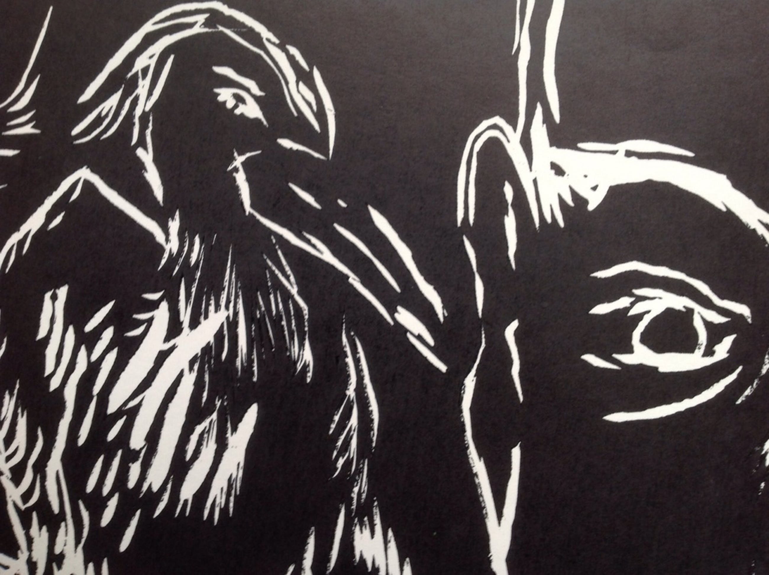 Krachtige houtsnede van Ad van Riel.