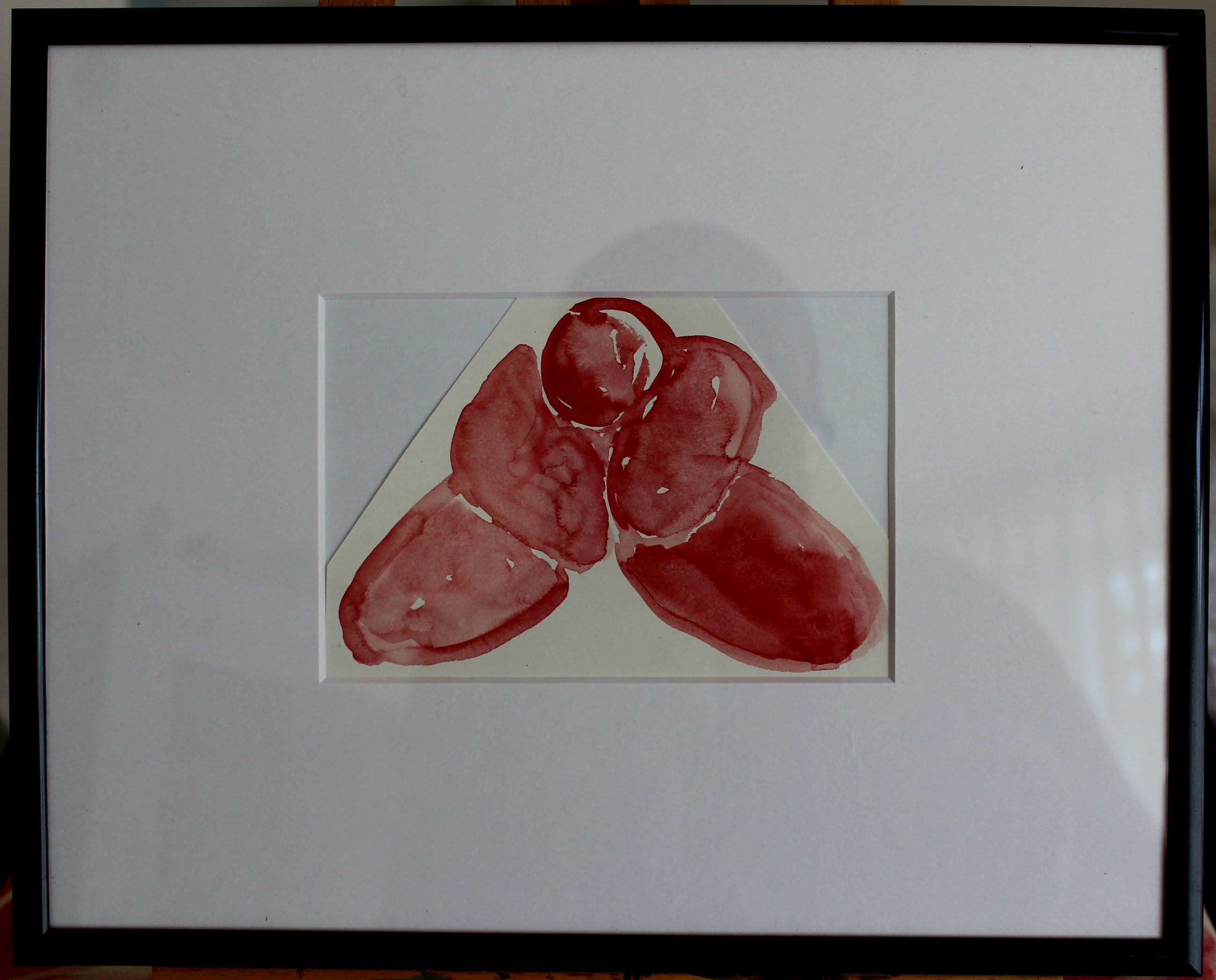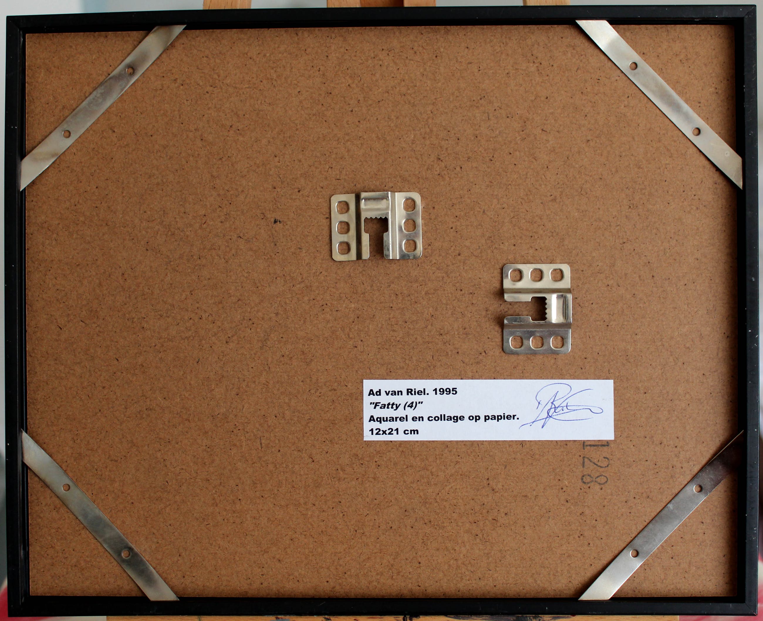 Aquarel/collage op papier. In zwarte lijst met wit passepartout. Met aankoopgarantie.