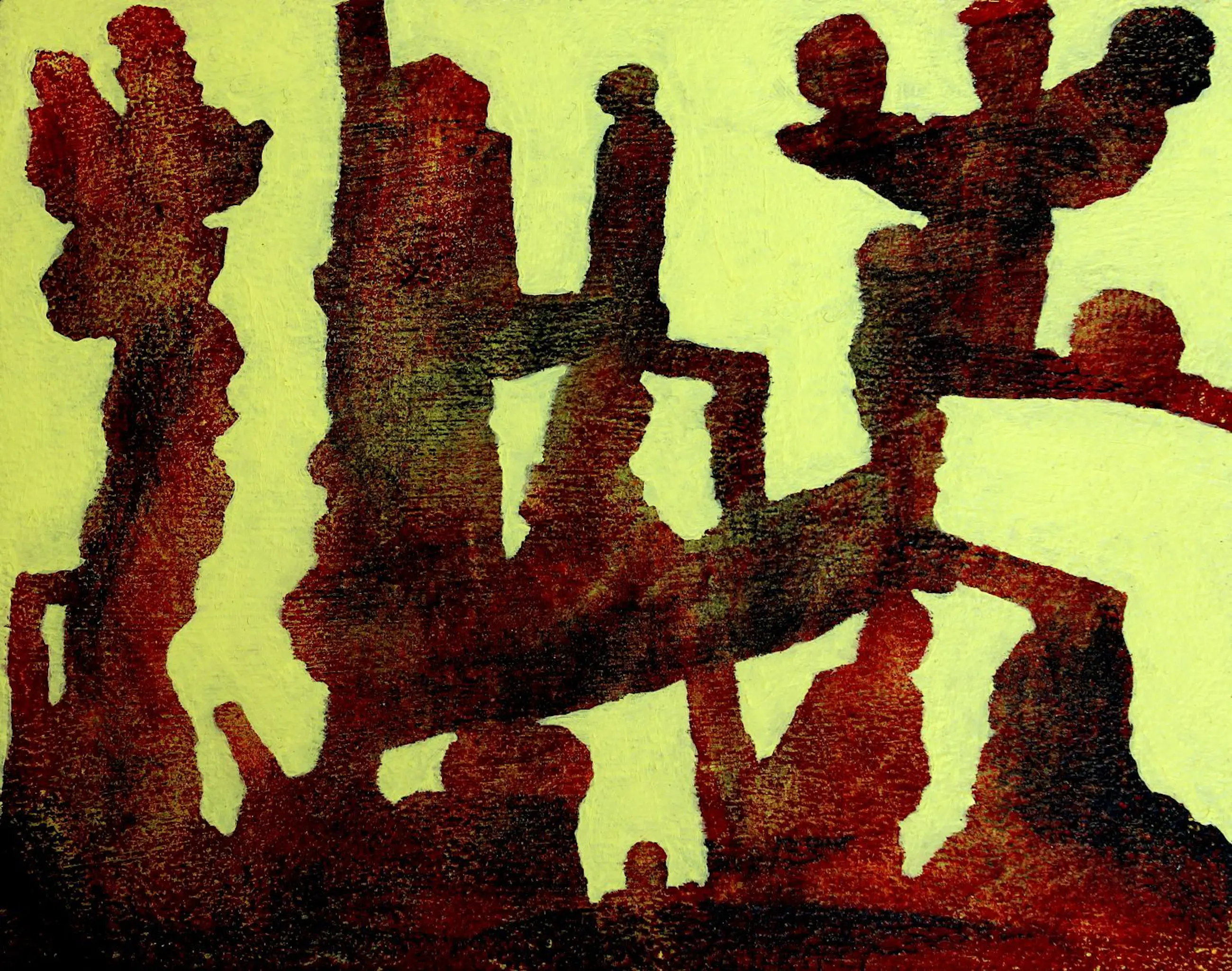 Schilderij uit 2018. Acryl- en olieverf op paneel (multiplex).